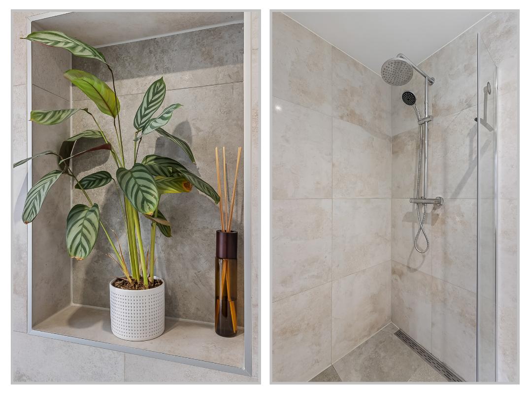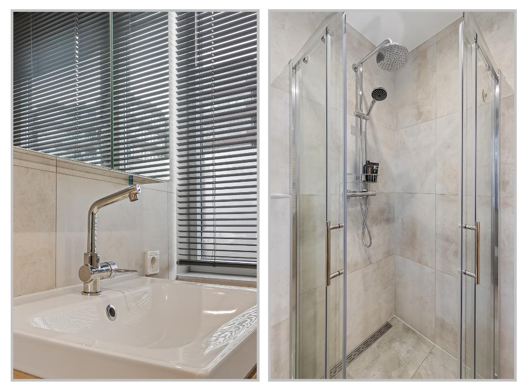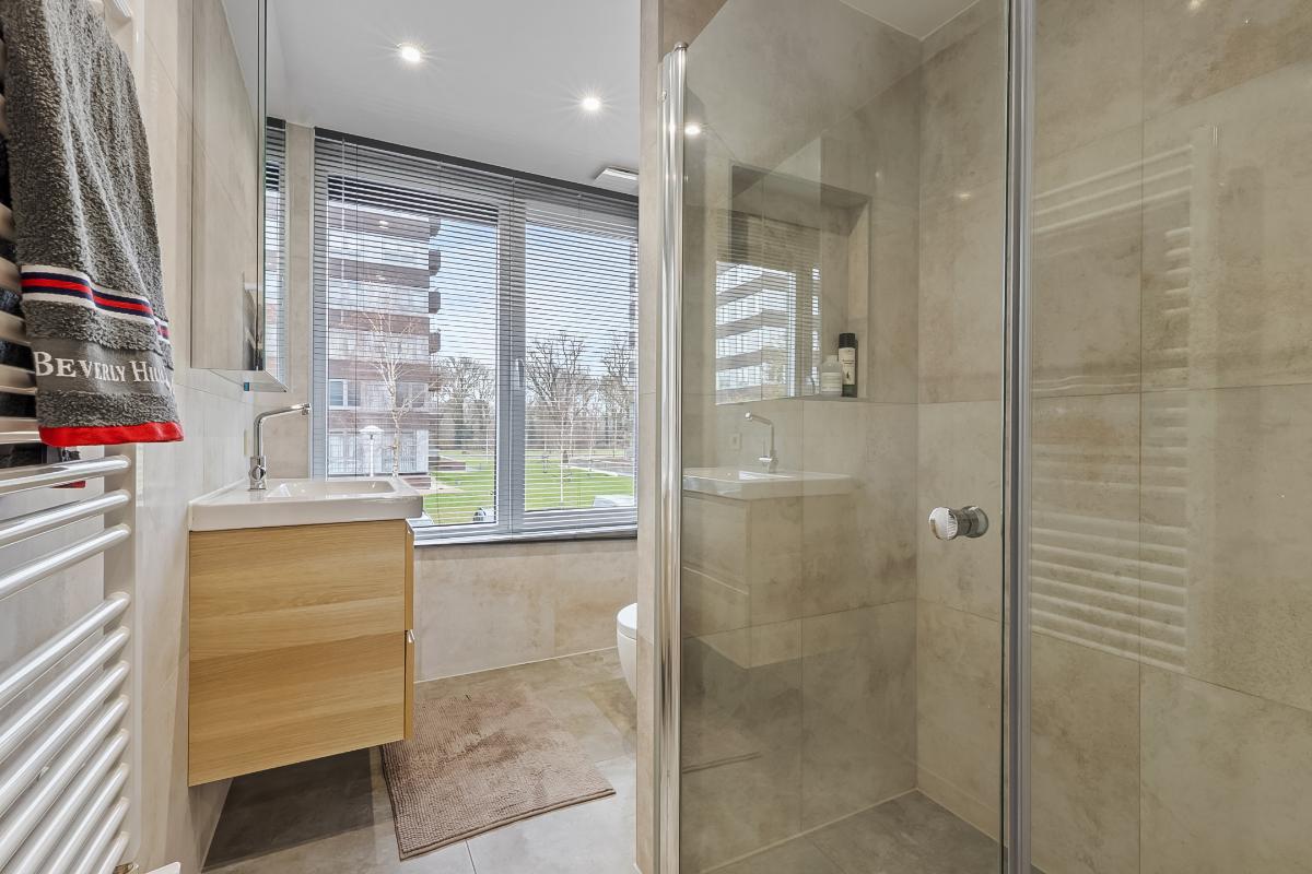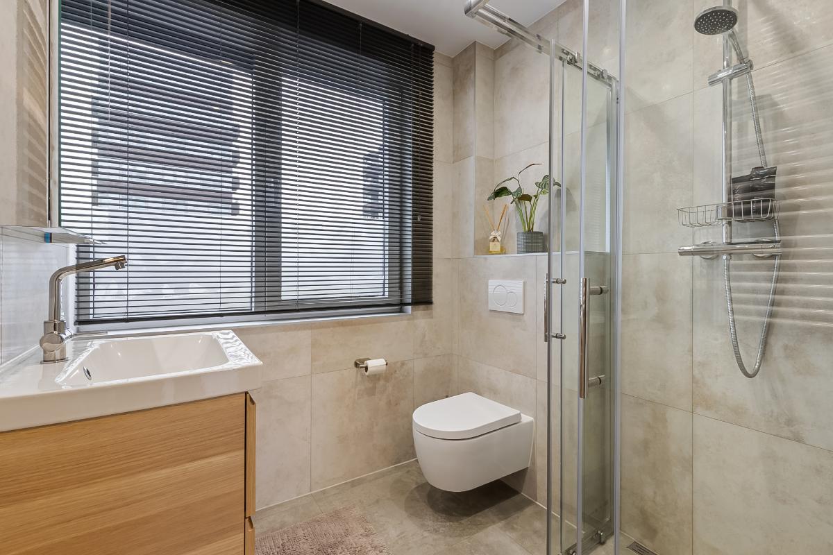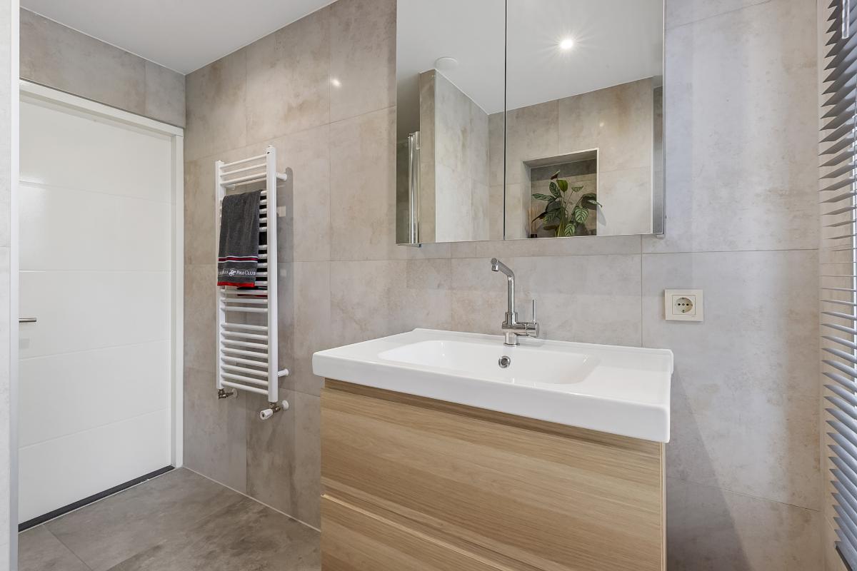 1e verdieping: ruime hal, 3 volwaardige slaapkamers die allemaal zijn voorzien van aluminium ramen met dubbel glas. De moderne badkamer is vernieuwd in 2023 en is voorzien van een inloopdouche met regendouche, wastafelmeubel, spiegelkast, handdoekradiator en toilet. Op de hal hangt een airco installatie die alle slaapkamers kan koelen. Op deze verdieping is een wasruimte met aansluiting voor wasmachine en droger.