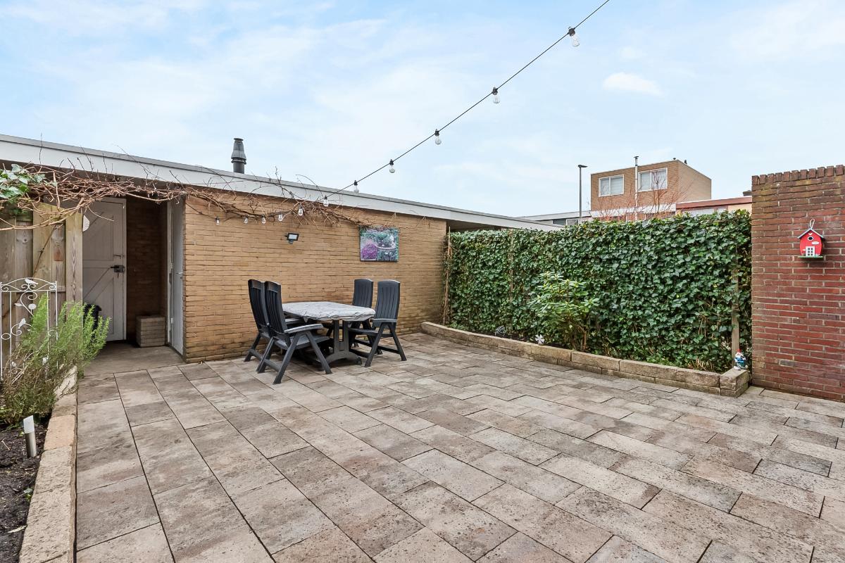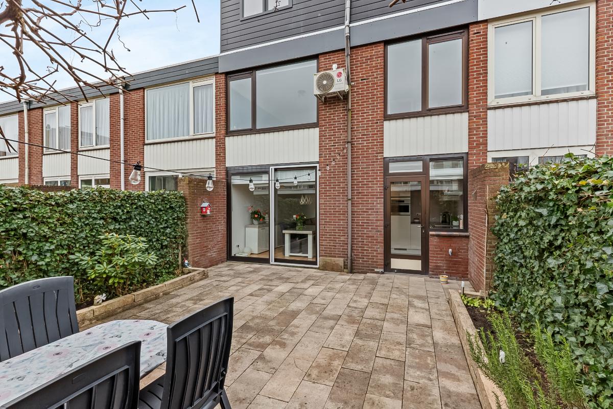 Tuin en schuur: Er is een goede en goed aangelegde voortuin en een ruime zonnige achtertuin met veel privacy en groen. Er is een grote berging en een overkapping aanwezig. Via de overkapping is een achterom.