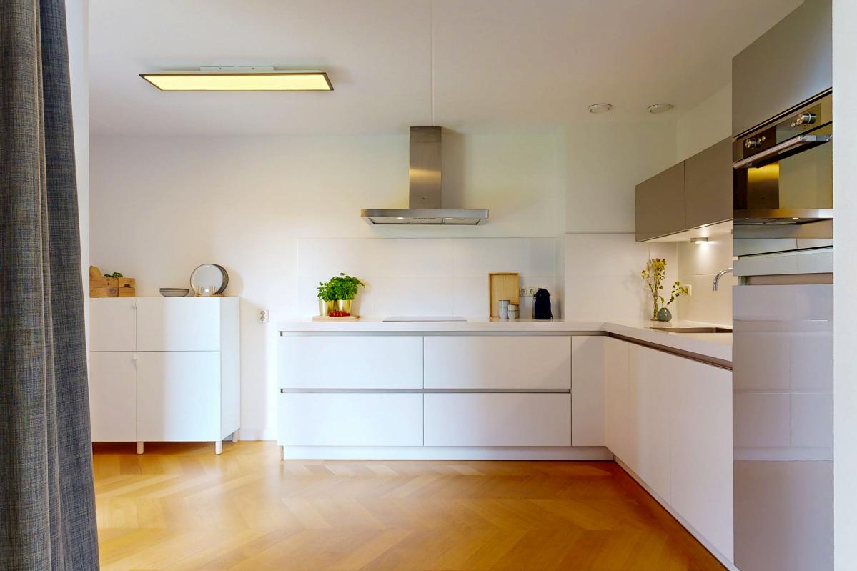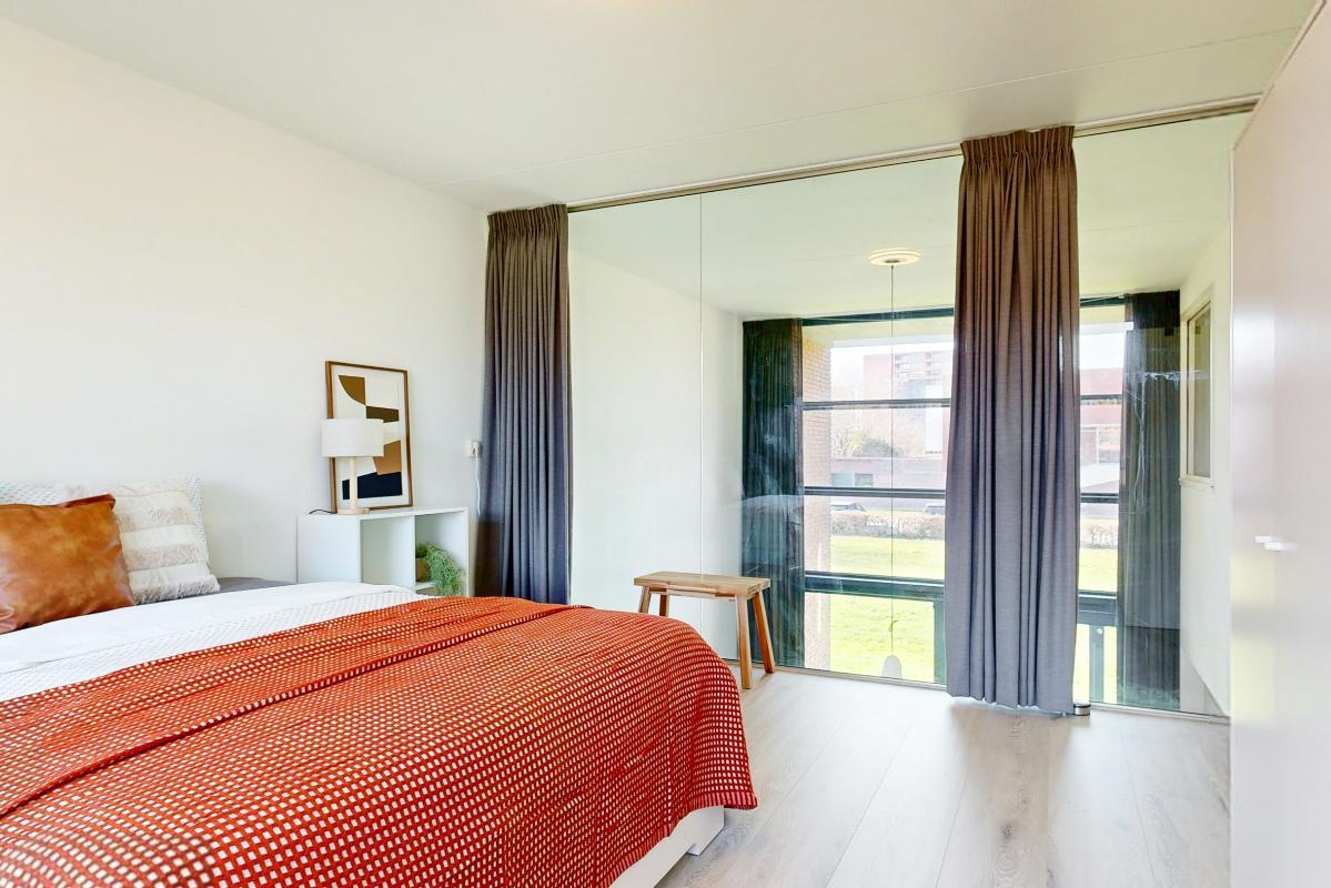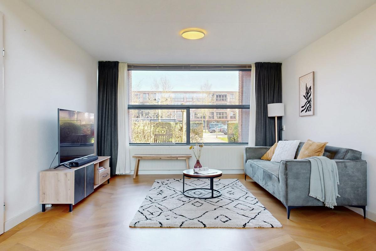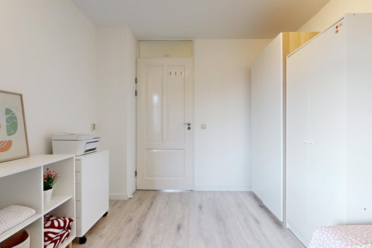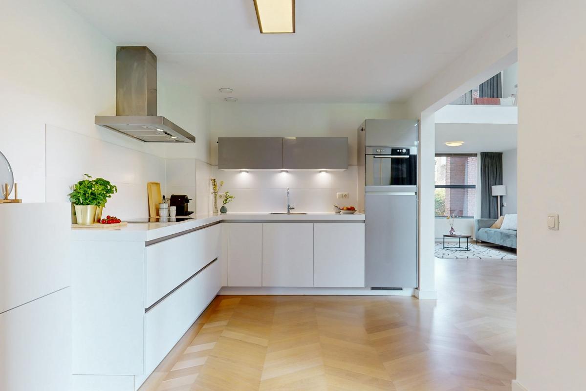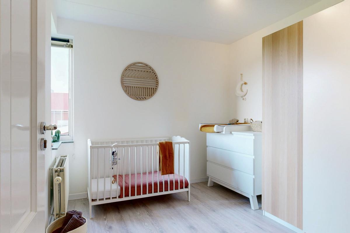 Deze lichte en royale woning biedt veel woonplezier en is ideaal voor gezinnen. De hal geeft toegang tot een trapkast, een zwevend toilet met fontein en een praktische inpandige berging. De keuken is uitgevoerd in hoekopstelling en voorzien van inductiekookplaat, afzuigkap, vaatwasser en een losse koel-/vriescombinatie. Vanuit de keuken leiden openslaande deuren direct naar de zonnige achtertuin. De woonkamer is bijzonder ruim door het hoge plafond, de grote schuifpui en de elegante parketvloer. Op de bovenverdieping bevinden zich drie slaapkamers, waaronder één met een glazen wand bij de vide, wat extra licht en karakter toevoegt. De tweede slaapkamer ligt aan de voorzijde en de derde aan de achterzijde van de woning. De moderne badkamer is uitgerust met een inloopdouche, wastafelmeubel en een zwevend toilet. Daarnaast beschikt de woning over een eigen parkeerplek op het parkeerterrein en de mogelijkheid gebruik te maken van de gemeenschappelijke fietsenstalling.