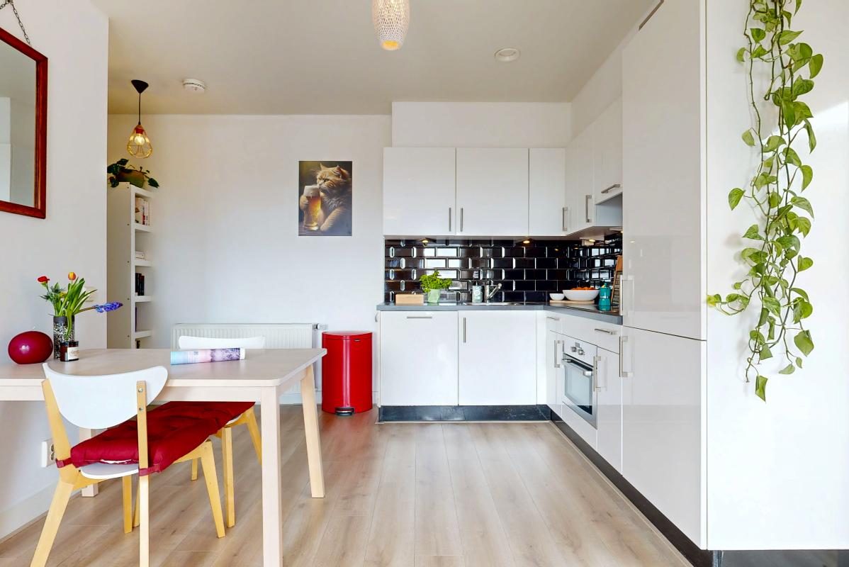 Omdat dit appartement is gelegen op een hoek, is de woonkamer heerlijk licht dankzij de vele grote raampartijen, wat zorgt voor een ruimtelijk en open gevoel. Er is voldoende plek voor een gezellige zithoek én een eethoek, ideaal om te ontspannen of vrienden uit te nodigen. De open keuken sluit naadloos aan op de woonkamer en is modern uitgevoerd met diverse inbouwapparatuur. Door de open opstelling blijf je altijd in contact met je gasten tijdens het koken, wat het appartement extra gezellig maakt. Wat dit appartement nog aantrekkelijker maakt zijn de Franse balkonnetjes, die karakter geven aan het geheel. Vanuit de woonkamer bereik je de slaapkamer, deze is ruim, licht en biedt voldoende plek voor een tweepersoonsbed en kledingkasten. De badkamer is eenvoudig maar compleet ingericht en beschikt over een douche, toilet, wastafel met meubel en een aansluiting voor de wasmachine. Alles wat je nodig hebt, binnen handbereik.