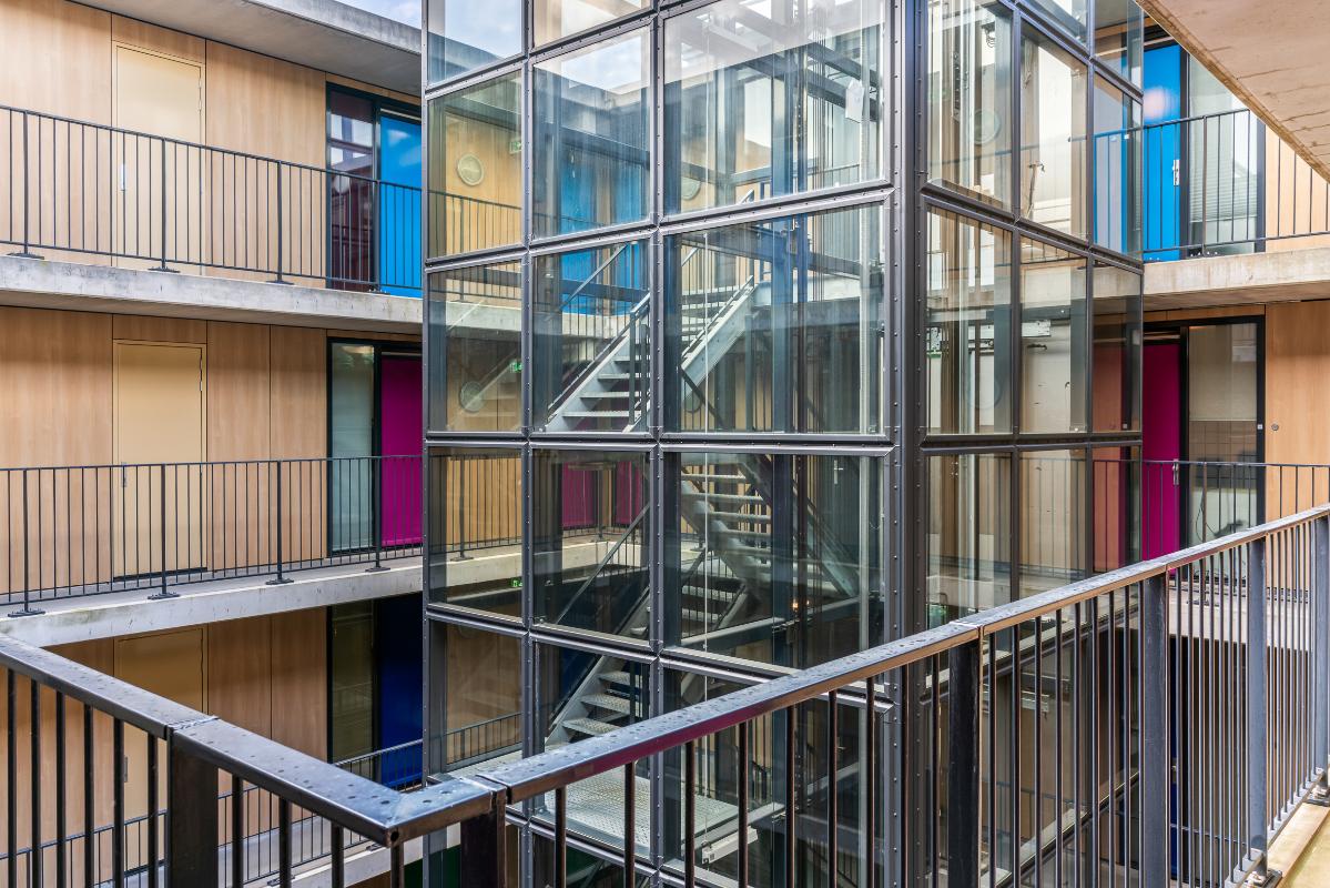 Via de afgesloten centrale entree met intercominstallatie bereik je het nette trappenhuis en de lift. Hiermee ga je eenvoudig naar de 6e woonlaag, waar het appartement zich bevindt. Bij binnenkomst tref je direct de inpandige meterkast en stap je binnen in een uitnodigende woonruimte.