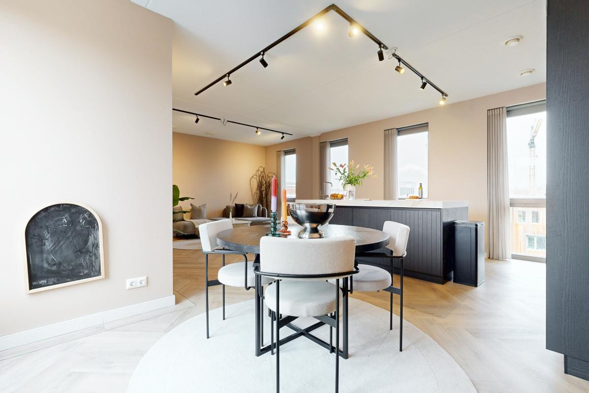 De vierde verdieping vormt het hart van de woning. Hier vind je de lichte en ruime woonkamer met voldoende plek voor een comfortabele zithoek. De open leefkeuken met strak kook-/spoeleiland en wandopstelling is modern uitgevoerd en voorzien van alle benodigde inbouwapparatuur. Aansluitend bevindt zich de eethoek met directe toegang tot het royale balkon op het zuiden – een heerlijke plek om van de zon te genieten. Vanaf het balkon is tevens extra bergruimte bereikbaar. Via de fraai aangelegde, gemeenschappelijke binnentuin bereik je de privéparkeerplaats en berging in de ondergelegen garage. De omgeving is groen, rustig en onderhoudsvriendelijk, met volop privacy.