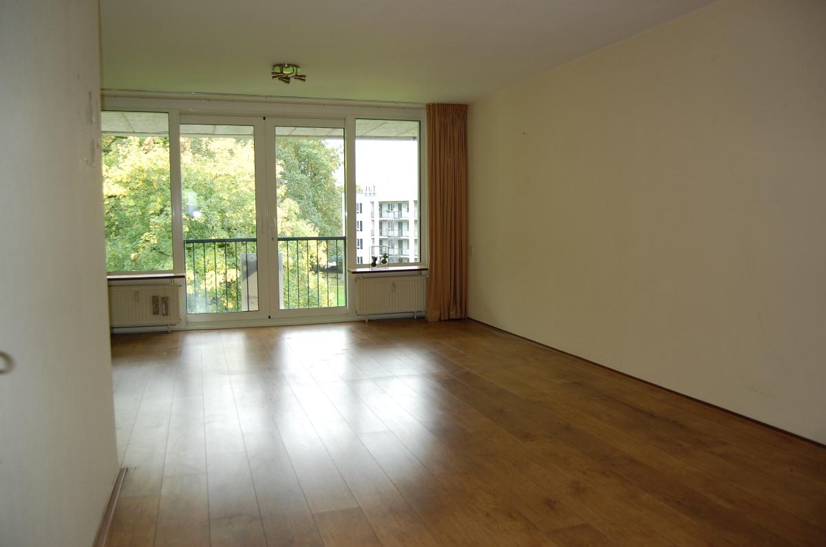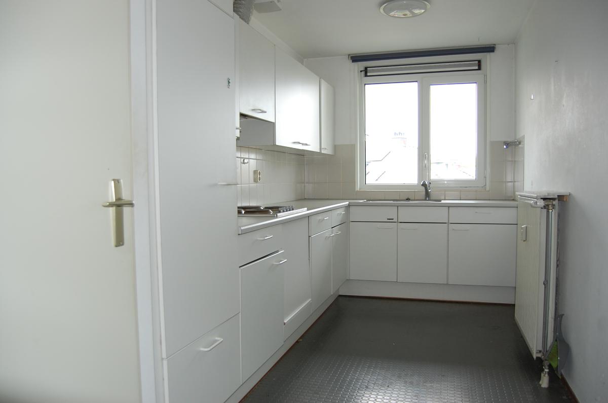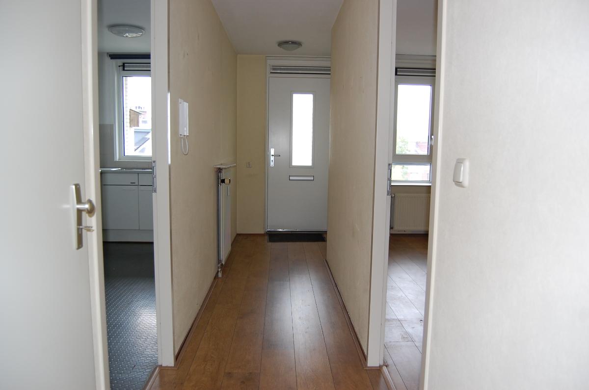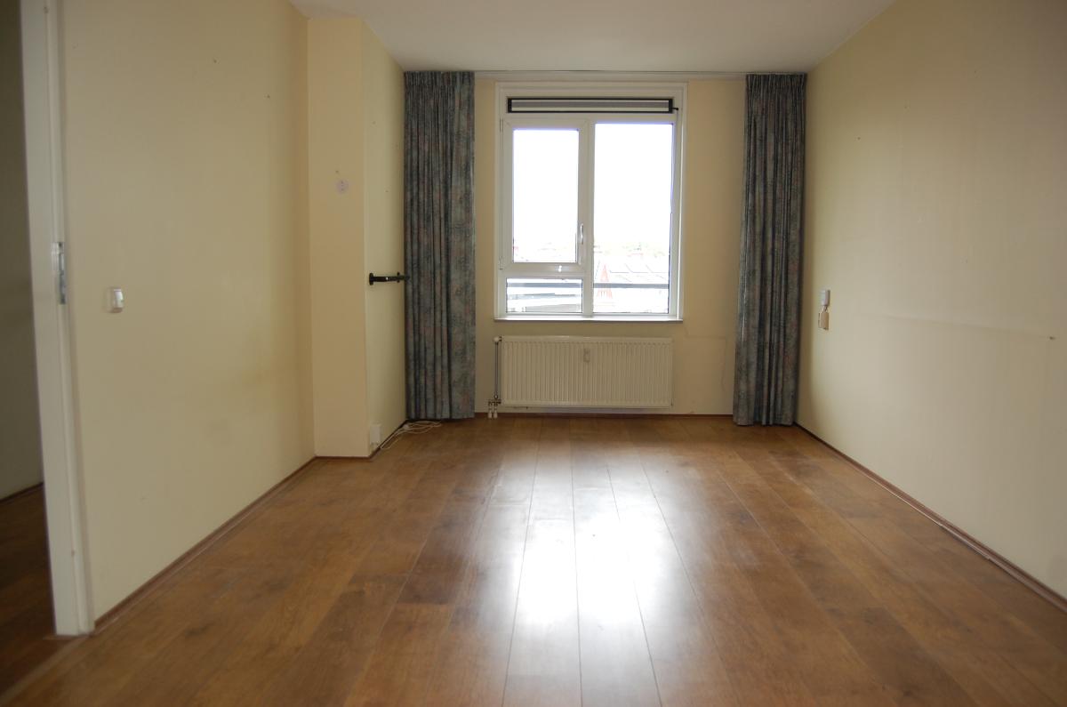 3e verdieping: Entree, hal, meterkast. De grote slaapkamer is gelegen aan de voorzijde van de woning. Aan achtertuinzijde de lichte L-vormige woonkamer met laminaatvloer, deze heeft een schuifpui met Frans balkon, in de zijkamer bevindt zich de inpandige serre met schuifpui en Frans balkon. Deze kamer kan ook gebruikt worden als 2e slaapkamer. In de tussenhal bereikbaar vanuit de woonkamer een de grote slaapkamer bevindt zich de badkamer met douche, wastafelmeubel en de opstelplaats voor de wasmachine/droger en het separaat toilet met fonteintje. Vanuit de woonkamer aan de voorzijde van de woning de ruime open eenvoudige keuken met veel opbergruimte.