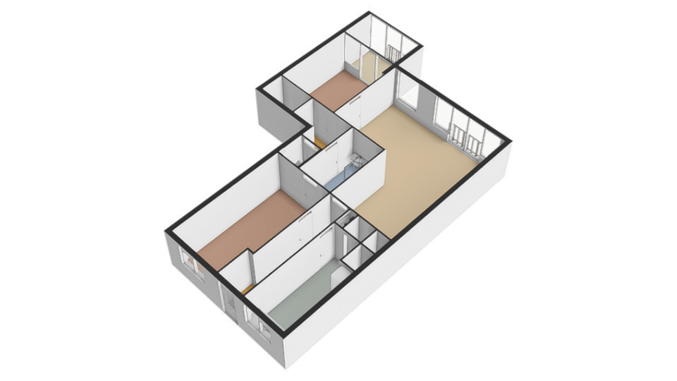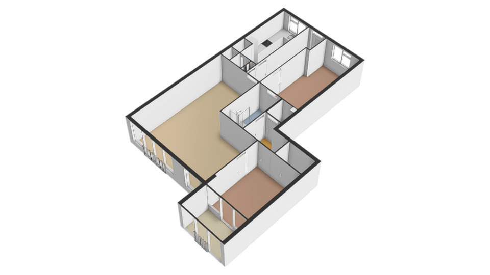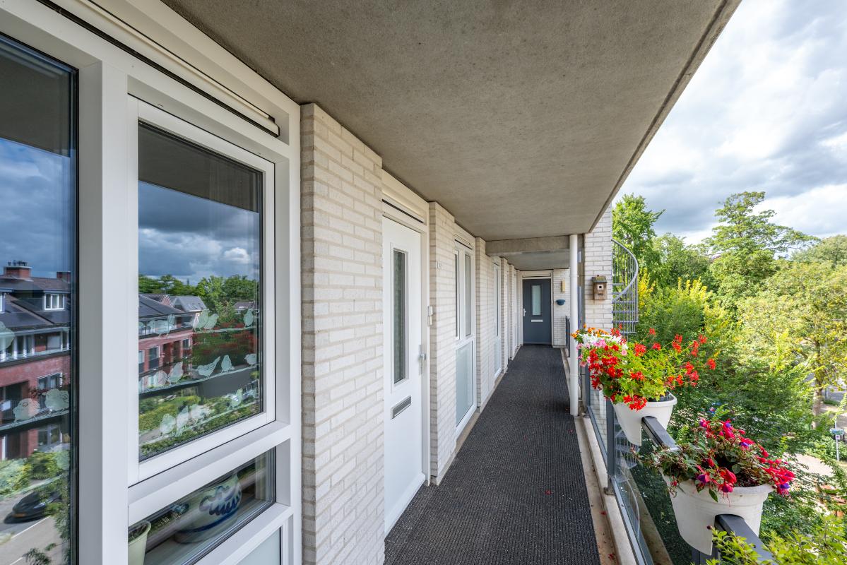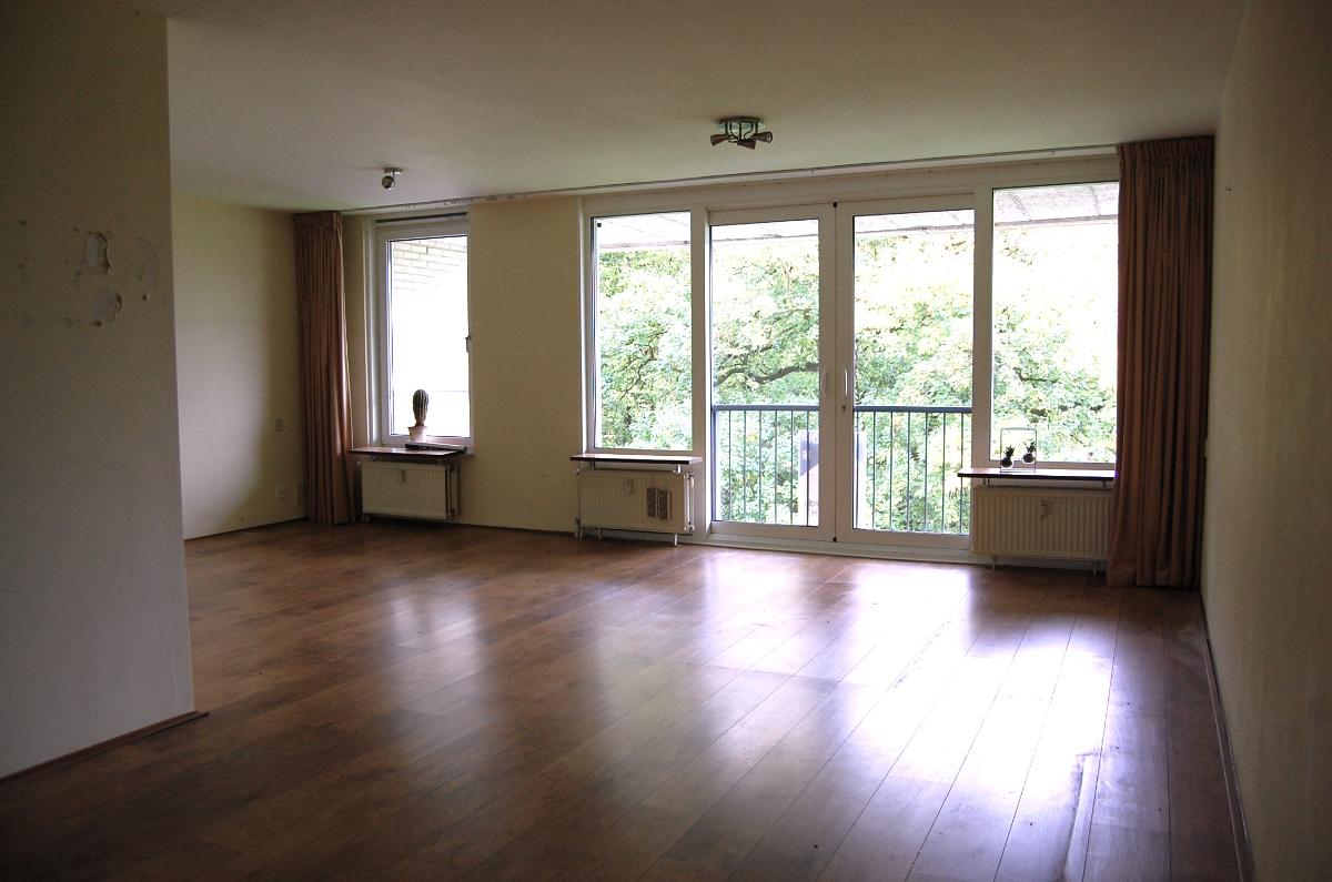3e verdieping: Entree, hal, meterkast. De grote slaapkamer is gelegen aan de voorzijde van de woning. Aan achtertuinzijde de lichte L-vormige woonkamer met laminaatvloer, deze heeft een schuifpui met Frans balkon, in de zijkamer bevindt zich de inpandige serre met schuifpui en Frans balkon. Deze kamer kan ook gebruikt worden als 2e slaapkamer. In de tussenhal bereikbaar vanuit de woonkamer een de grote slaapkamer bevindt zich de badkamer met douche, wastafelmeubel en de opstelplaats voor de wasmachine/droger en het separaat toilet met fonteintje. Vanuit de woonkamer aan de voorzijde van de woning de ruime open eenvoudige keuken met veel opbergruimte.