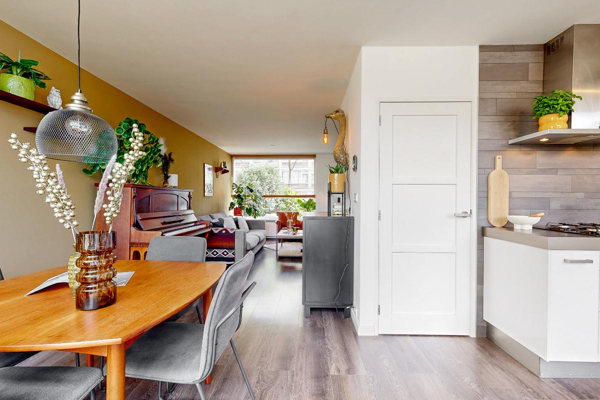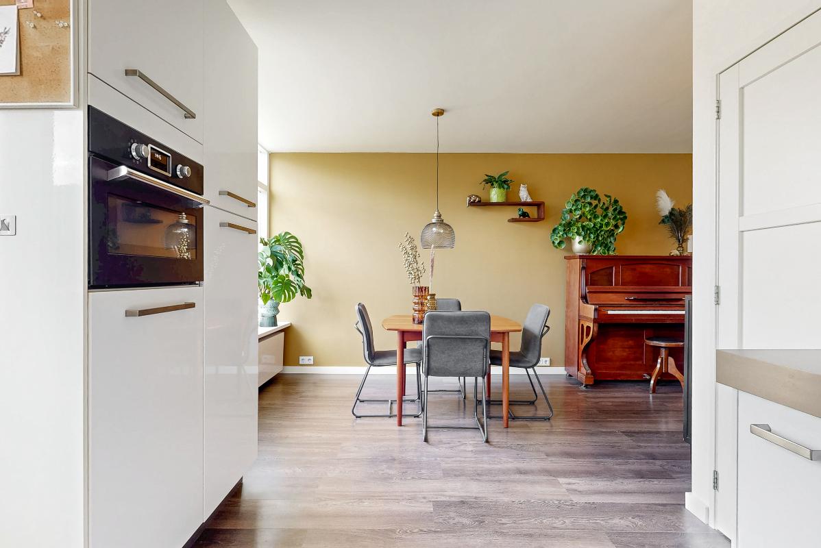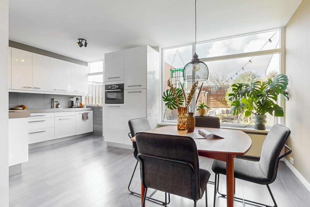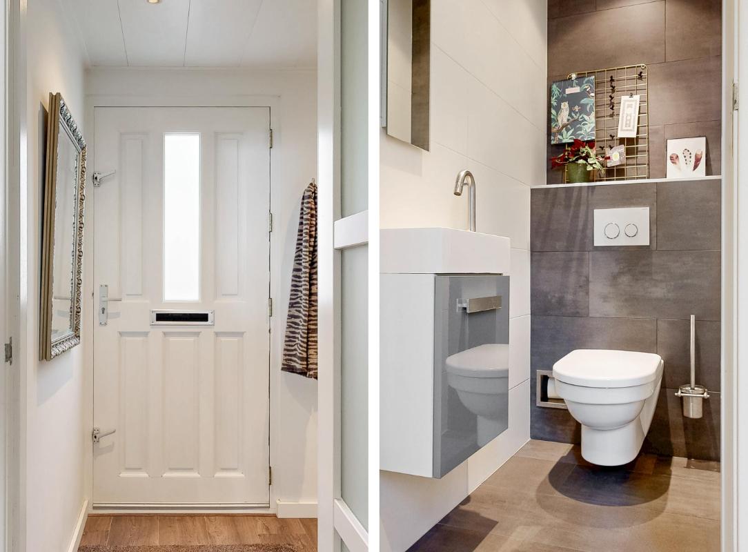 Bij binnenkomst vind je een praktische entree met plek voor jassen en schoenen en een modern toilet. De lichte woonkamer biedt ruimte voor een gezellige zithoek en heeft een groot raam met uitzicht op de voortuin, waarbij je door het volwassen groen prettig beschut zit. De keuken is voorzien van alle inbouwapparatuur, biedt ruimte voor een fijne eethoek en toegang tot een praktische berg-/provisiekast met de CV-opstelling.