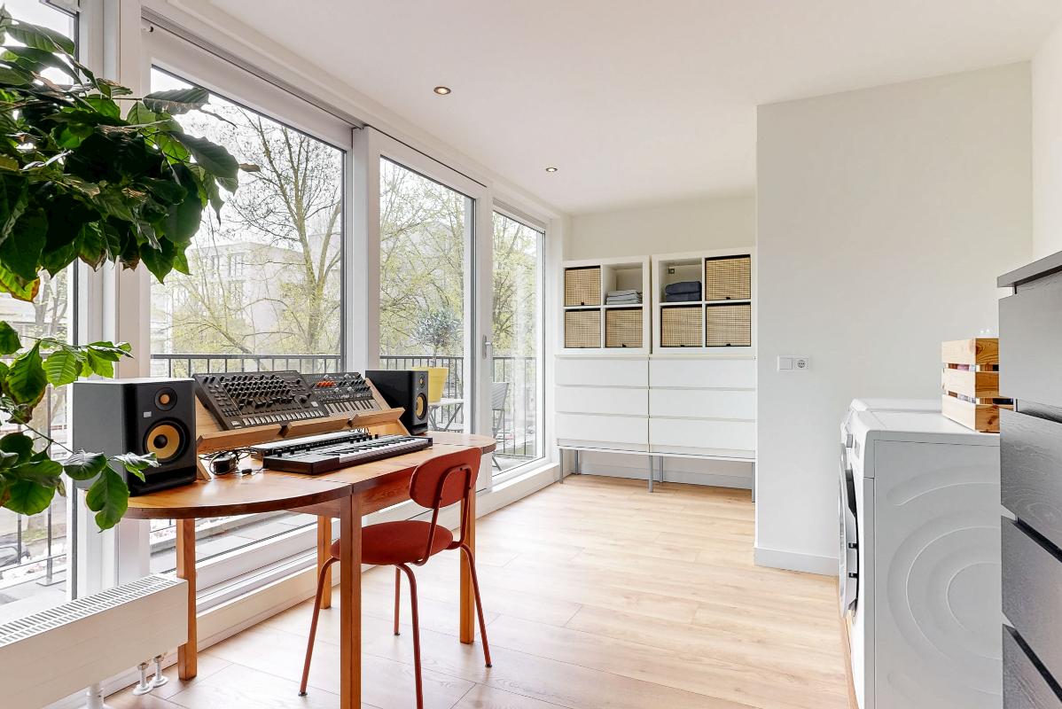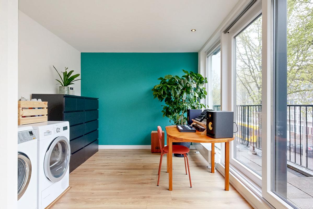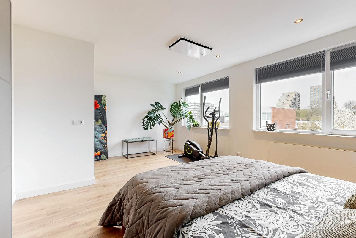 De tweede verdieping is aan beide kanten uitgebouwd (2020) en biedt veel extra ruimte en licht. Achterin bevindt zich een zeer ruime slaapkamer met airconditioning en plek voor kasten, gelegen op het noordwesten. Aan de voorzijde is een fijne, lichte kamer met aansluiting voor de wasmachine en droger, die uitstekend gebruikt kan worden als slaap-, werk-, studie- of hobbykamer. Vanuit deze kamer heb je ook toegang tot een balkon, waar je heerlijk van de ochtend- en middagzon kunt genieten.