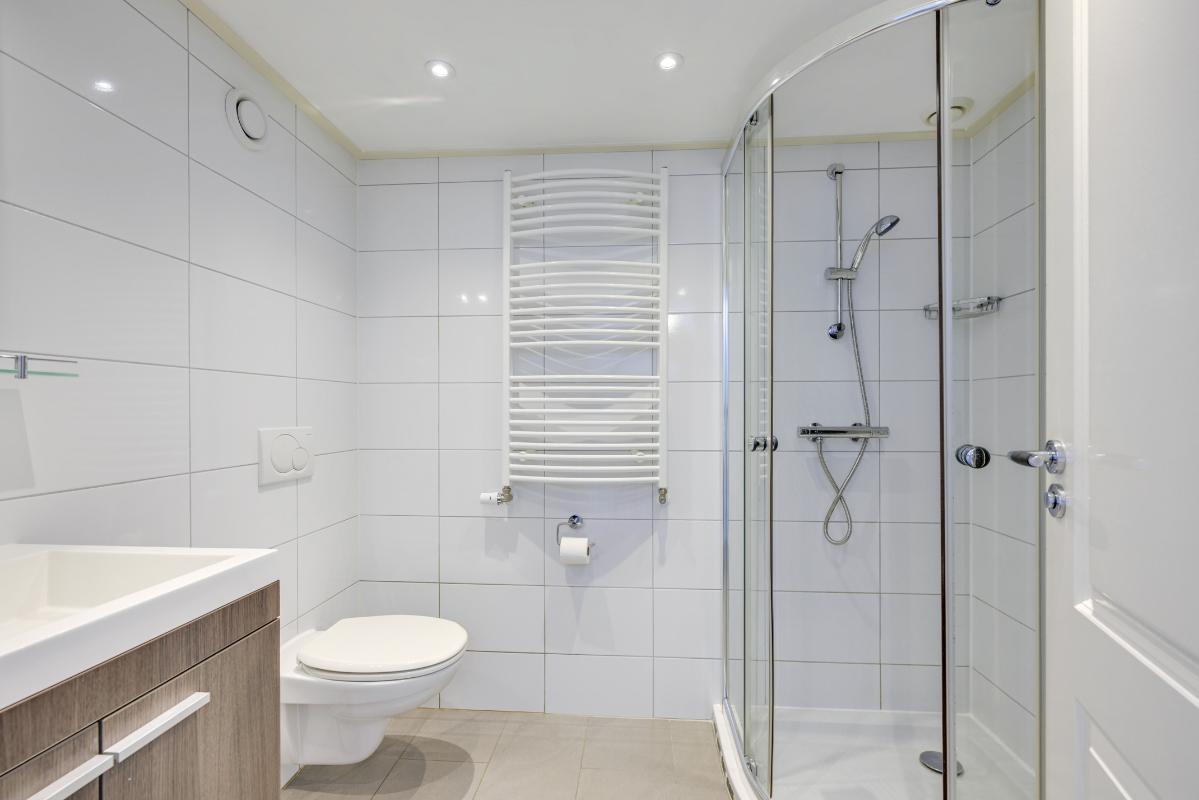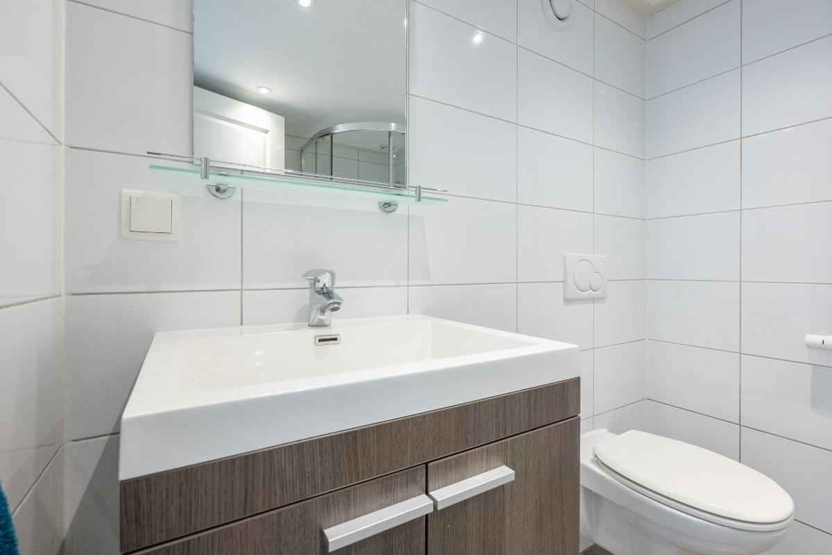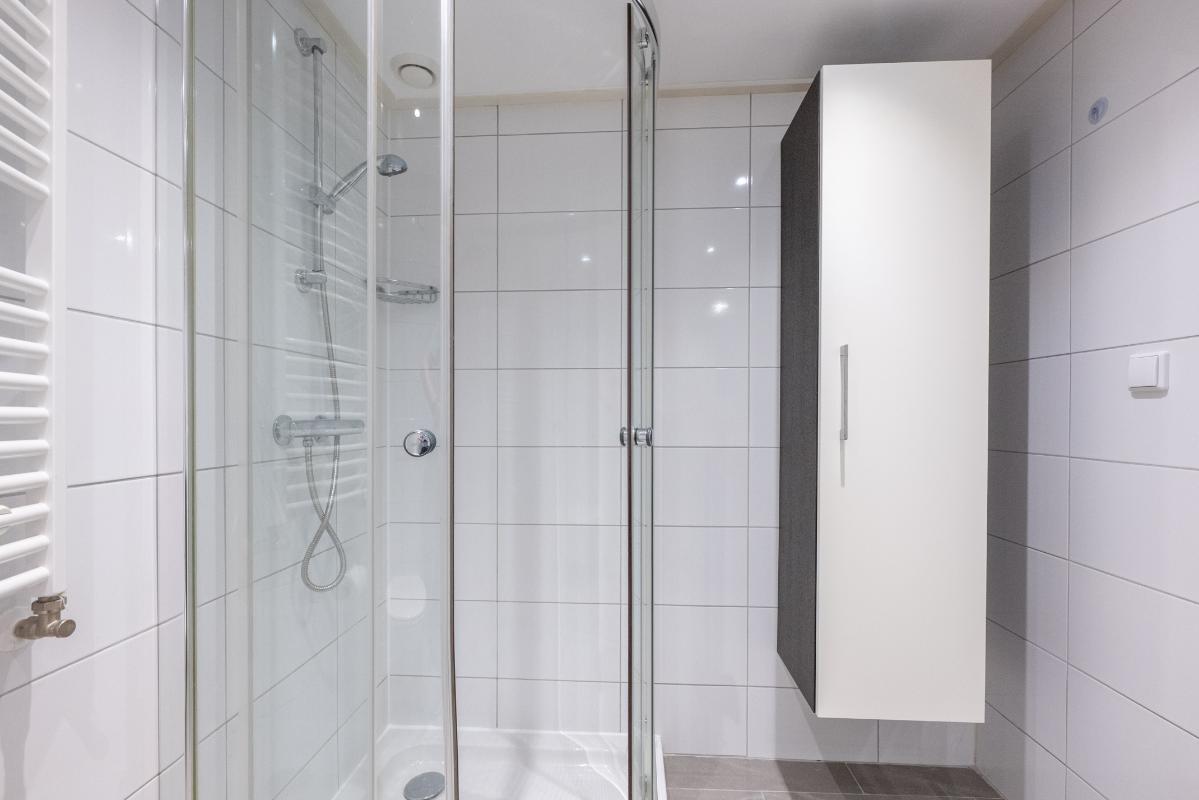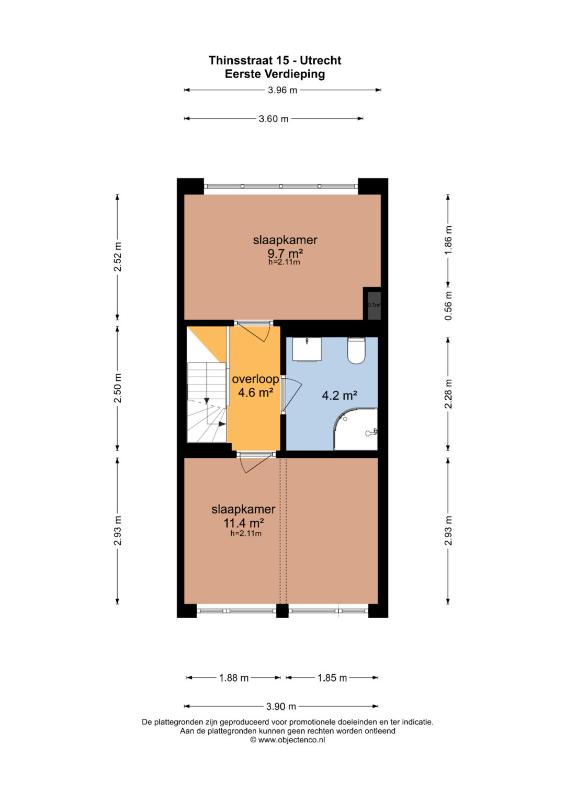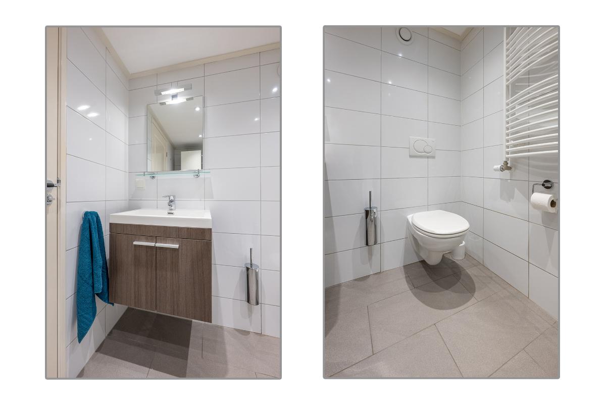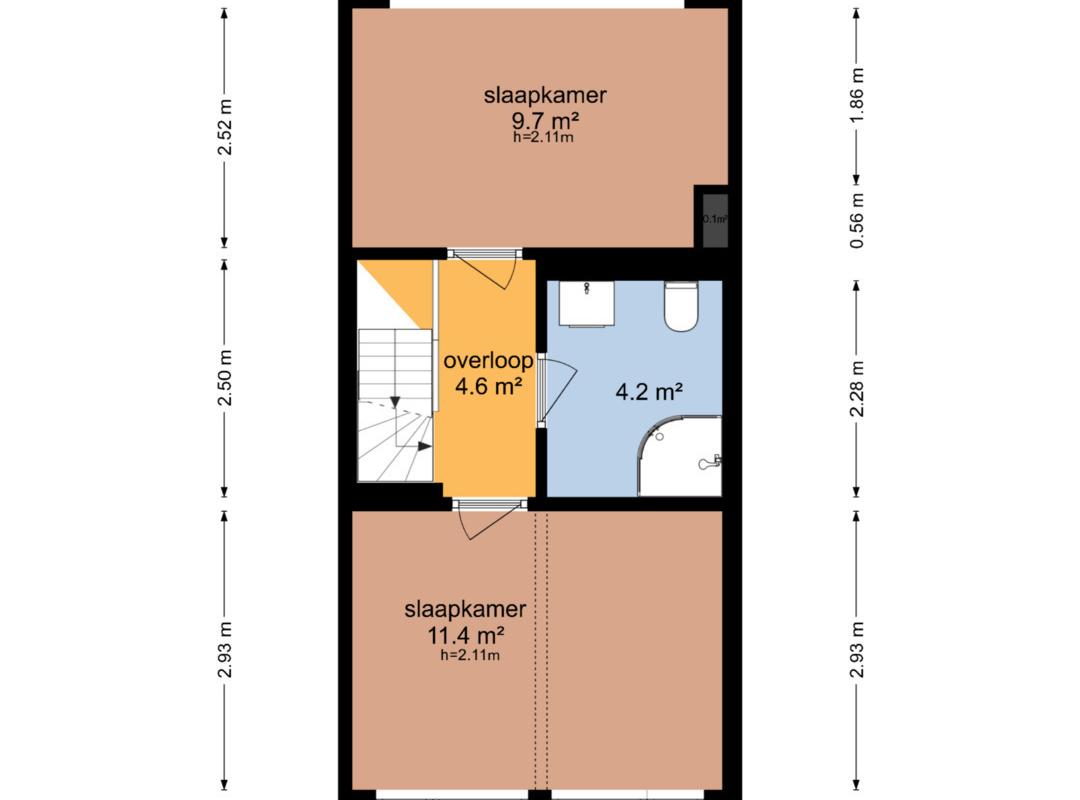 1e verdieping: Overloop met toegang tot twee ruime slaapkamers. Doordat de woning zowel aan de voor- als aan de achterzijde recht is opgetrokken, zijn beide kamers bijzonder ruim en praktisch in te delen. De moderne geheel betegelde badkamer is voorzien van een douche, een wastafelmeubel en een tweede toilet.