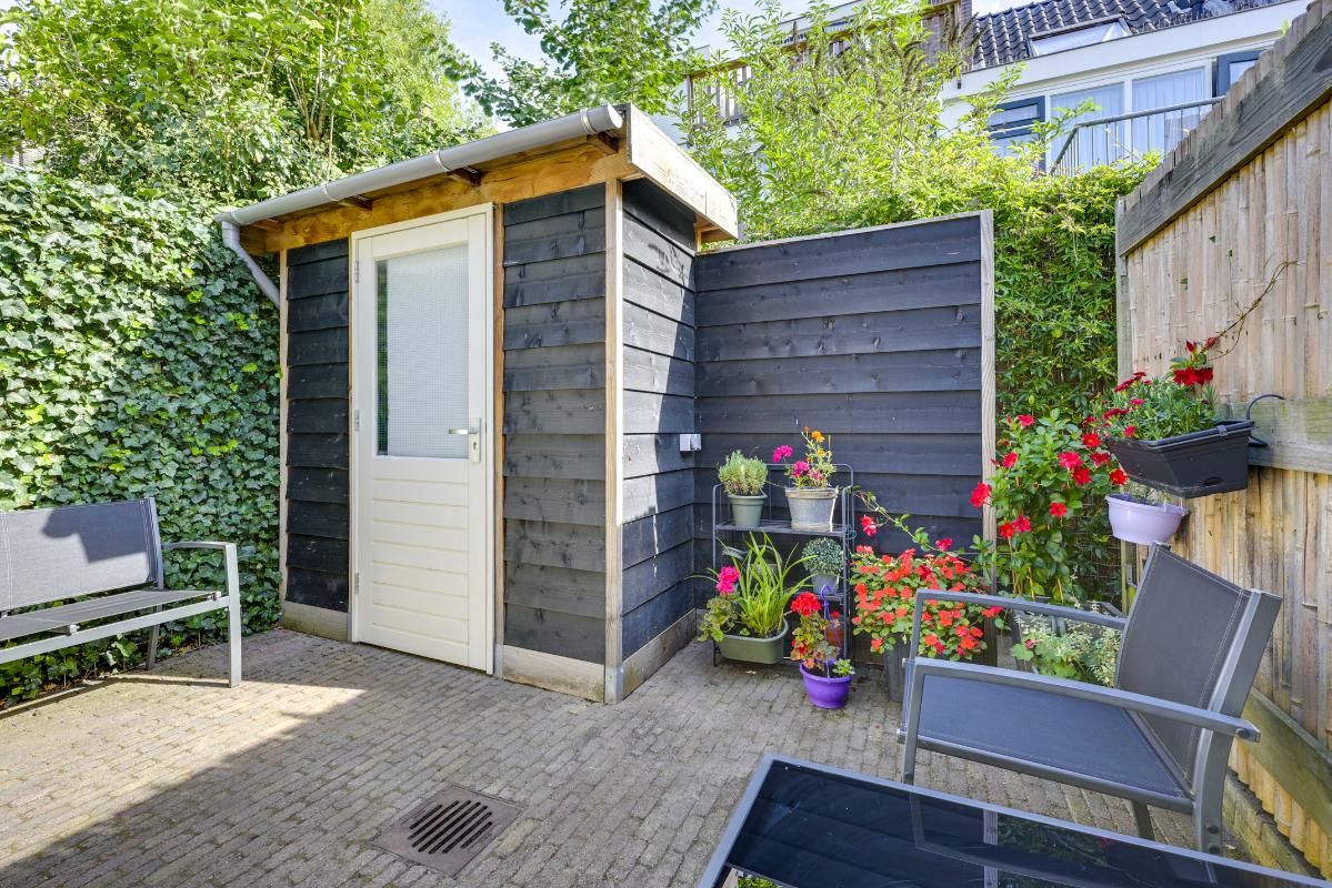 Tuin: Een fraai onderhouden tuin met achterin een handige bergschuur waar momenteel de wasmachine en een vriezer van de huidige bewoners zijn geïnstalleerd. Hier bevindt zich tevens de omvormer van de zonnepanelen.