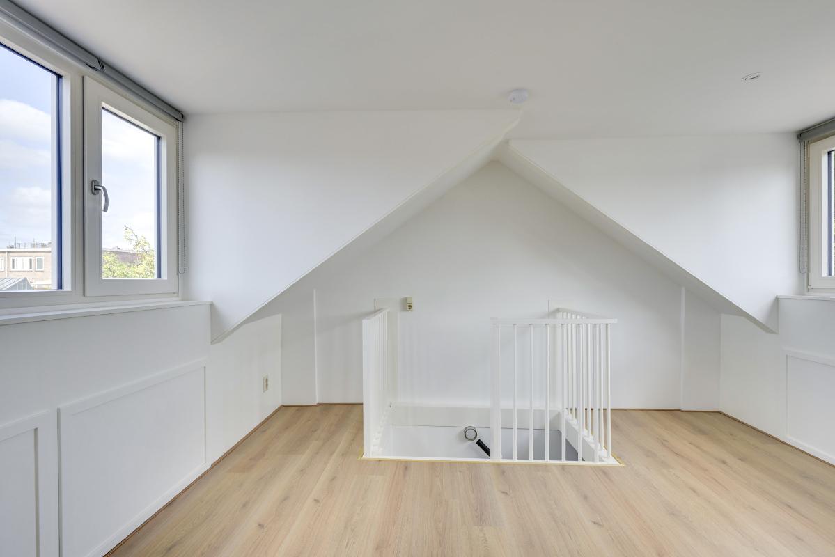 Zolder verdieping: De volledig afgewerkte zolderverdieping is bereikbaar via een vaste trap en biedt dankzij de dakkapellen aan zowel de voor- als achterzijde een verrassend ruime en lichte etage. Hier vind je een praktisch wastafelmeubel en wasmachineaansluiting en handig weggewerkte opbergruimtes aan beide kanten van de kamer. De C.V.-combiketel en de mechanische ventilatie zijn netjes in een kast weggewerkt. Vanuit deze verdieping geniet je van een prachtig uitzicht over de omgeving, met onder andere zicht op de karakteristieke Domtoren, het symbool van Utrecht.