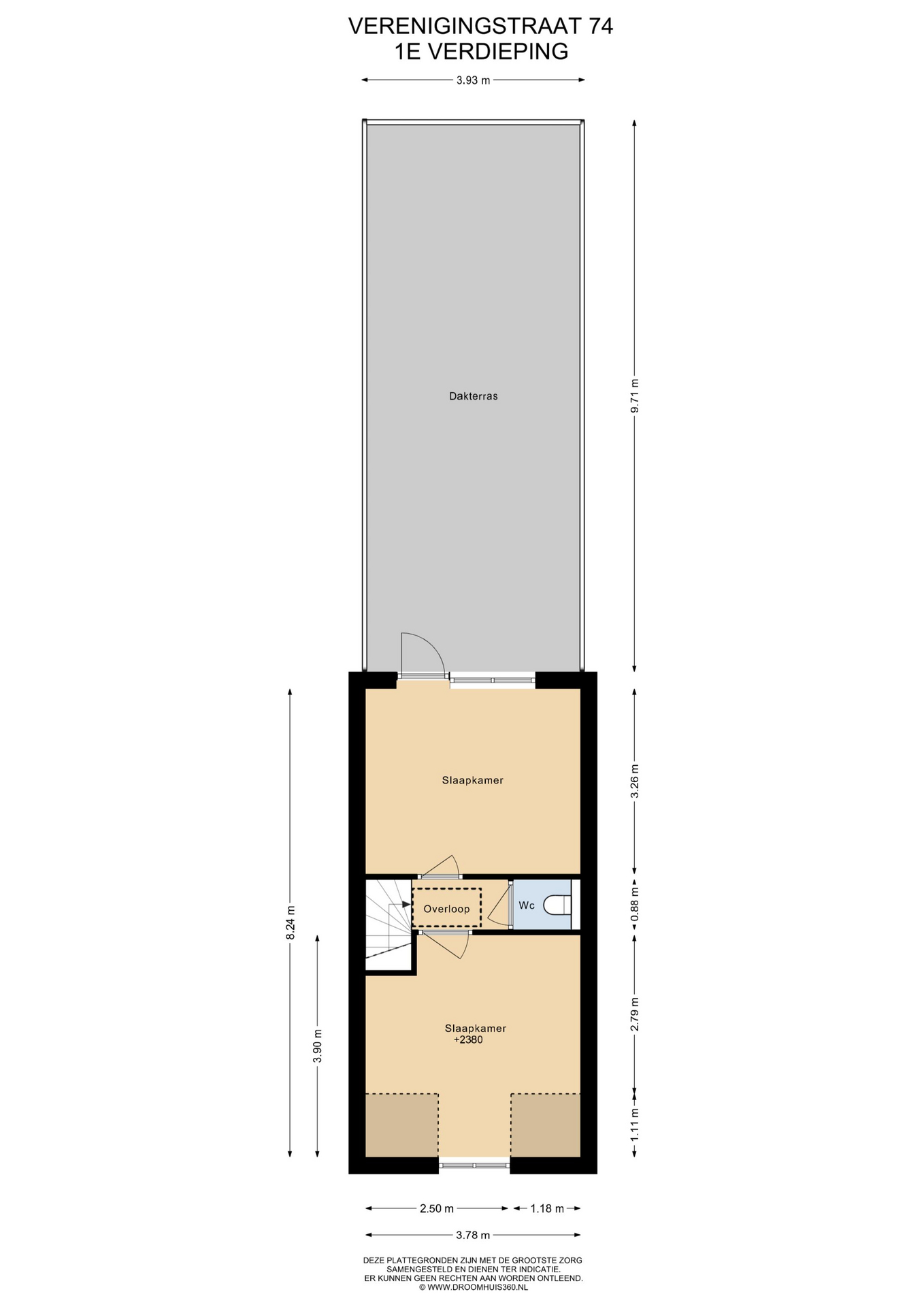 Via de trap bereik je de verdieping met een tweede separaat toilet, een ruime slaapkamer aan de voorzijde en een royale slaapkamer aan de achterzijde met eigen wastafelmeubel. Vanuit hier stap je zo het riante dakterras op; een plek van rust met de hele dag zon. De warmtepomp-unit is hier netjes weggewerkt.