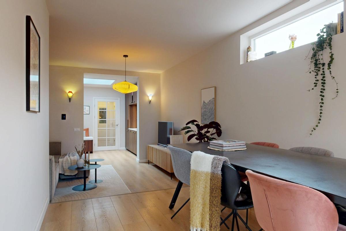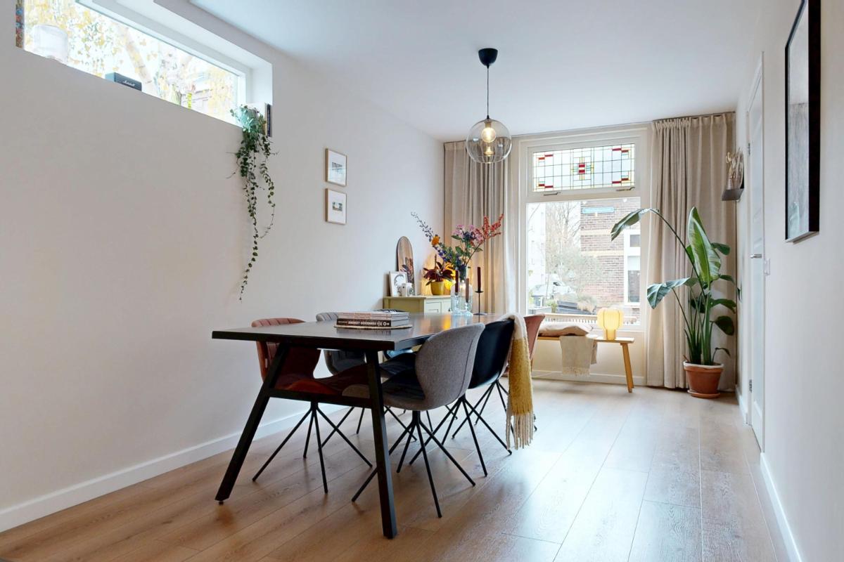Bij binnenkomst word je verwelkomd door een sfeervolle entree met origineel glas-in-lood. De woonkamer is een echt juweeltje: speels door het hoogteverschil, heerlijk licht dankzij de grote raampartijen en een plek waar je tot ’s avonds kunt genieten. De sfeervolle keuken is een droom voor elke kookliefhebber; strak, licht door de koepel boven je hoofd en uitgerust met alle inbouwapparatuur die je nodig hebt. Achter de keuken leidt een praktische hal naar de moderne badkamer met inloopdouche en stijlvol wastafelmeubel, plus een separaat toilet.