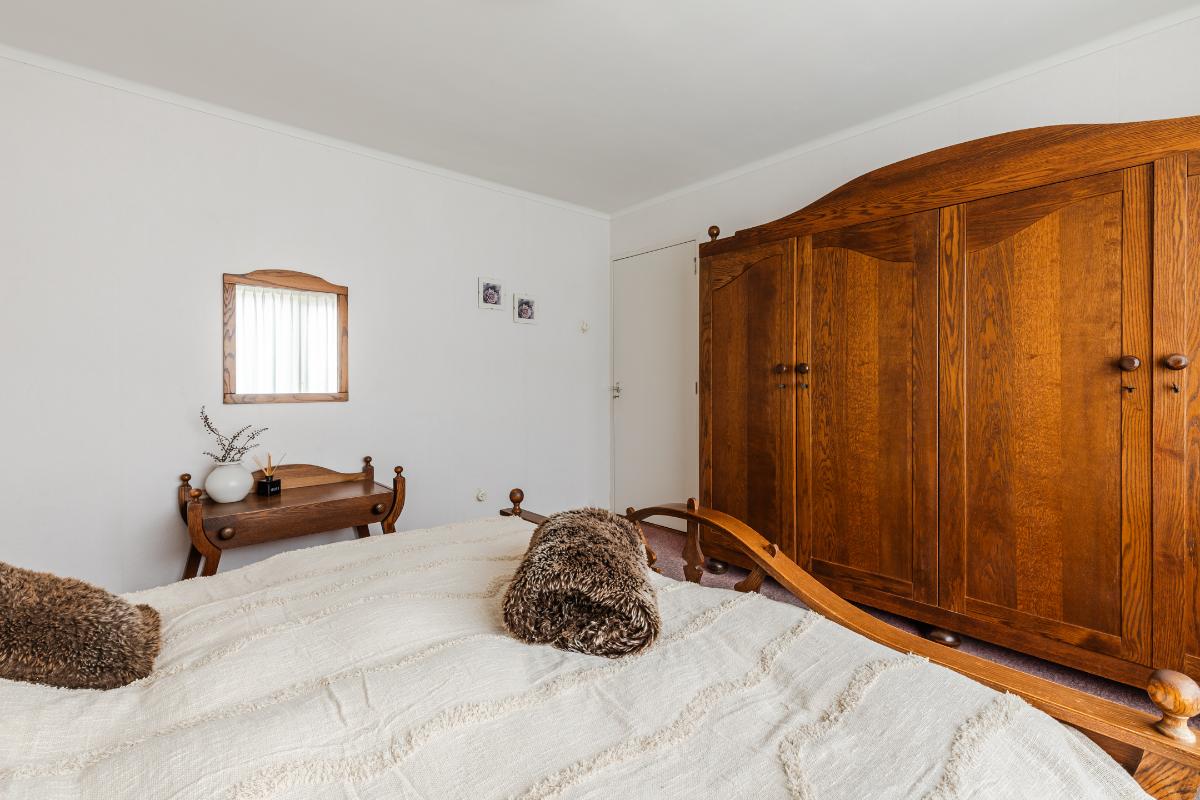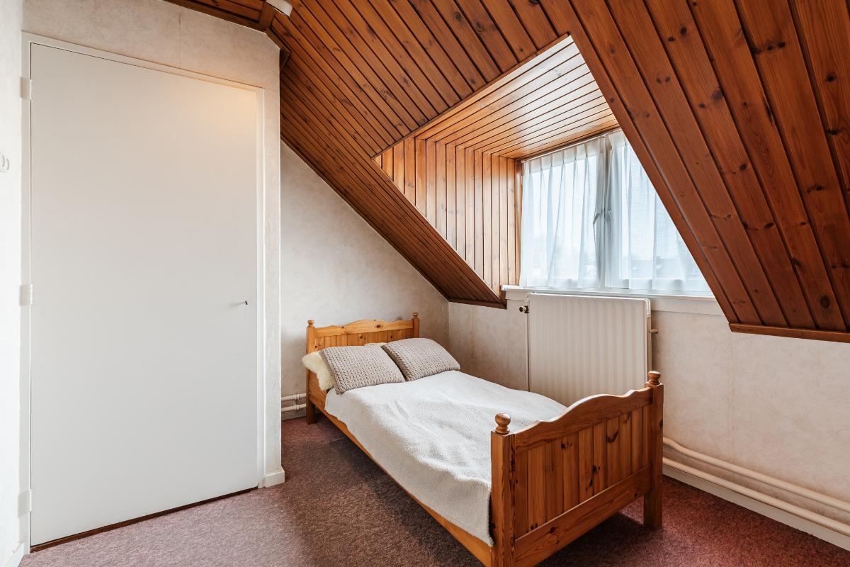 Vaste trap naar zolderverdieping. Overloop met toegang tot bergruimte aan weerszijden (met oa met aansluitingen wasapparatuur en opstelling cv-combiketel) en twee volwaardige slaapkamers, beiden met dakkapel.
