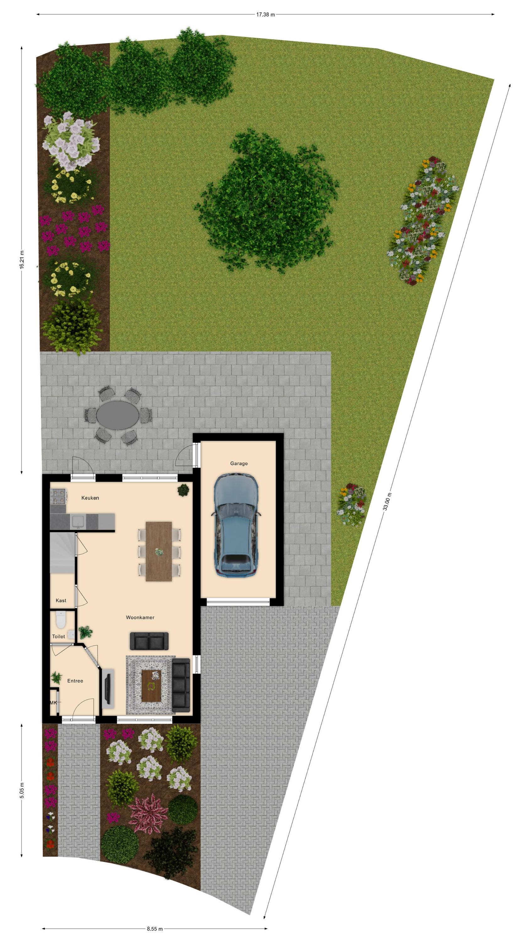 Grote, op het zuidoosten gelegen achtertuin met toegang tot garage en ook naast de garage nog een achterom naar de straatzijde. Volop ruimte om buiten te spelen en genieten en ook een uitgelezen kans voor een overdekt terras en uitbouw.