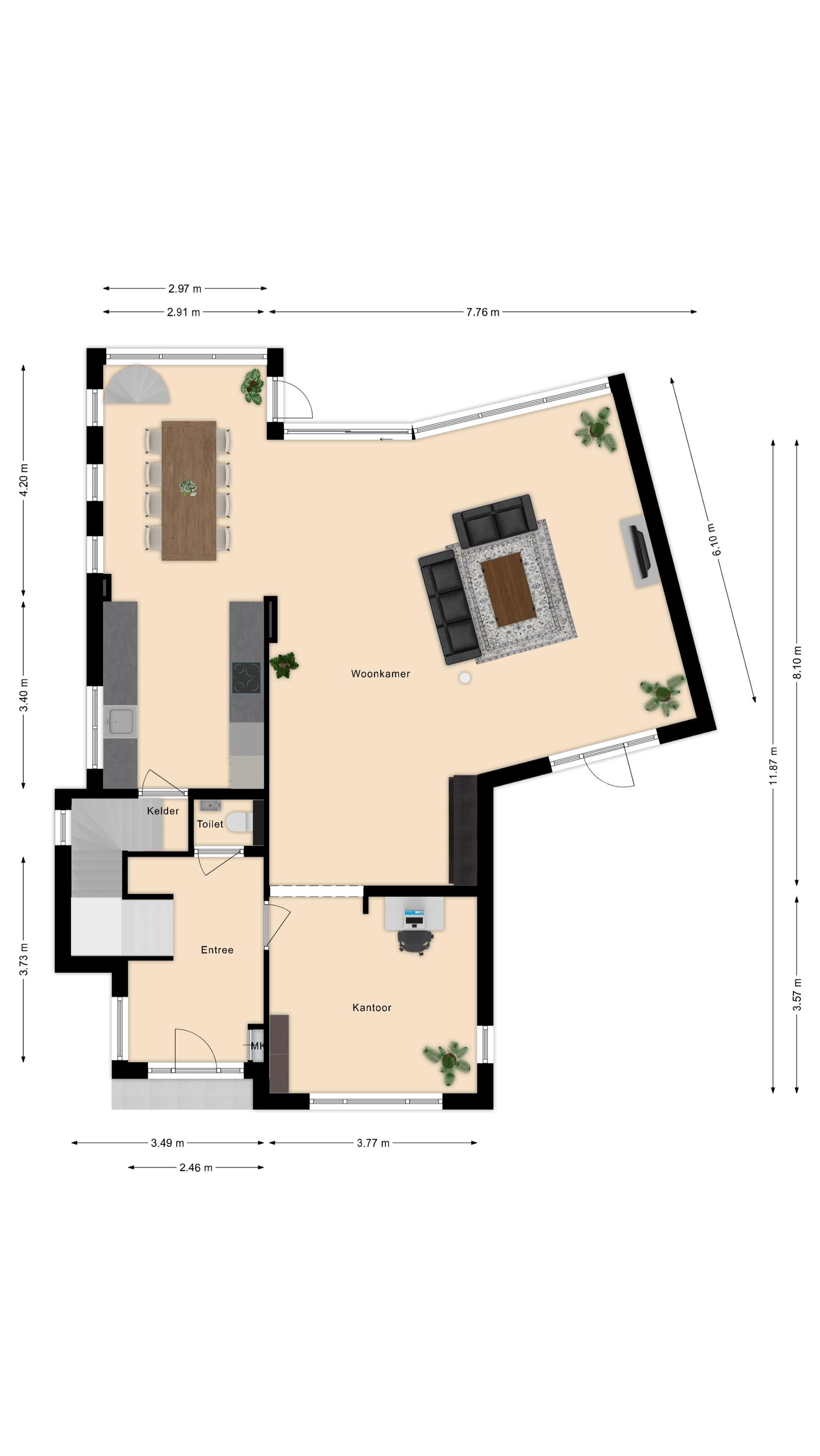 Binnenkomst in authentieke hal met zicht op de bordestrap en glas-in-lood. Verder bevindt zich hier de meterkast en toiletruimte. Binnenkomst in zeer ruime living met uitbouw aan zowel de zij- als achtergevel, veel glas en daardoor veel licht en zicht op de tuin. Aan de voorzijde bevindt zich een kantoor-/speelkamer. Open keuken met toegang tot een entresol. De keukeninrichting is van hoogwaardig niveau (2019) en onder meer voorzien van een inductiekookplaat, Quooker, combi-oven, vaatwasser en koelkast. Aangrenzend bevindt zich een ruime provisiekelder.