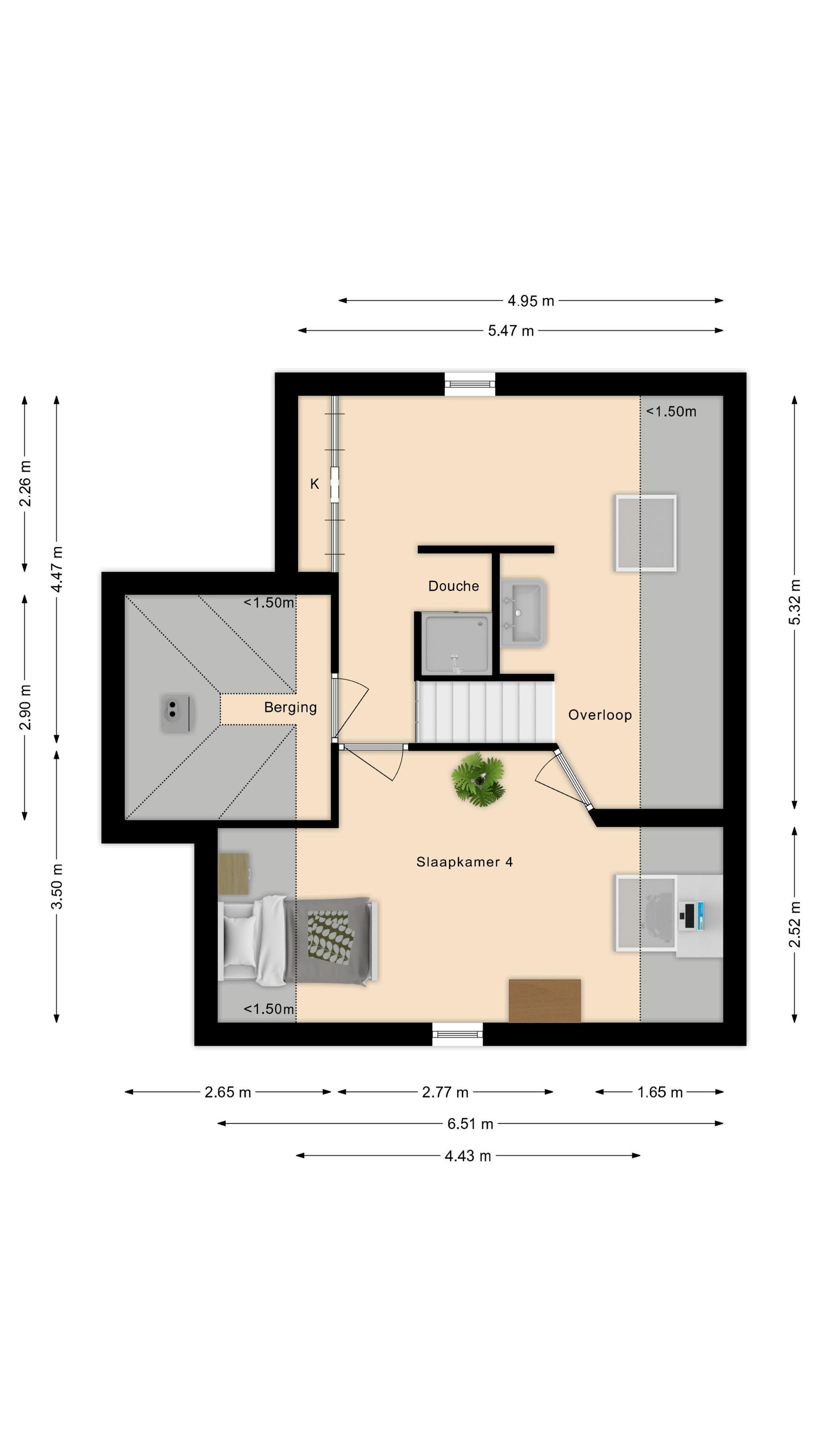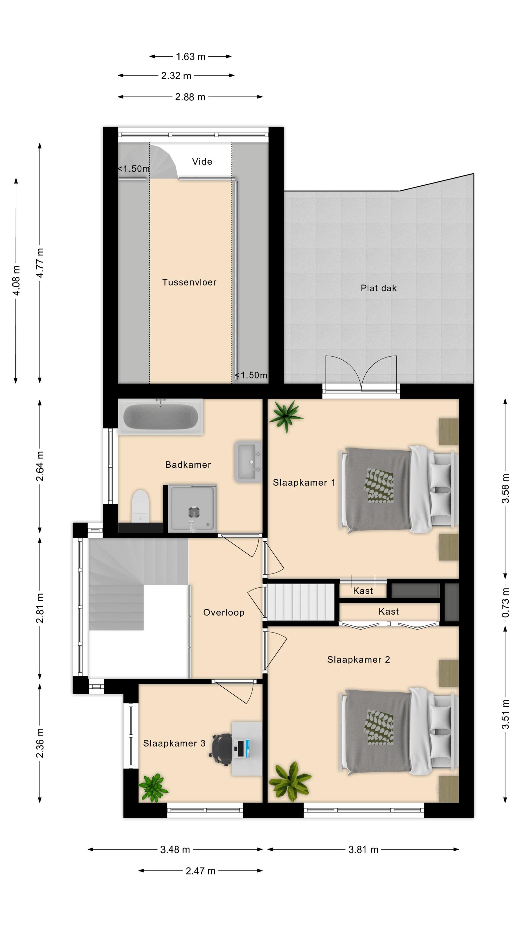 Riante tweede verdieping met een grote vierde slaapkamer, volop bergruimte én een wastafelmeubel en separate douche. Ideaal als gastenverblijf of voor opgroeiende kinderen.