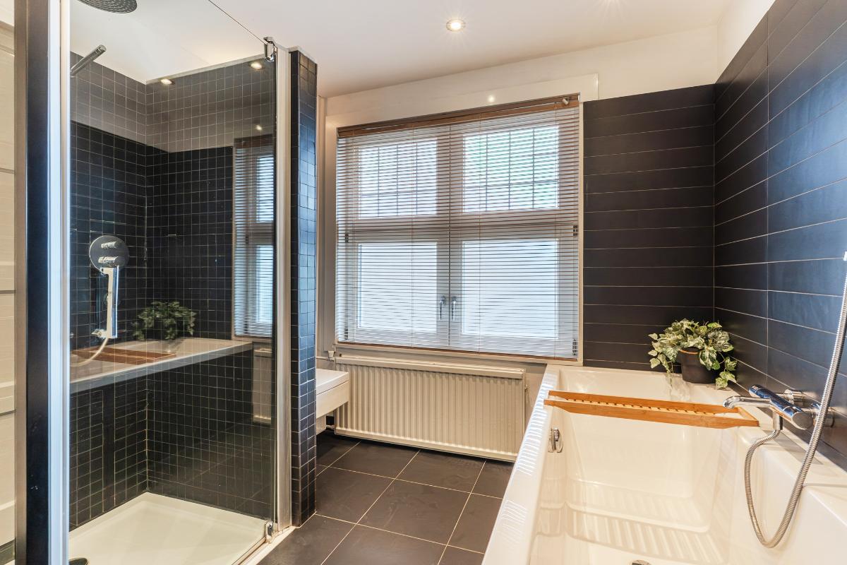De begane grond ademt sfeer en ruimte. Je treft hier een royale, tuingerichte living met grote raampartijen en vloerverwarming en een moderne open keuken van hoogwaardige kwaliteit (2019). Daarnaast vind je op de begane grond een fijne kantoor- of speelkamer. Op de verdiepingen bevinden zich vier slaapkamers, een complete badkamer én een tweede douchegelegenheid met wastafel op de bovenste verdieping, ideaal voor het gezin met opgroeiende kinderen of als gastenverblijf.