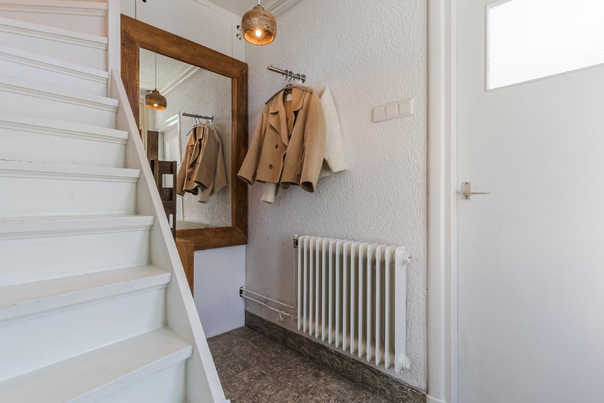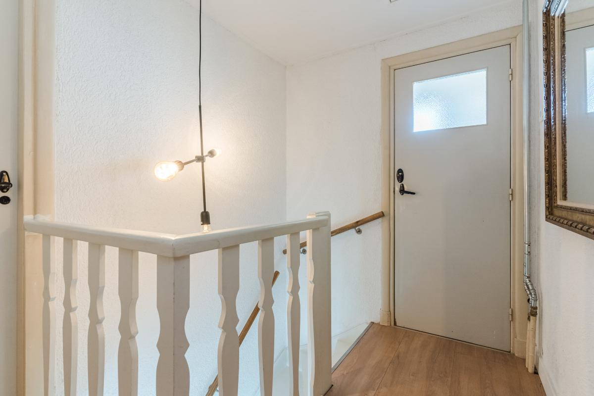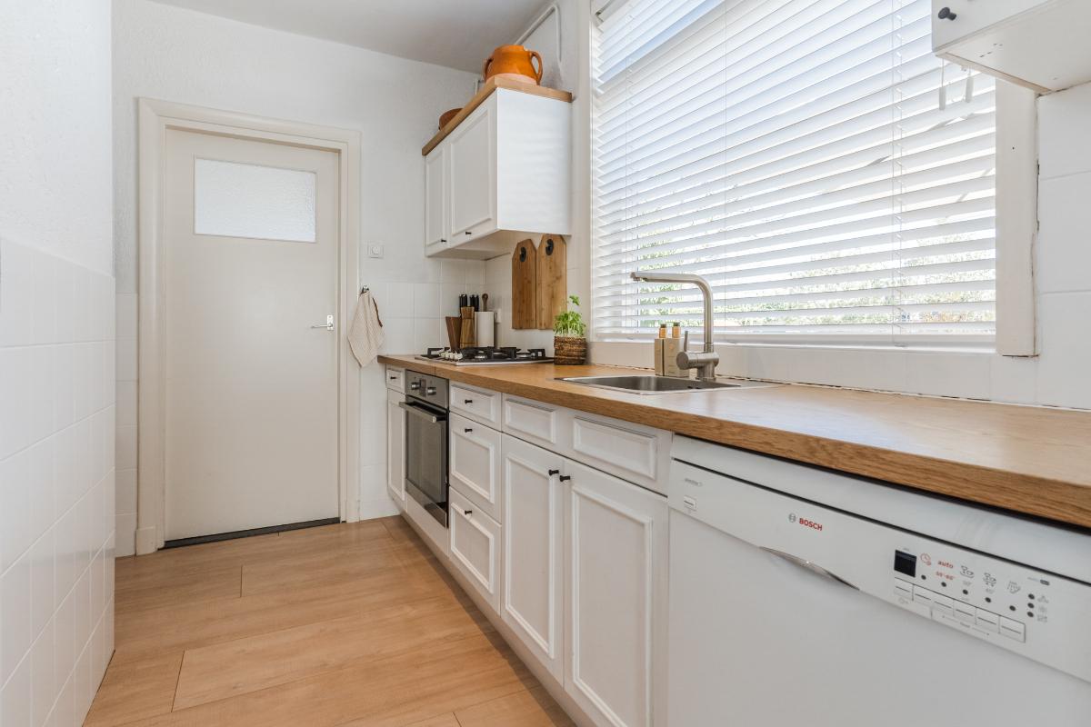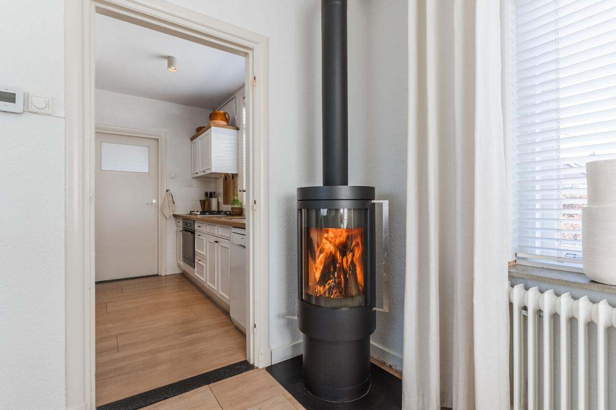 Indeling Begane grond: Grote voortuin met eigen oprit die geschikt is om meerdere auto's te parkeren. Entree naar hal met meterkast en trapopgang. Compacte doorzonwoonkamer (19m²) met sfeervolle houtkachel en doorgang naar de aan de achterzijde gelegen keuken met nette inrichting in wandopstelling. Praktische kelderruimte en portaal met deur naar de tuin. Slaapkamer op de begane grond (ook te gebruiken als speel- of werkkamer) met aansluitend de nette badkamer ingericht met douche, wandcloset, wastafel, aansluiting voor de was-apparatuur en toilet.