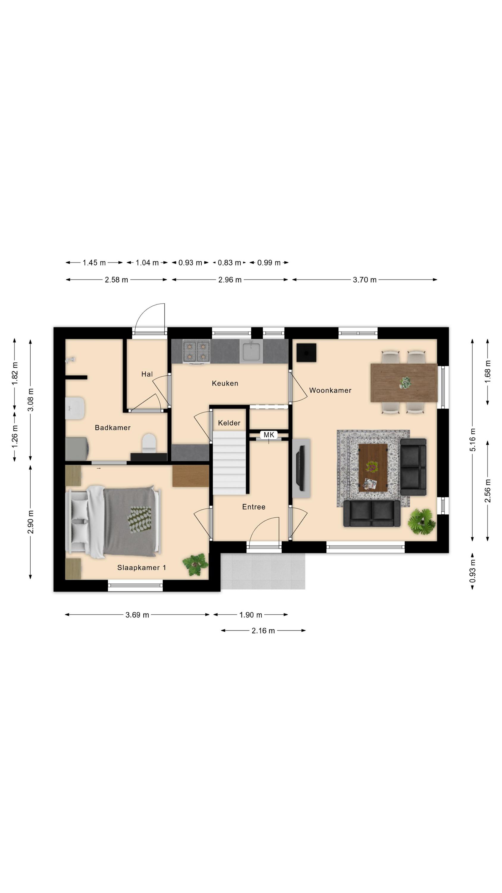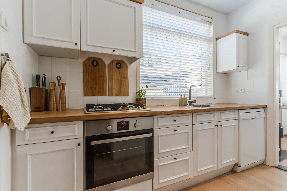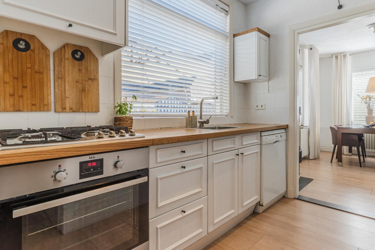 Indeling Begane grond: Grote voortuin met eigen oprit die geschikt is om meerdere auto's te parkeren. Entree naar hal met meterkast en trapopgang. Compacte doorzonwoonkamer (19m²) met sfeervolle houtkachel en doorgang naar de aan de achterzijde gelegen keuken met nette inrichting in wandopstelling. Praktische kelderruimte en portaal met deur naar de tuin. Slaapkamer op de begane grond (ook te gebruiken als speel- of werkkamer) met aansluitend de nette badkamer ingericht met douche, wandcloset, wastafel, aansluiting voor de was-apparatuur en toilet.