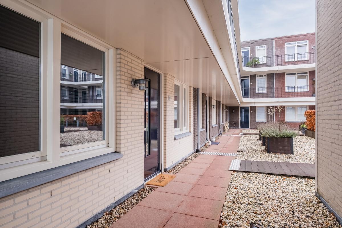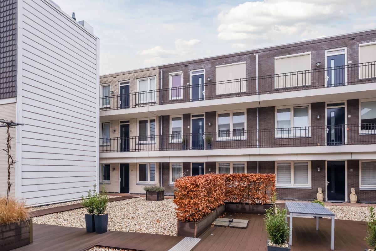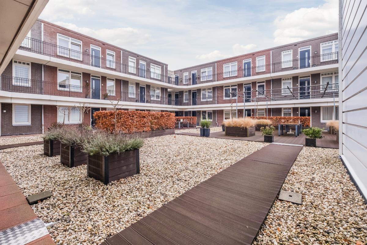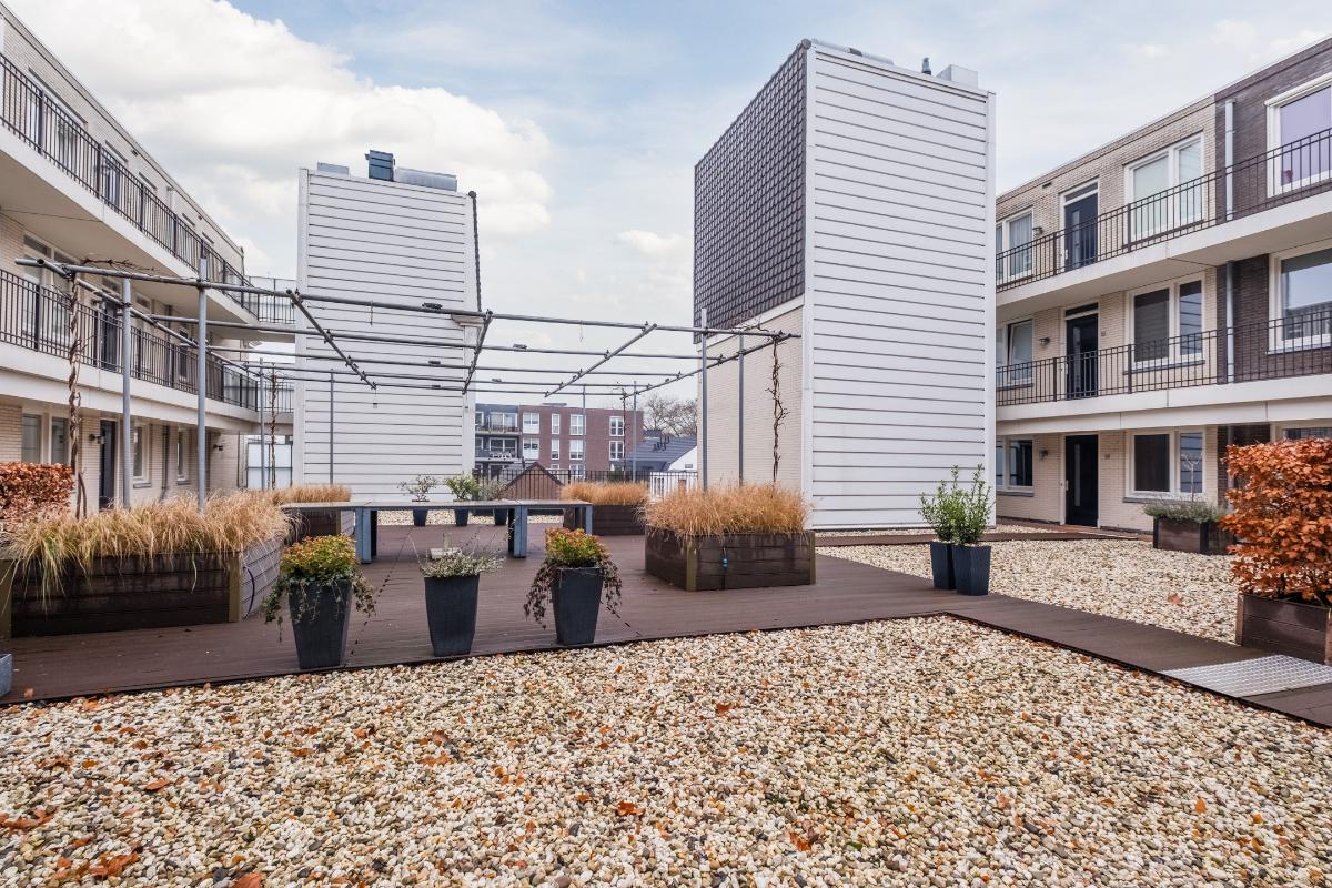 Binnentuin: Op de eerste verdieping ligt een sfeervol aangelegde en grote binnentuin. Vanuit het appartement loop je zo de binnentuin op. Deze tuin is door alle eigenaren te gebruiken en dat wordt op de mooie dagen dan ook volop gedaan. De tuin is zonnig en beschut (weinig wind) en kan in de zomer ook gebruikt worden om lekker buiten te eten.