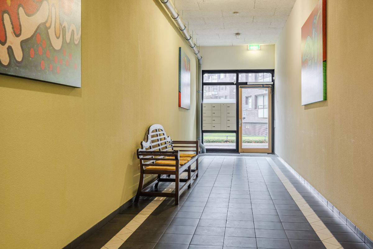 Begane grond: Centrale entree met videofoon en brievenbussen. Binnenkomst in nette, ruime hal met toegang tot de lift en de trapopgang. In de kelder van het complex is middels elektrische bedienbare poort toegang tot de parkeerkelder met eigen parkeerplaats en berging.