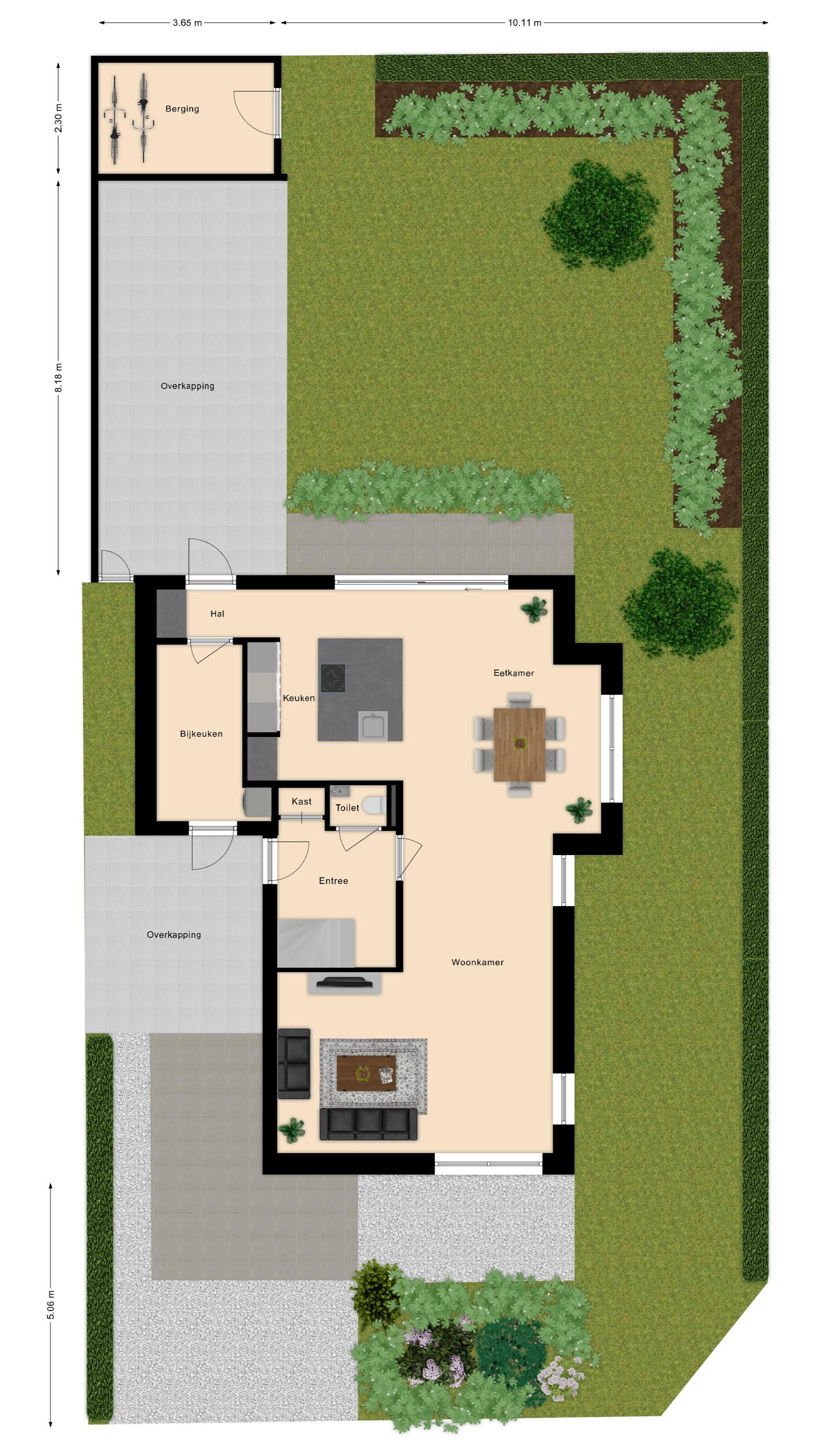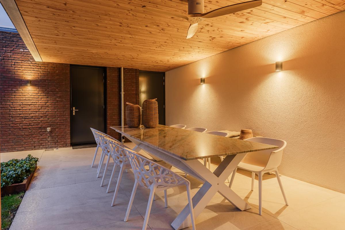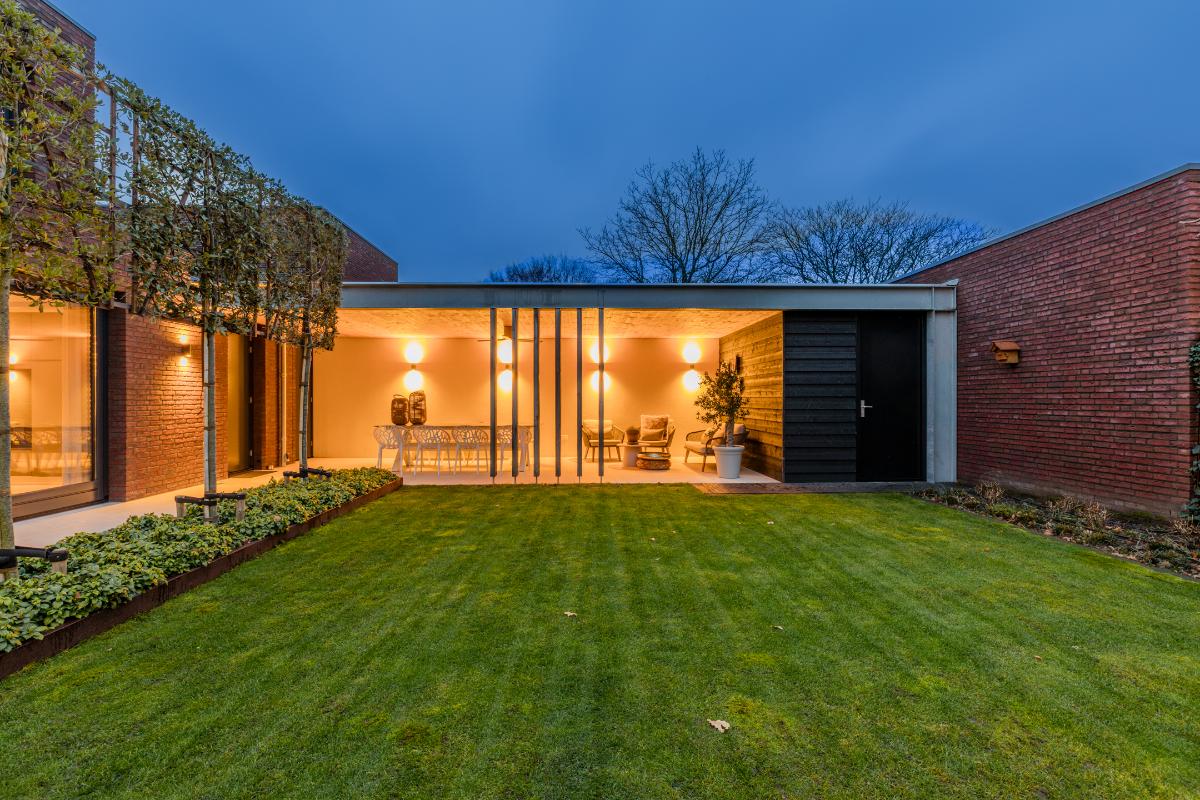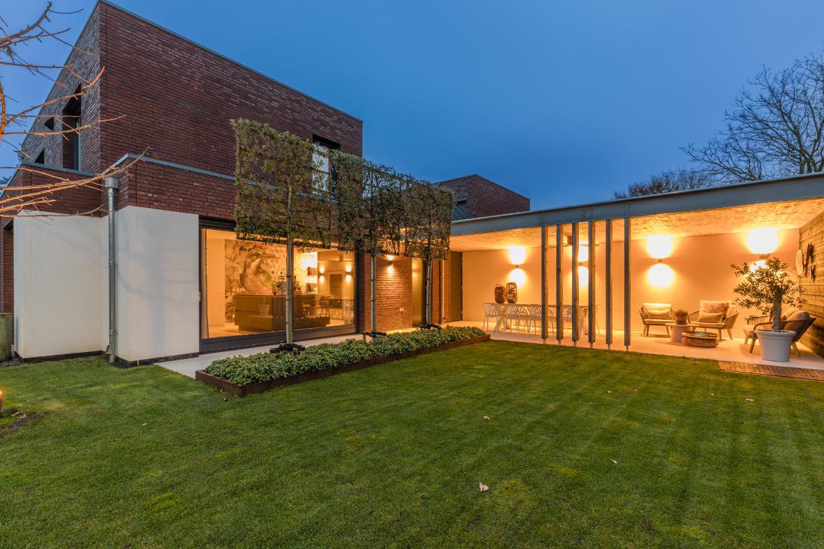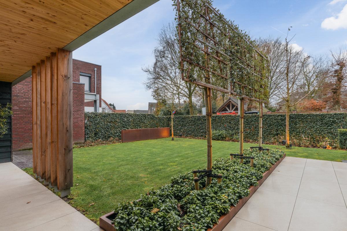 Tuin: Op de zonzijde georiënteerde- en onder architectuur aangelegde achtertuin. Het is een genot om te vertoeven op het volledig privacy biedende-, overdekte terras. Het terras is maar liefst 32m² groot en het gevoel van vrijheid en vakantie is nooit ver weg. Verder is de tuin aangelegd met een gazon, mooie borders met volwassen aanplant en diverse leibomen. Je hebt een vrij uitzicht richting de Korenstraat en er is naast de woning een vrije- en afsluitbare achterom.