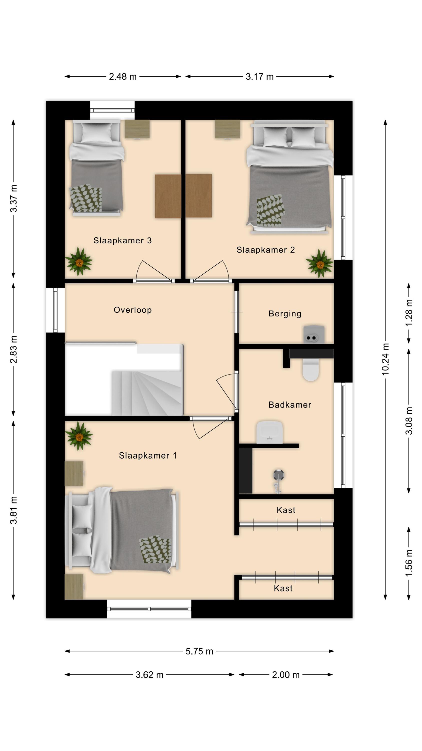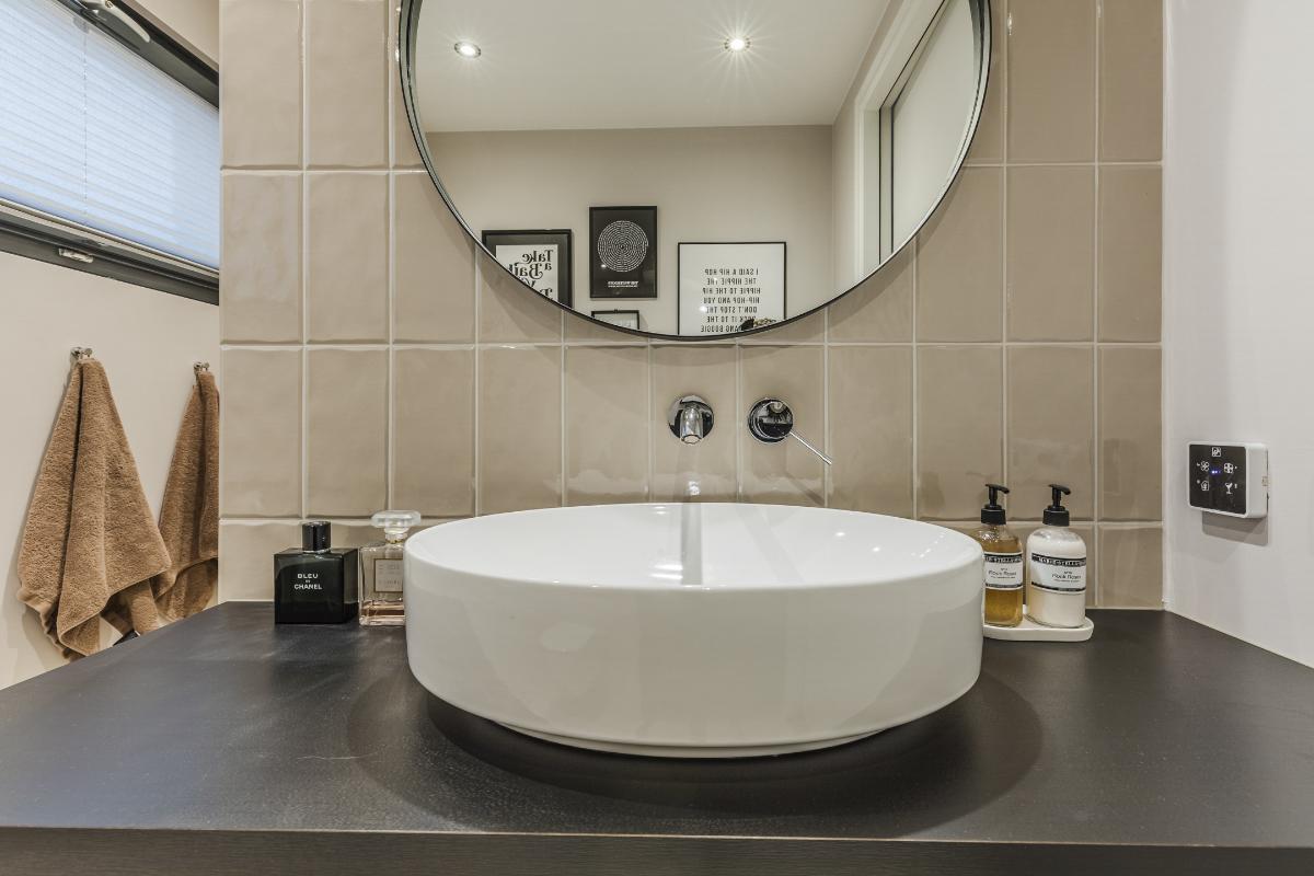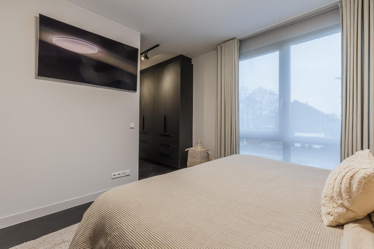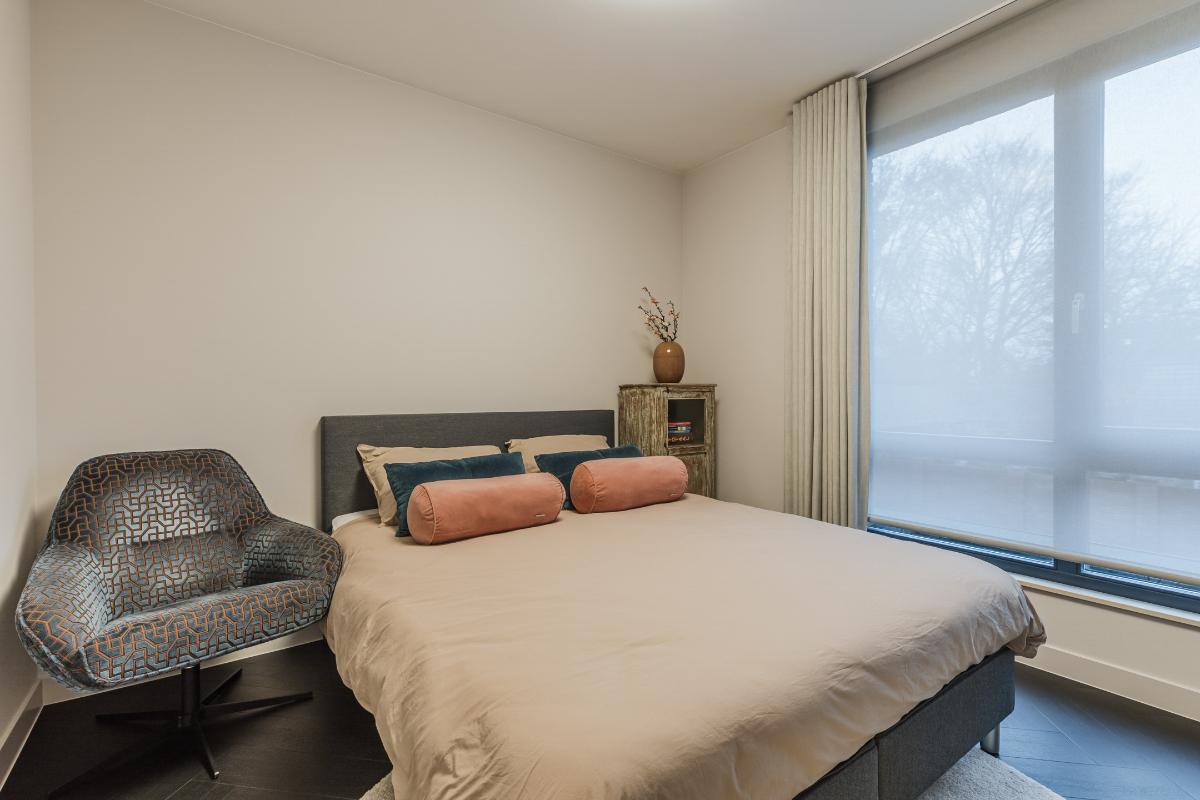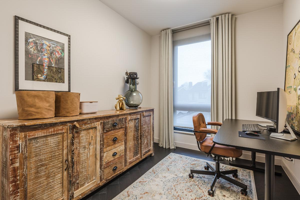 1e verdieping: Overloop met visgraat PVC vloer die ook op de slaapkamers is doorgelegd. Er zijn 3 ruime slaapkamers waarvan de master bedroom de ultieme hotelbeleving geeft. Deze slaapkamer heeft naast een airco ook een maatwerk inloopgarderobe. De luxe badkamer is ingericht met maatwerk kasten, een badmeubel met design waskom, een wandcloset en een royale inloopdouche.