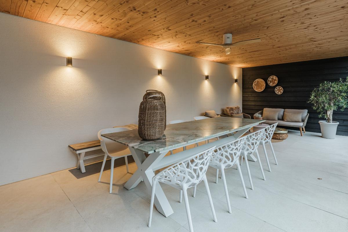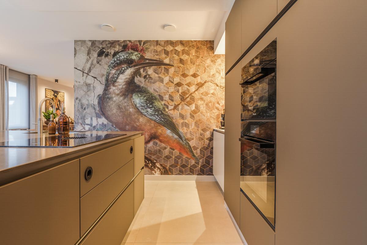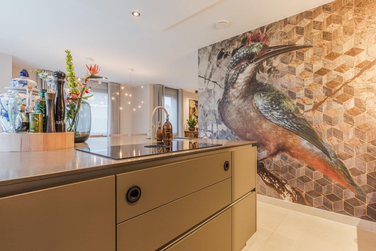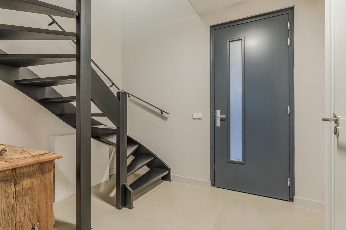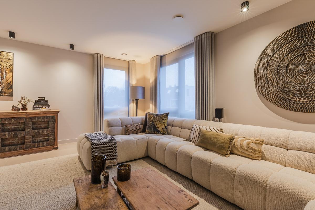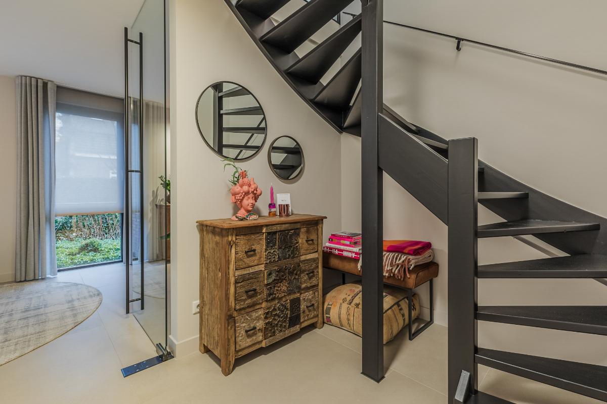 Begane grond: Eigen oprit naar carport, vrije achterom, berging en entree. Ontvangsthal met trap, meterkast, modern uitgevoerd toilet en glazen taatsdeur naar de living. Sfeervolle living met 1.20 x 1.20m tegelvloer (gehele begane grond doorgelegd) en dankzij de ramen tot aan de grond, de erker en de schuifpui is er veel daglicht inval en dus ook een aangename sfeer. De luxe leefkeuken is aan de achterzijde gelegen en is voorzien van een warme-, maatwerk inrichting die bestaat uit een kastenwand met koffiecorner en een groot- en praktisch-, vierkant kookeiland. De apparatuur bestaat uit een inductiekookplaat met geïntegreerde afzuiging, vaatwasser, oven, stoomoven, koelkast, Quooker en zelfs een wijnklimaatkast. Achter de keuken is een portaal met toegang tot de tuin en toegang tot de inpandig berging.