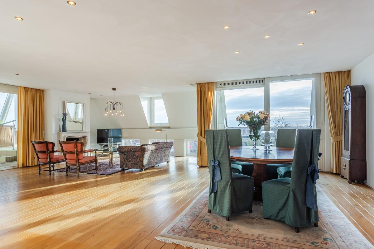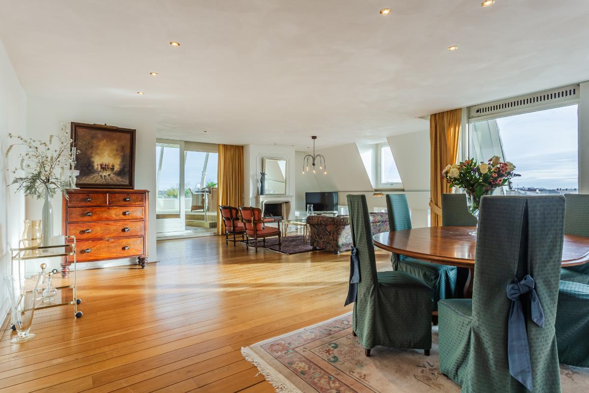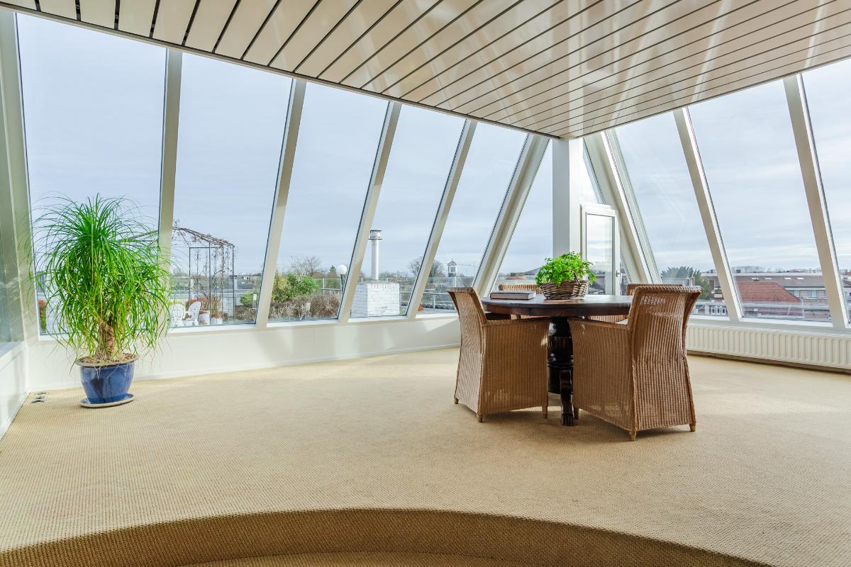 Vanuit de liftuitgang op de derde verdieping privé toegang tot het appartement. Hal met toiletruimte en toegang tot de slaapvleugel en het woongedeelte. Indrukwekkende living met halfopen keuken, veel licht en ruimte voor diverse zitgedeeltes. Door de raampartijen tot vloerniveau is er ook "vanaf de bank" uitzicht over de markt. Vanuit de woonkamer toegang tot een orangerie/wintertuin met ruim zitgedeelte en schuifpui naar het dakterras.