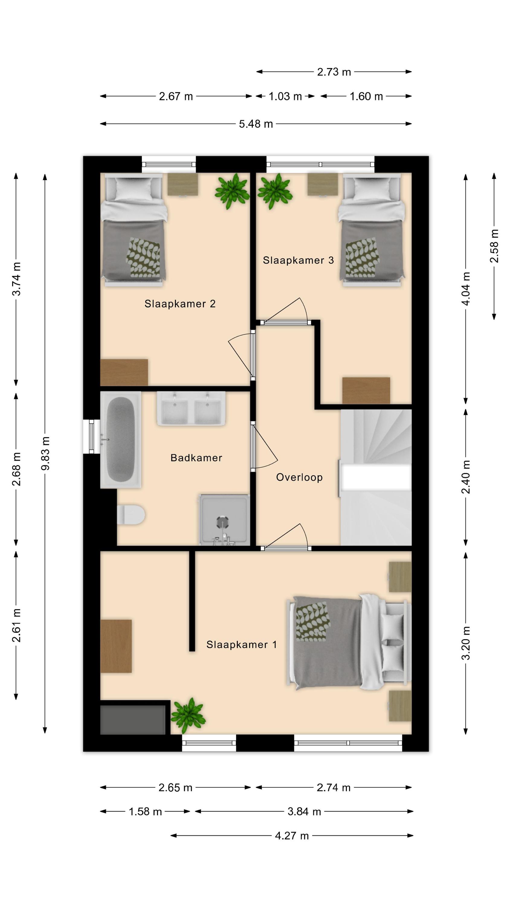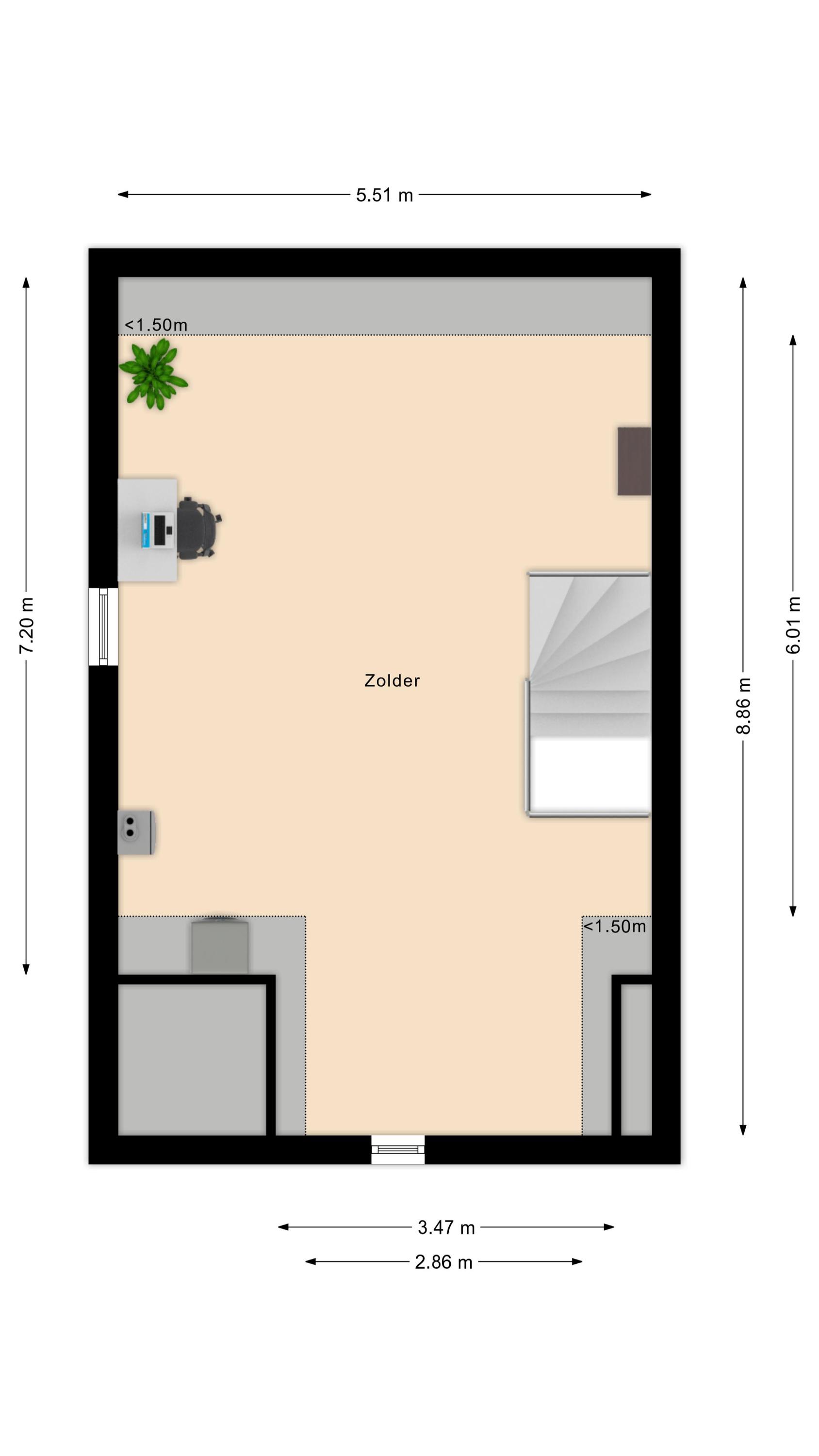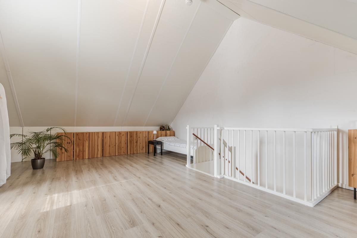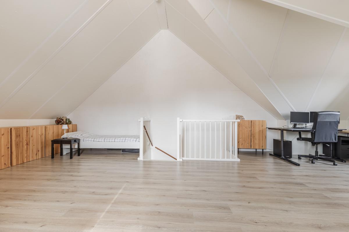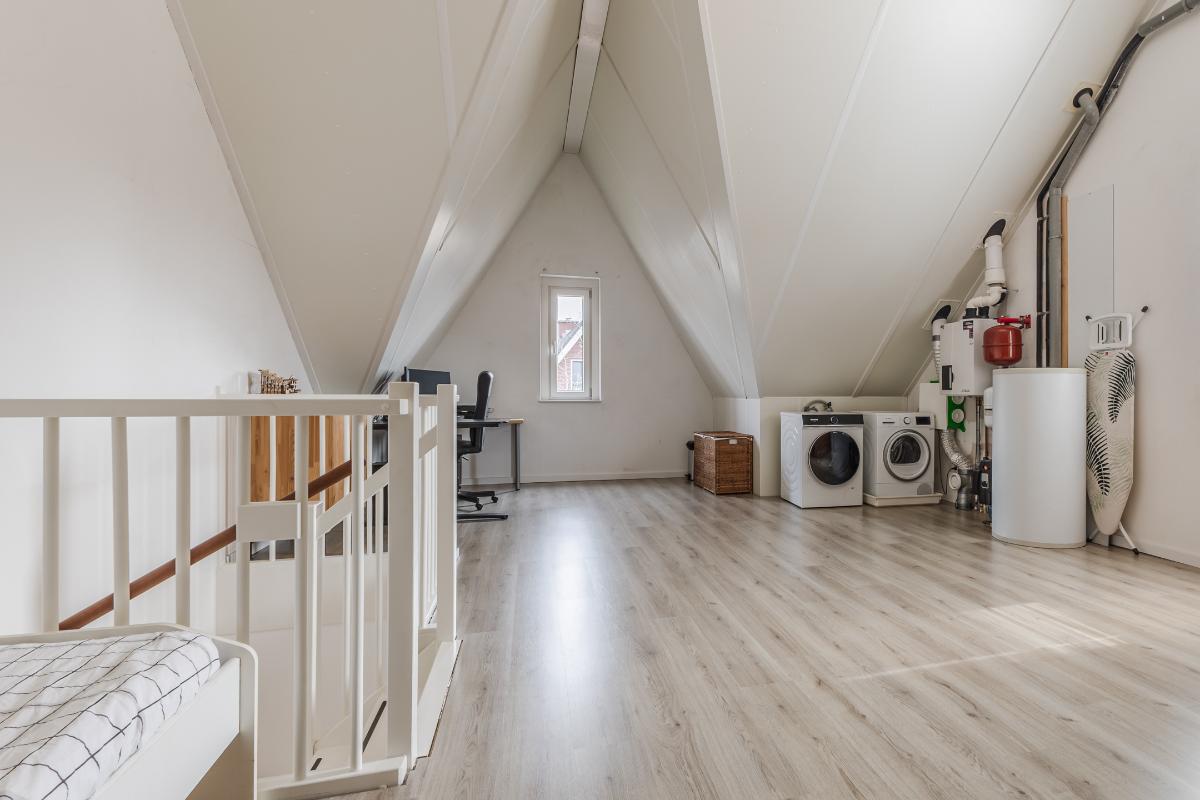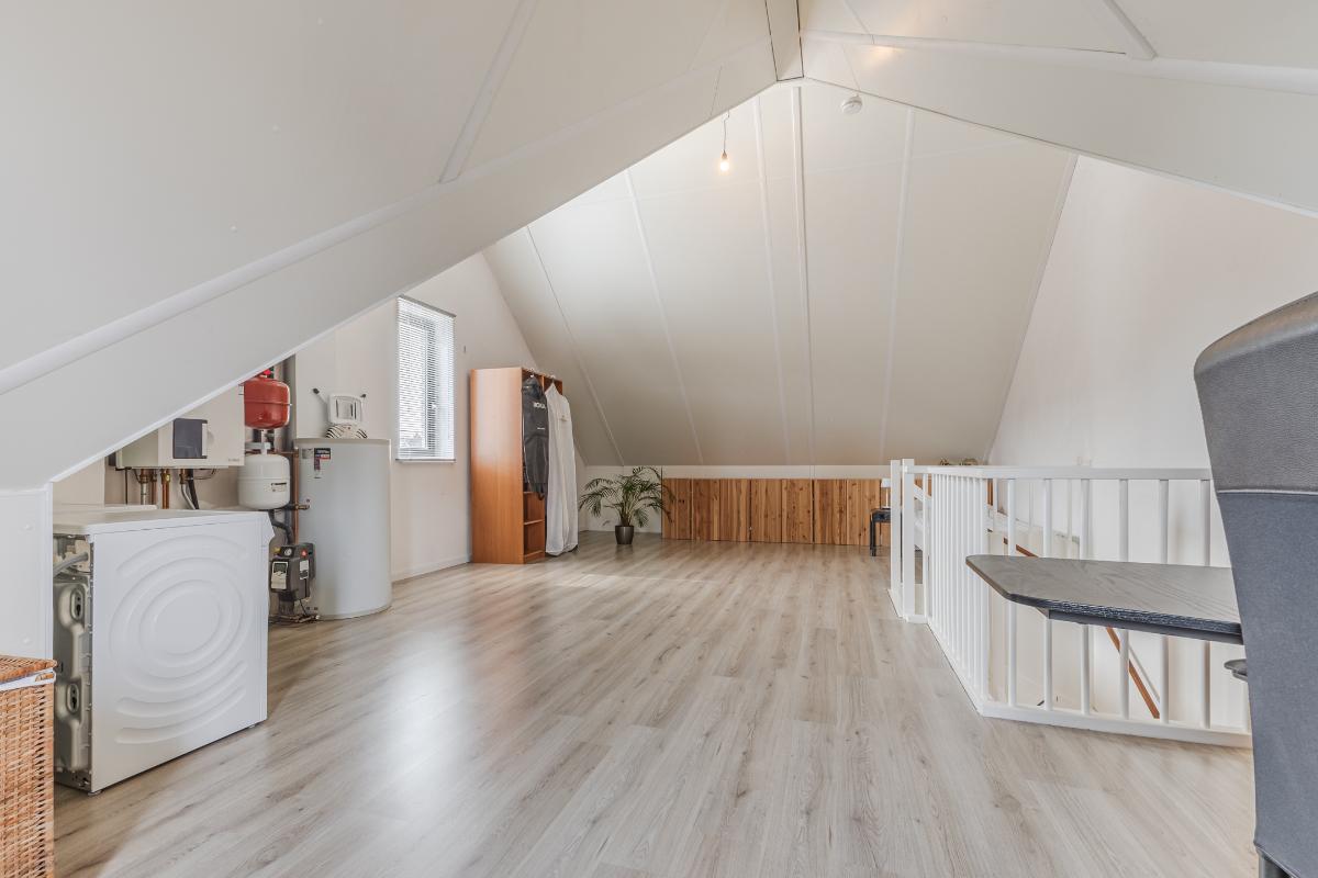 2e verdieping: Middels vaste trap te bereiken grote zolderruimte. Door de hoge kap van de woning bevindt zich hier maar liefst 40m² aan extra woonoppervlakte die naar wens is in te delen in verschillende kamers. Daarnaast bevinden zich hier de aansluiting voor de wasmachine en de opstelling van de c.v.-combiketel.