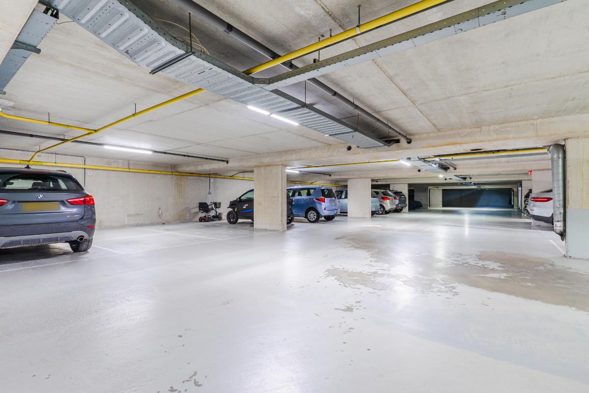 Parkeergarage (souterrain): Op afstand bedienbare toegangsdeur naar parkeergarage met vaste eigen parkeerplaats en eigen berging. Toegang tot de lift.