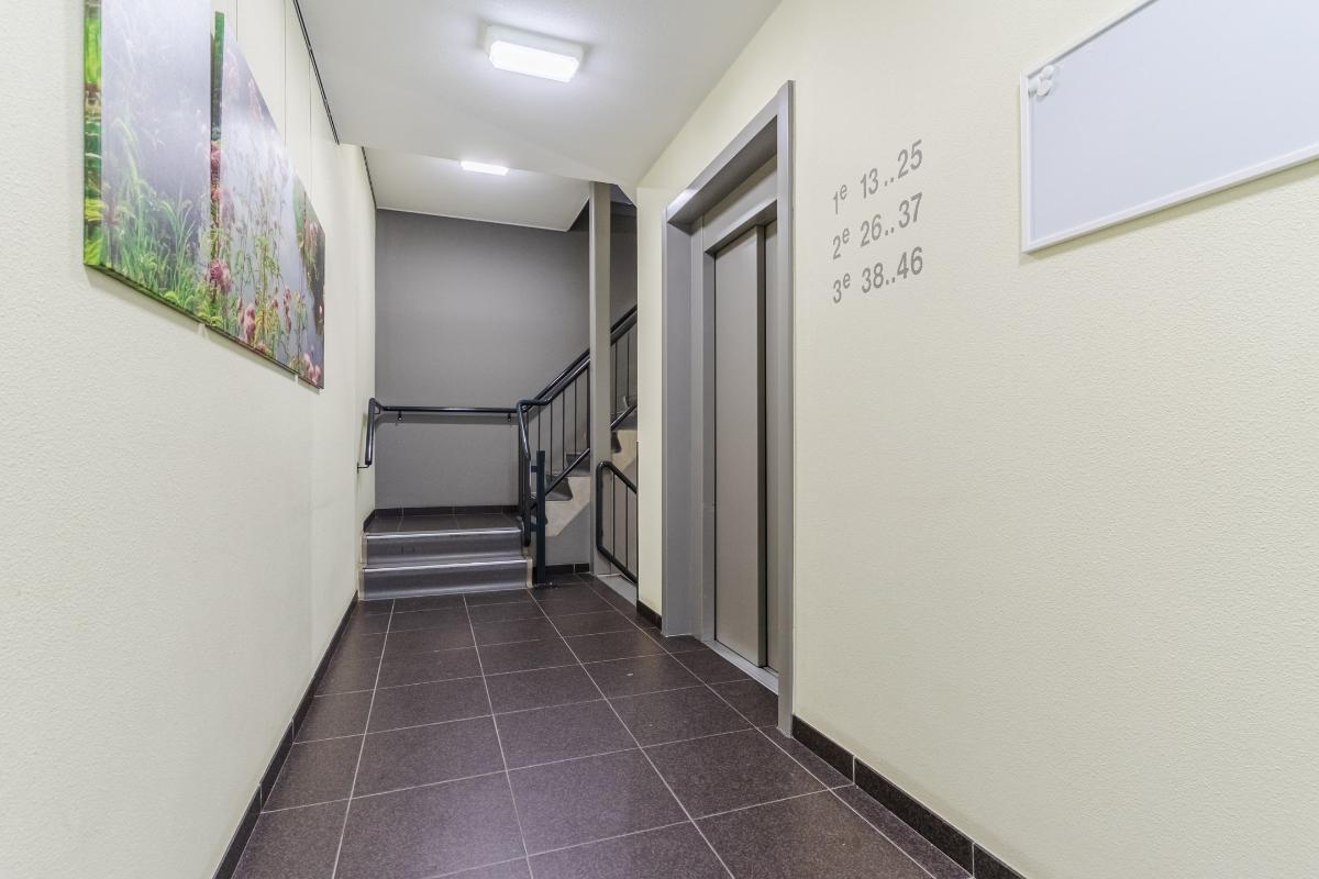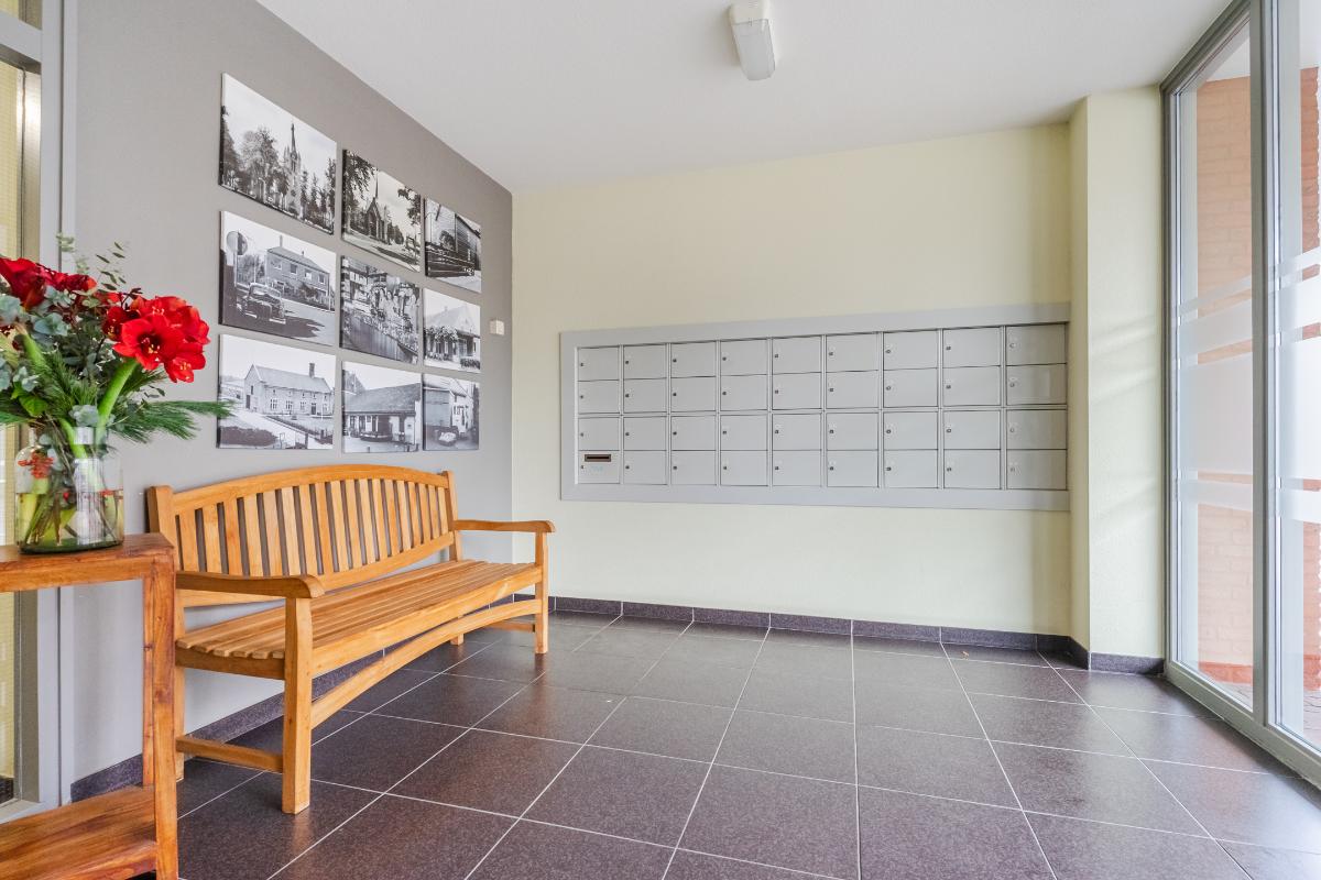 Begane grond: Centrale entree met videofoon-installatie en brievenbussen. Representatieve hal met lift en trappenhuis naar het op de 2e verdieping (aan een overdekte galerij) gelegen appartement.