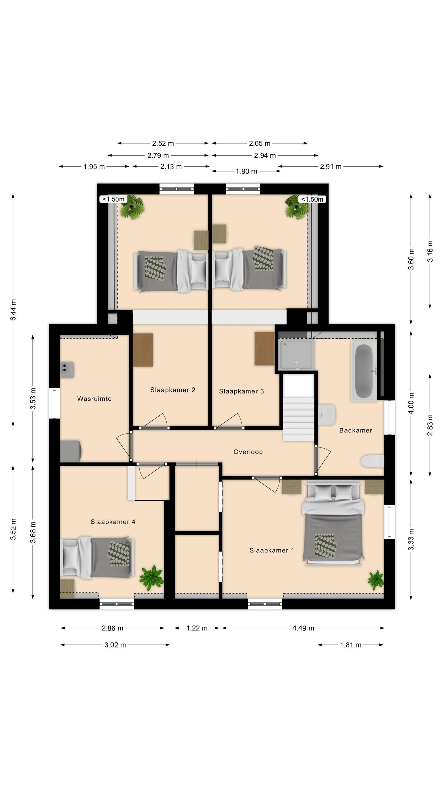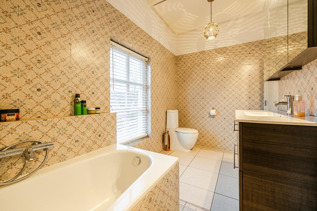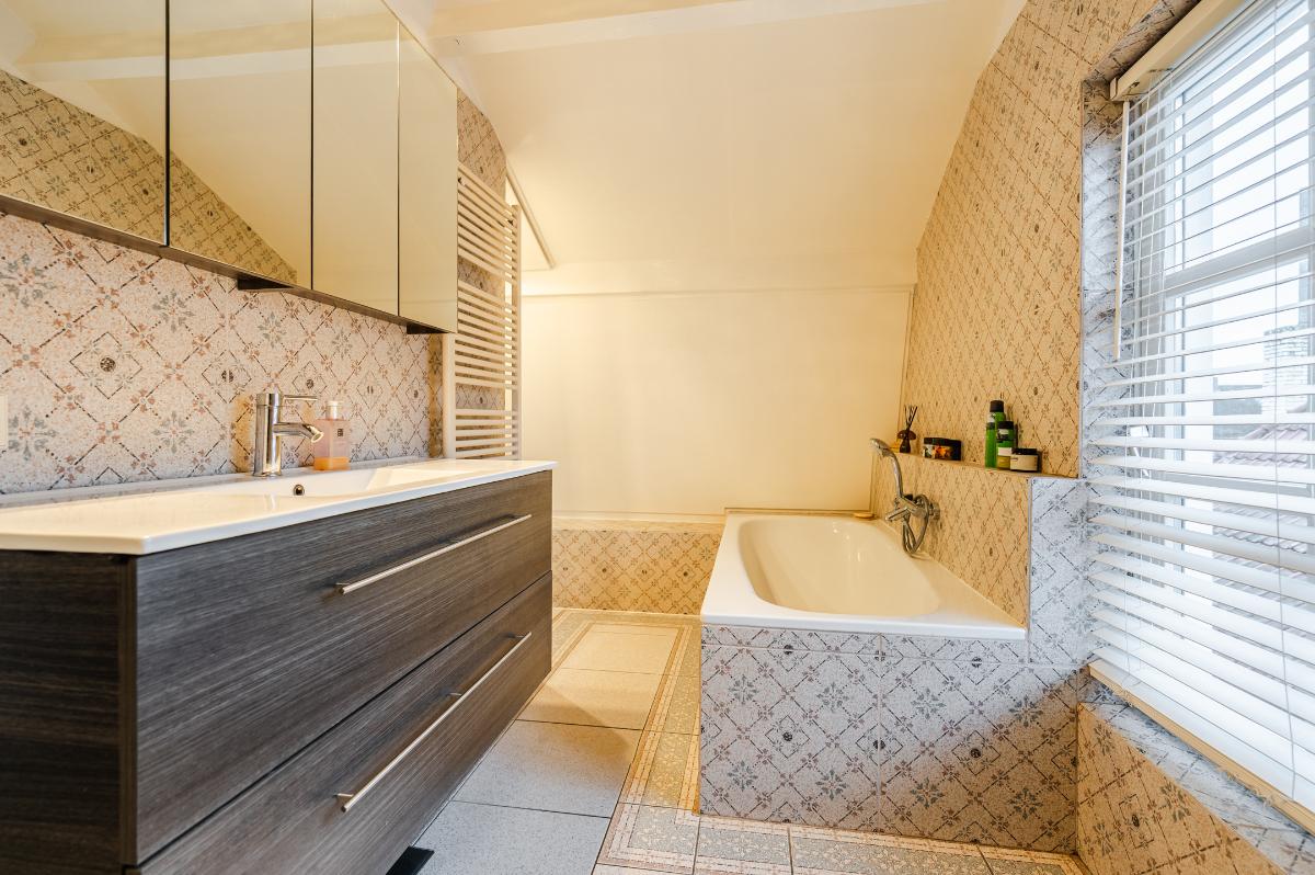 1e verdieping: Via de opkamer kom je op de overloop. Hieraan bevinden zich 4 grote slaapkamers, een praktische waskamer en de badkamer. De behaaglijke badkamer is warm ingericht met een ligbad, inloopdouche, een badmeubel met wastafel en een 2e toilet. De slaapkamers zijn voorzien van airconditioning.
