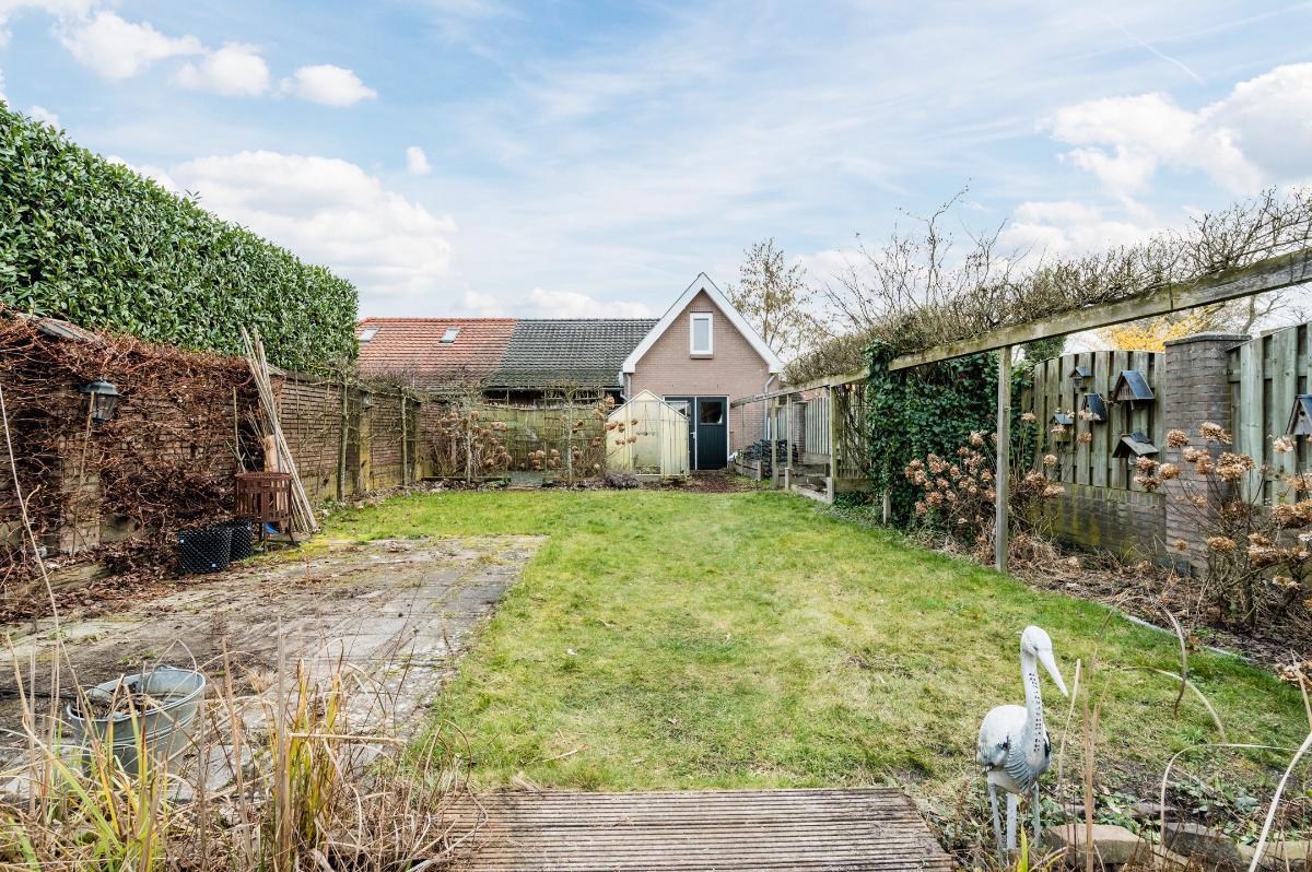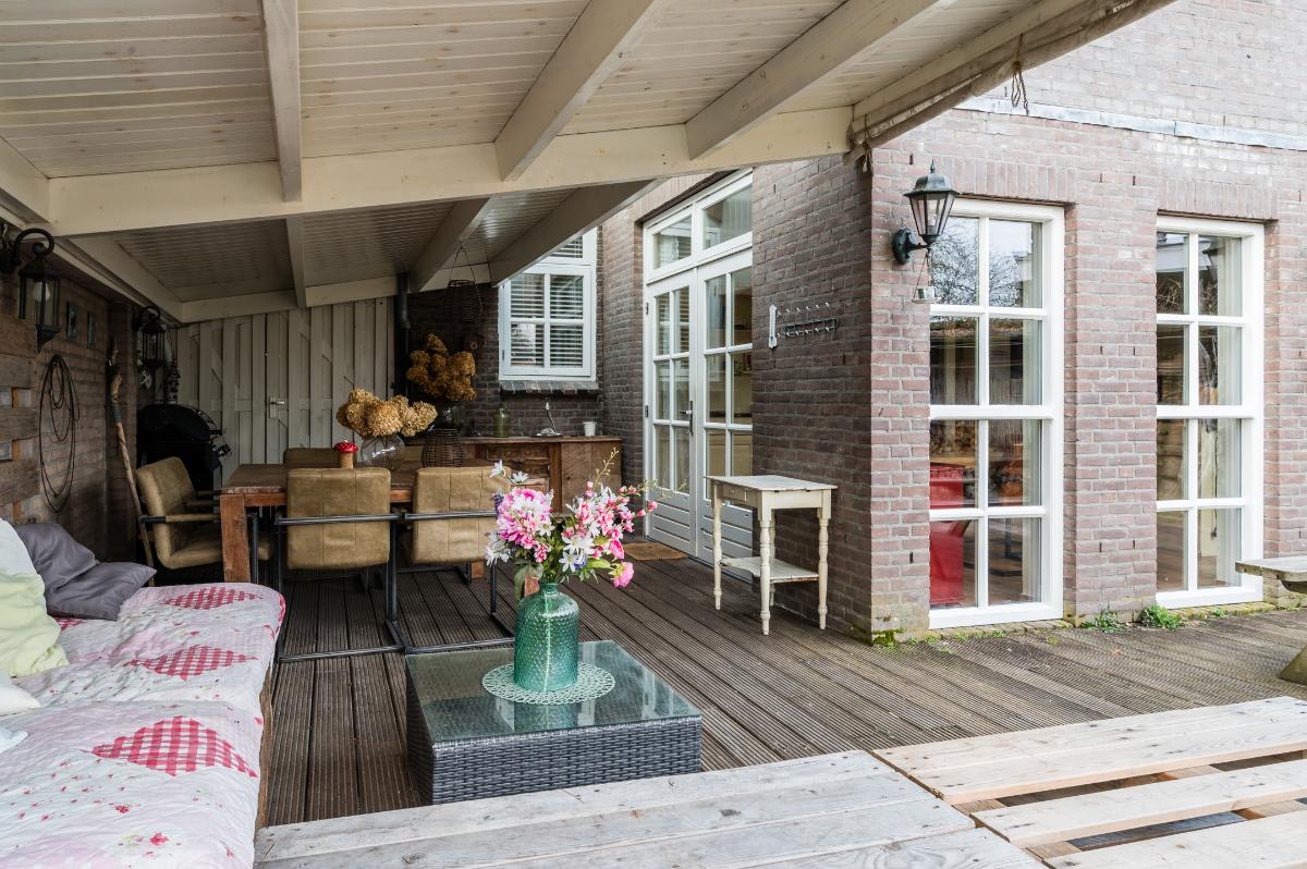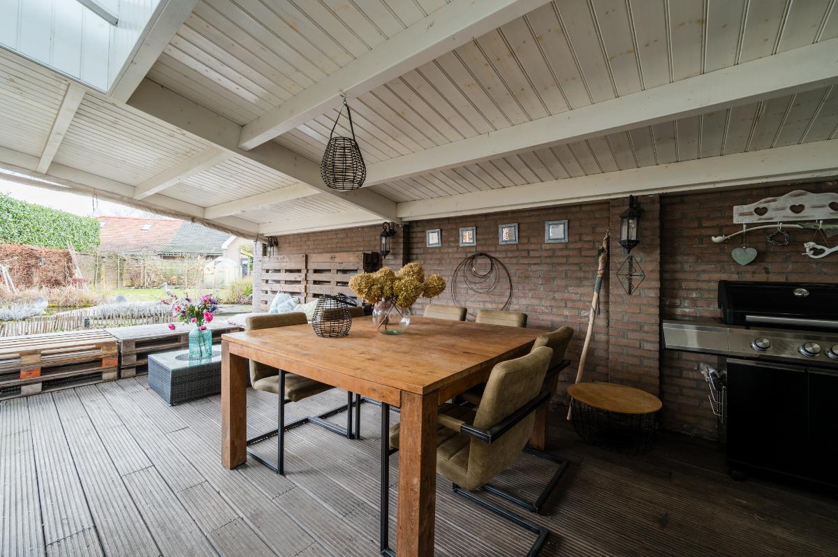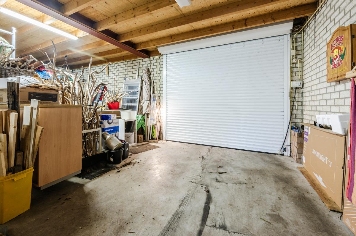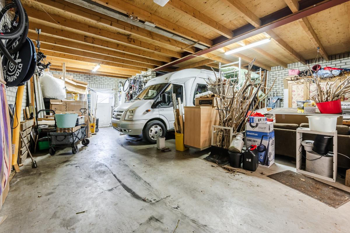 Buiten: Naast de woning bevindt zich een oprit met parkeerruimte voor wel 3 auto's en hier is ook een achterom. Achter de woning, direct aan het huis, is een aangenaam overdekt terras gerealiseerd met lichtstraat, houten vlonders en toegang tot een extra bergruimte. De diepe achtertuin biedt veel vrijheid en is ingericht met een vijver, gazon en diverse plantenborders. Achter op het perceel staat de meer dan grote, geïsoleerde garage. Deze multifunctionele ruimte meet maar liefst 71m² en is tevens een perfecte hobby of werkruimte. Ook je caravan of camper kan er prima gestald worden. De garage is via de achterzijde (Germstraat) bereikbaar. Daar bevinden zich ook nog enkele parkeerplaatsen.