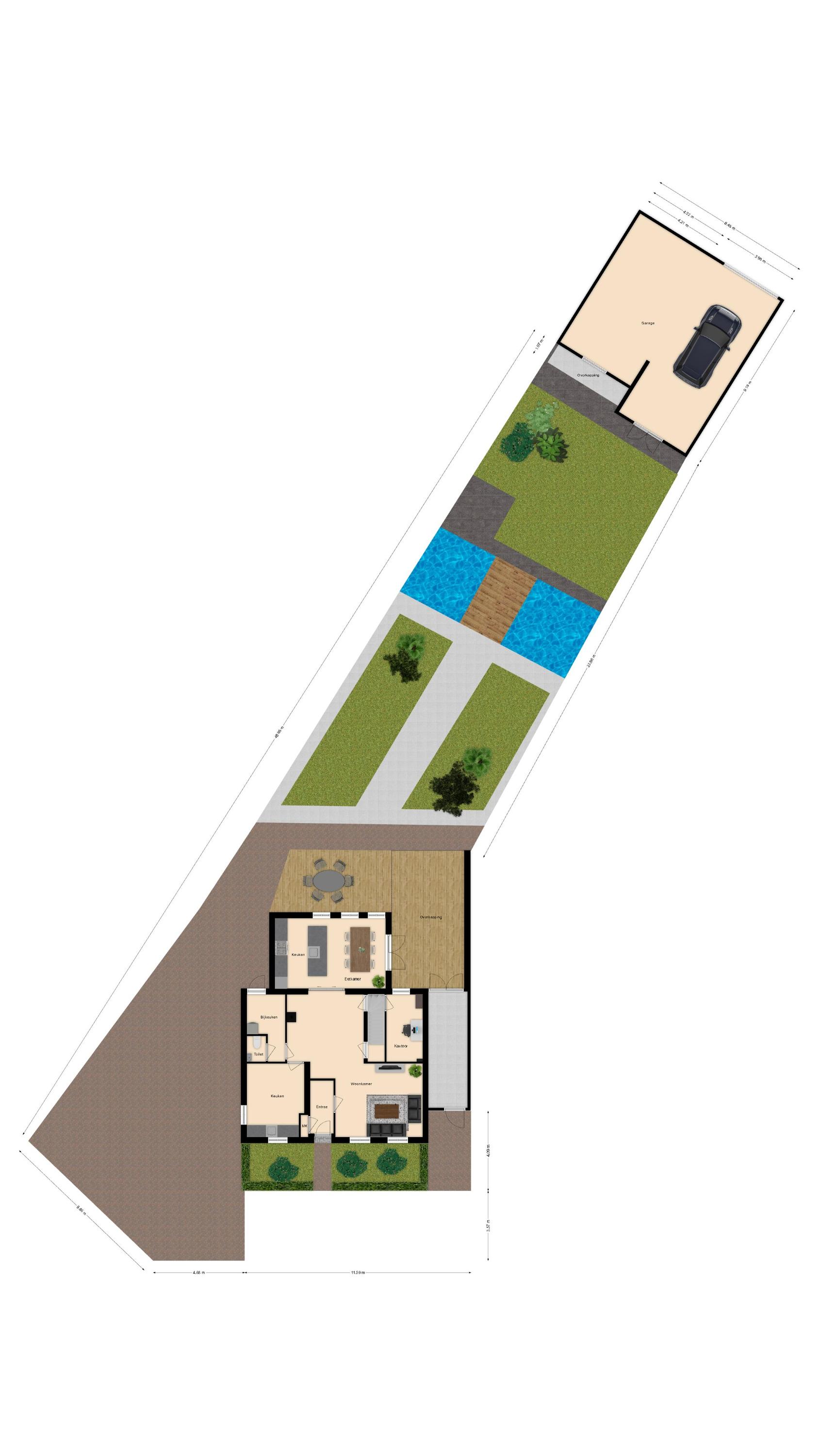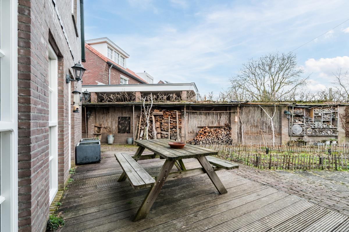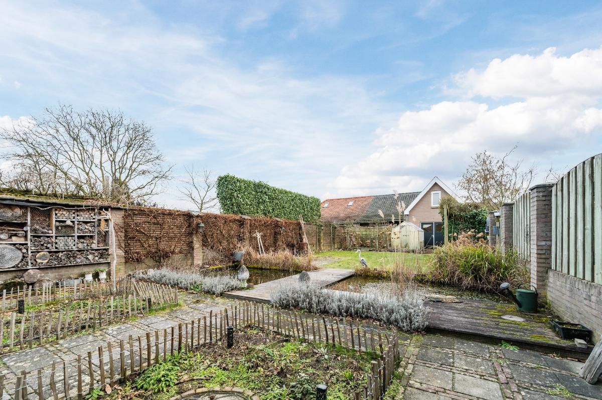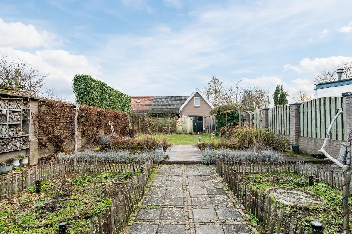 Buiten: Naast de woning bevindt zich een oprit met parkeerruimte voor wel 3 auto's en hier is ook een achterom. Achter de woning, direct aan het huis, is een aangenaam overdekt terras gerealiseerd met lichtstraat, houten vlonders en toegang tot een extra bergruimte. De diepe achtertuin biedt veel vrijheid en is ingericht met een vijver, gazon en diverse plantenborders. Achter op het perceel staat de meer dan grote, geïsoleerde garage. Deze multifunctionele ruimte meet maar liefst 71m² en is tevens een perfecte hobby of werkruimte. Ook je caravan of camper kan er prima gestald worden. De garage is via de achterzijde (Germstraat) bereikbaar. Daar bevinden zich ook nog enkele parkeerplaatsen.