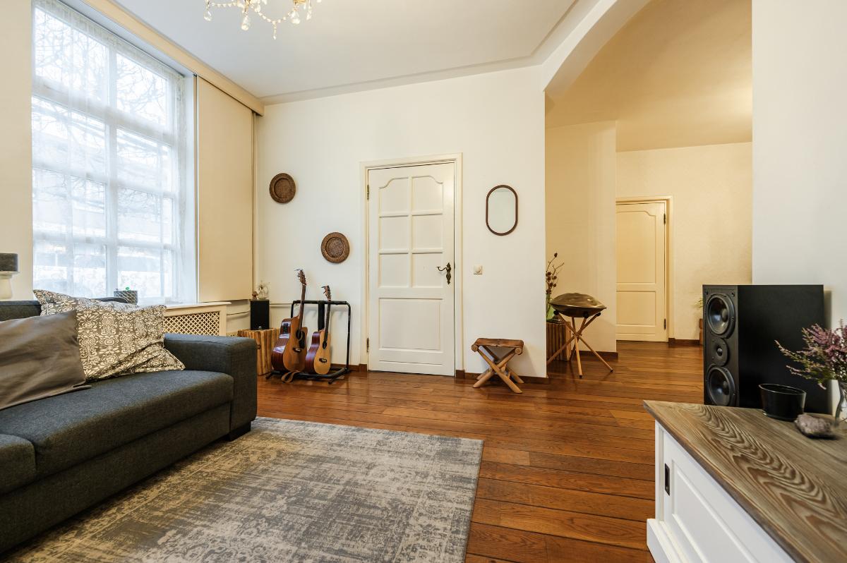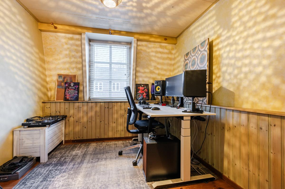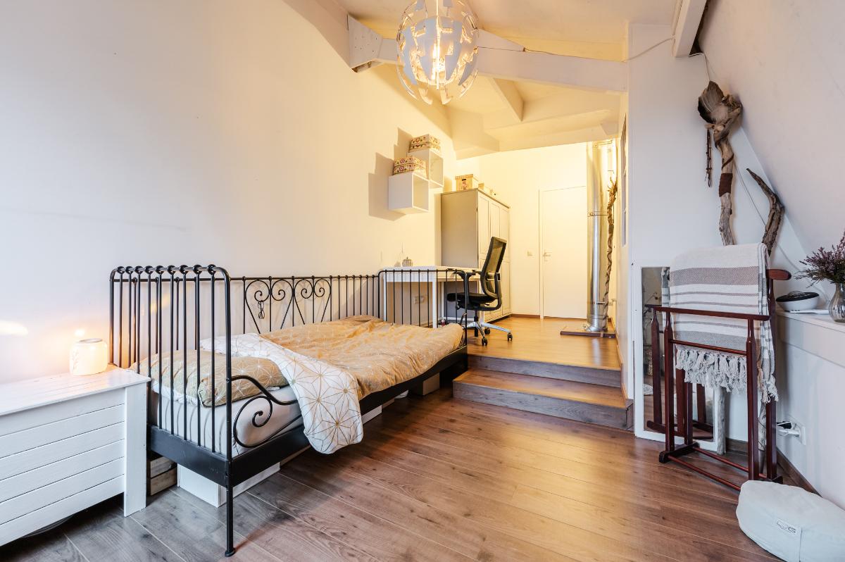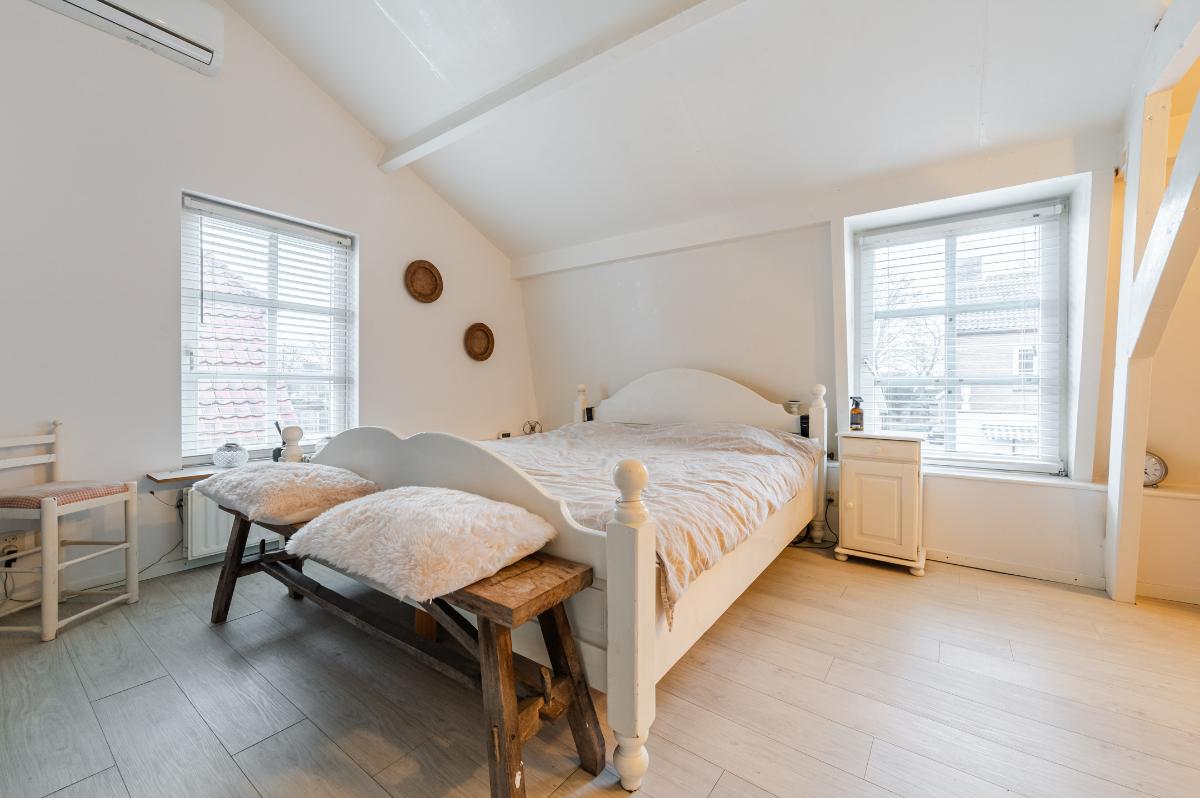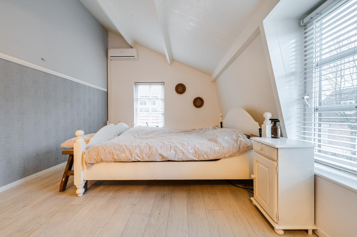Indeling: Begane grond: Entree naar ontvangsthal met meterkast. Z-vormige woonkamer met houten vloer, stucwerk met sierlijsten en sfeervolle houtkachel. Toegang tot de opkamer, een praktische kelder en de bijkeuken waar ook het toilet te vinden is. Aan de voorzijde bevindt zich de voormalige keuken, super handig als extra ruimte voor de kookliefhebber maar ook eenvoudig om te vormen naar bijvoorbeeld een speelkamer voor de kinderen of werkkamer aan huis. De huidige keuken bevindt zich in de aanbouw aan de achterzijde en is van de woonkamer gescheiden door karakteristieke glas-in-lood en-suite schuifdeuren. De keuken biedt ruimte voor een grote eettafel en heeft een prettige oriëntatie op de tuin. De inrichting is landelijk met centraal een spoeleiland. Op de vloer ligt een boeren plavuizen tegelvloer met vloerverwarming en de apparatuur bestaat uit een vaatwasser, een koelkast en een groot fornuis met 6-pits gaskookplaat, oven en afzuigkap.