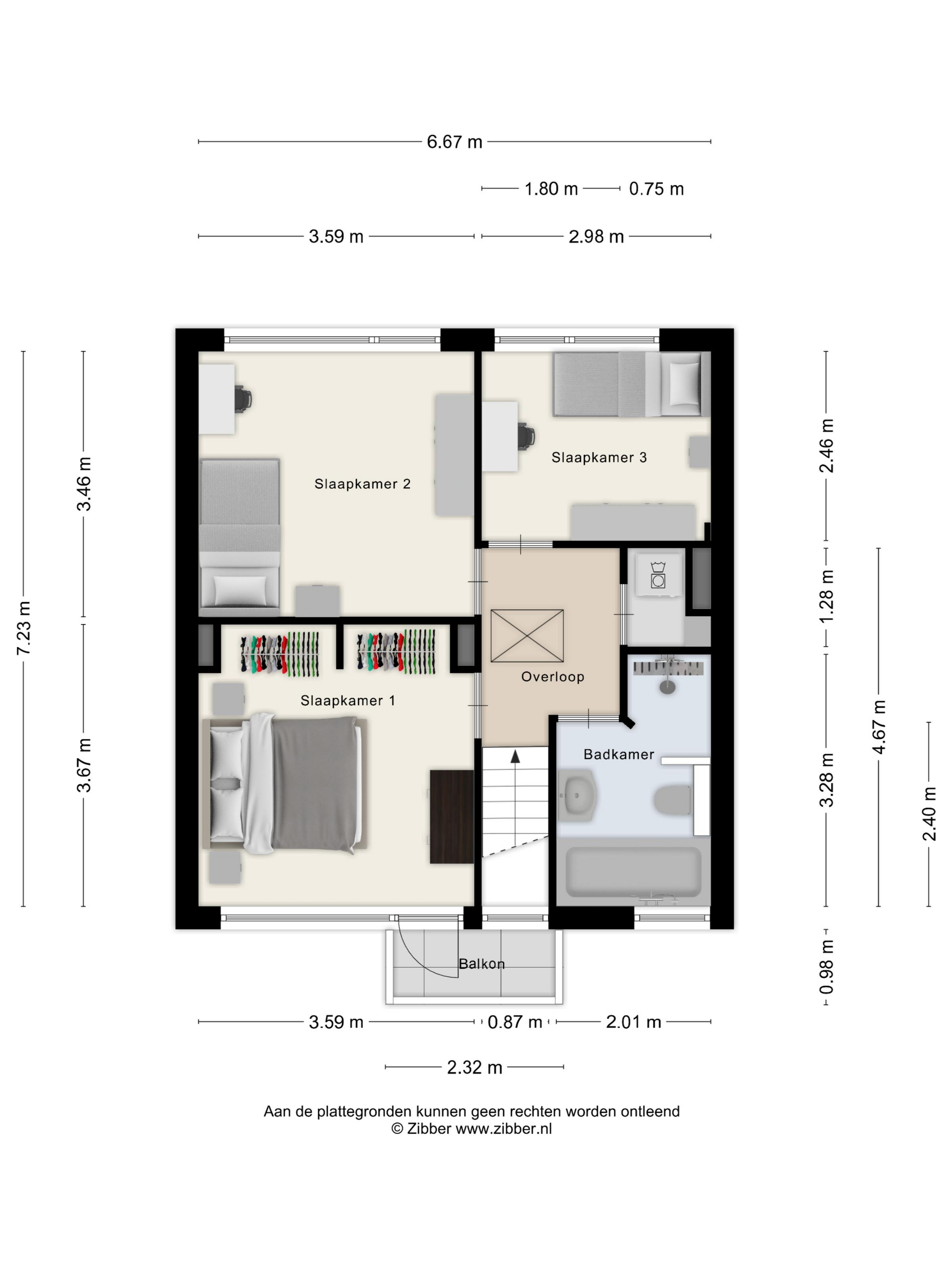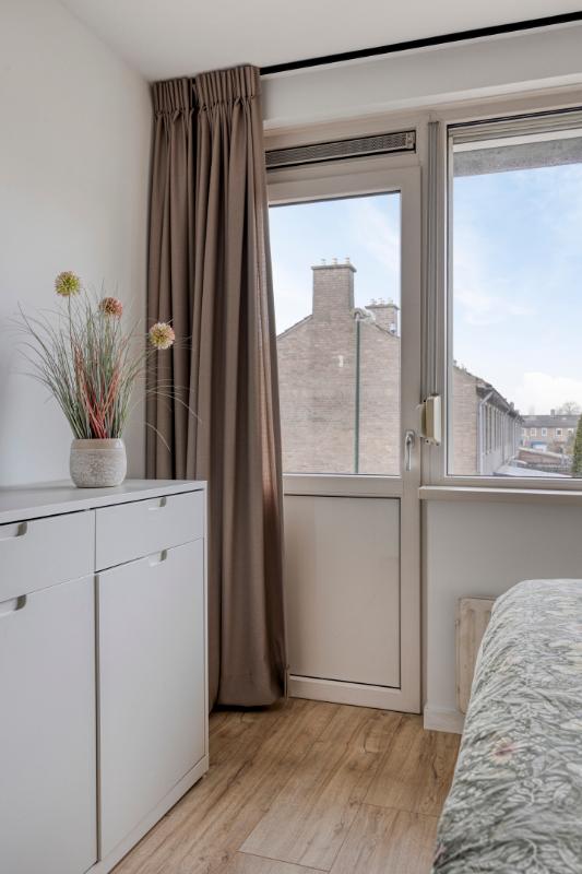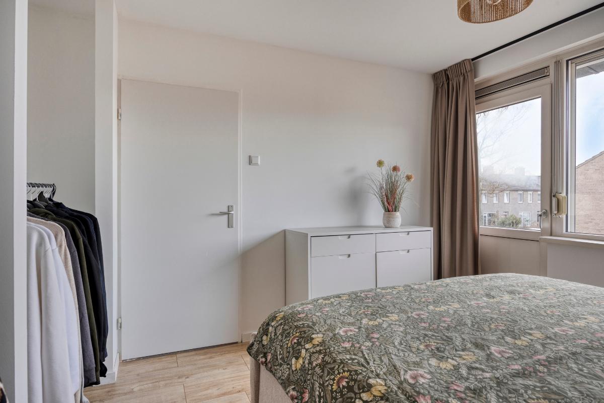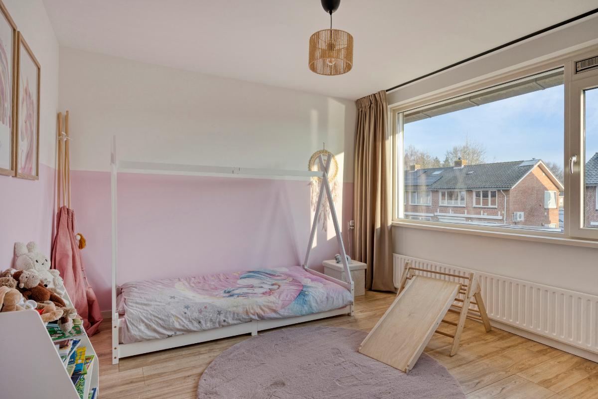 De 3 ruime slaapkamers zijn allen voorzien van laminaatvloeren en kunststof kozijnen met draai-/kiepramen en rolluiken, waarvan die op de achterkamers elektrisch bedienbaar. De ouderslaapkamer heeft 2 nissen, waarvan eenvoudig een vaste kastenwand zou kunnen worden gemaakt en een kunststof deur naar het kleine balkon aan de voorzijde.