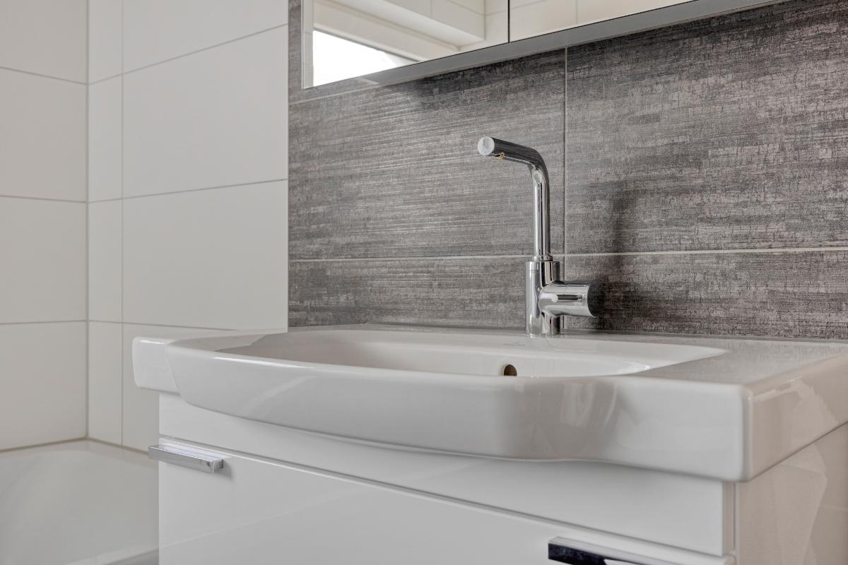 De separate wasruimte is volledig betegeld en voorzien van aansluitingen voor wasapparatuur.
