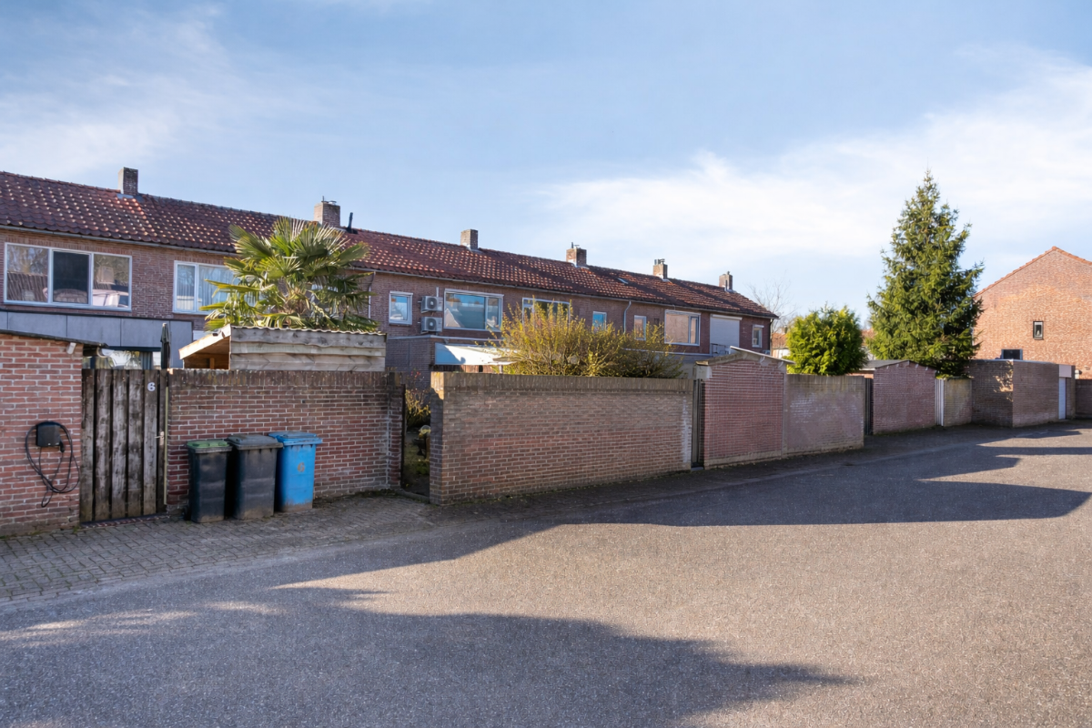 ALGEMEEN: • Het betreft hier een traditioneel gebouwd en in 1975 aan de achterzijde uitgebouwd woonhuis, met in spouw opgetrokken gevels, een betonnen begane grond- en verdiepingsvloer, een houten zoldervloer en een houten, beschoten zadeldak, alsmede een houten en geïsoleerd platdak t.p.v. de uitbouw. • De buitendeuren, -kozijnen en ramen zijn uitgevoerd in hout, met t.p.v. de woonkamer en keuken dubbel glas. • Bij het opstellen van het energielabel is geen rekening gehouden met de dakisolatie t.p.v. de uitbouw. • Koper dient rekening te houden met bijkomende kosten voor het opknappen, moderniseren en het verduurzamen van deze woning. • Deze woning zal worden verkocht met een zgn. ‘ouderdoms-‘ en een ‘as is where is ‘-clausule. • Er bestaat de mogelijkheid tot het bijkopen van een garagebox (van ± 3.74 x 5,65 m.) op het achtergelegen binnenterrein. Deze garage is voorzien van een stalen kanteldeur en een betonvloer en is NIET inbegrepen in de vraagprijs voor de woning met berging.