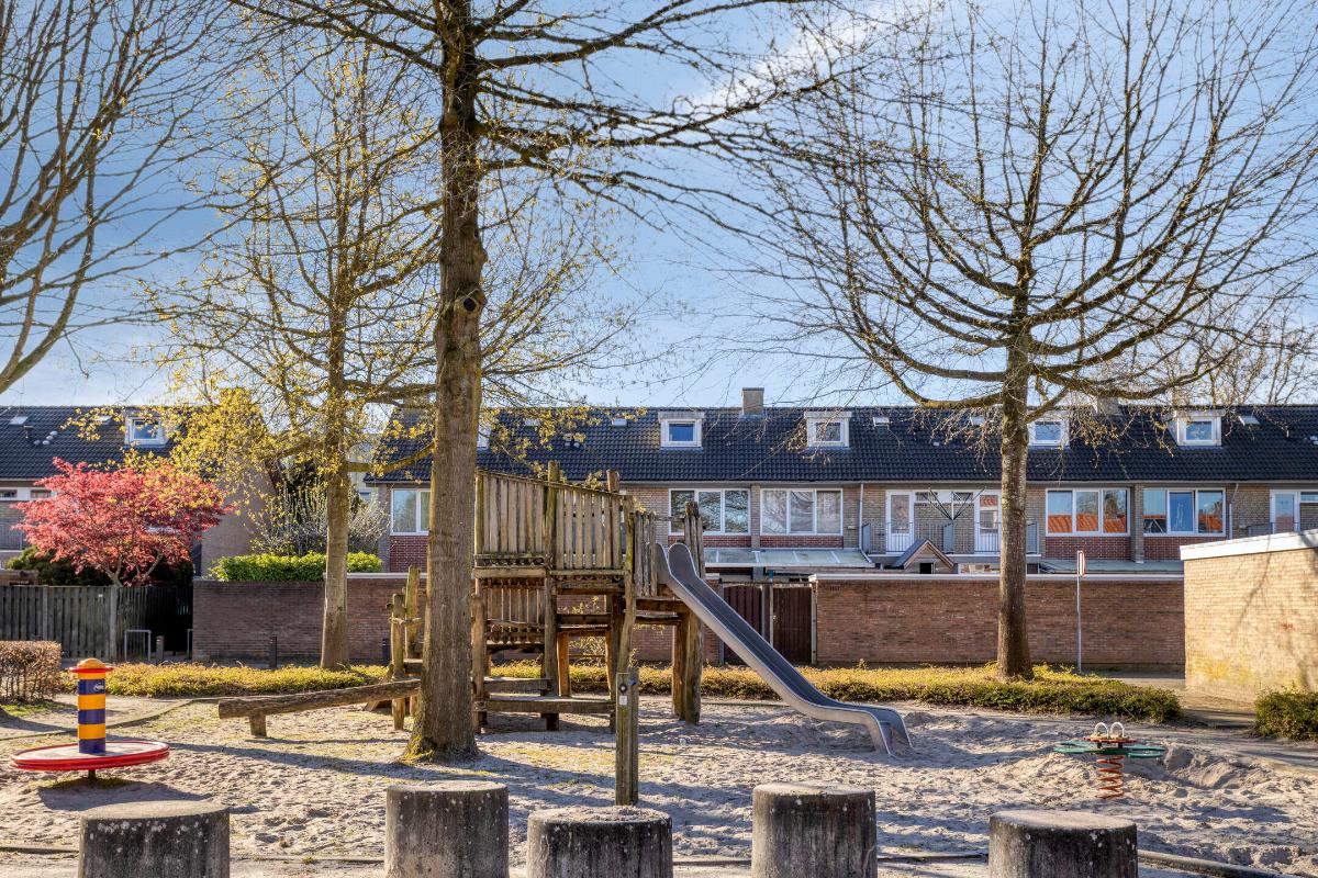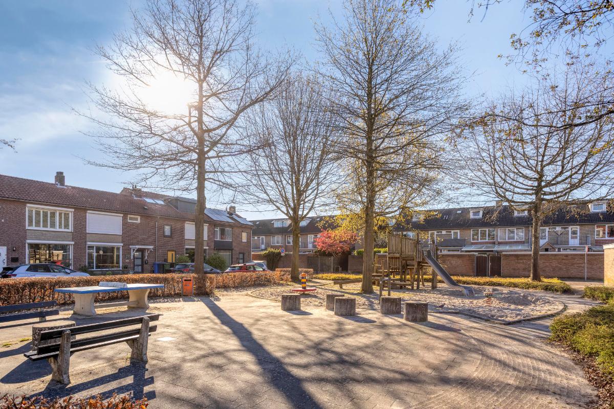 E.e.a. is gunstig gelegen op een rustige woonlocatie, aan een verkeersluwe woonstraat met vooral bestemmingsverkeer, voldoende parkeergelegenheid en een speeltuintje voor de kinderen en met het ‘Park Vogelzang’ om de hoek. Op korte loopafstand bevinden zich het wijkwinkelcentrum ‘Mira’ en de ‘MFA Midden’ met basisschool en kinderopvang. Het City Centrum en de dorpskern van Oud-Veldhoven met al hun winkels, horecagelegenheden en overige voorzieningen zijn eveneens op korte (fiets)afstand gelegen, evenals bedrijventerrein ‘De Run’ (met o.a. het MMC en ASML) en het ‘Sondervick College’ voor Voortgezet Onderwijs. Daarnaast zijn de belangrijke uitvalswegen (A2/N2/A67) naar en rondom Eindhoven binnen enkele autominuten te bereiken.