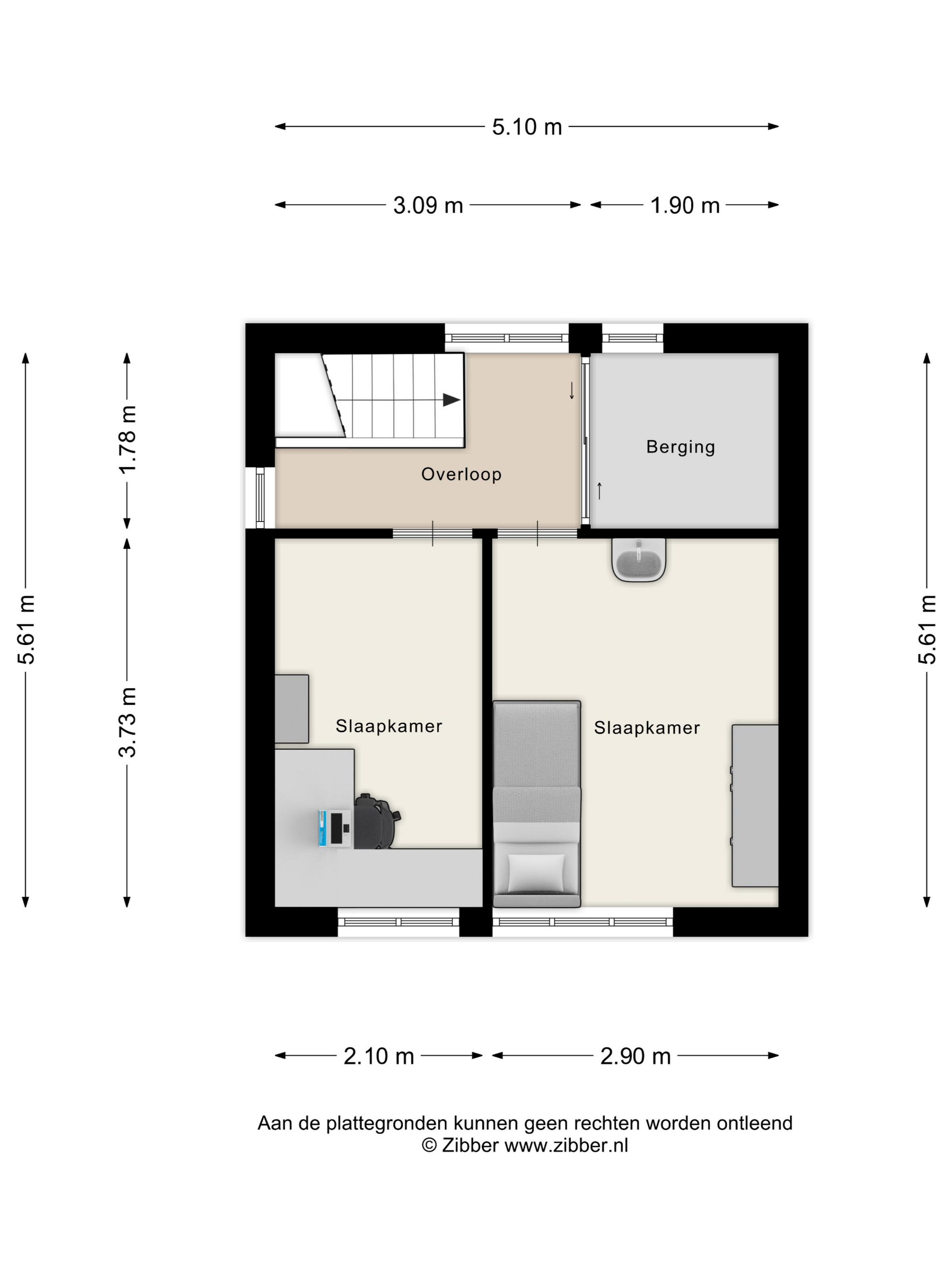 OVERLOOP: Lichte overloop voorzien van laminaat, toegang tot de 2 slaapkamers en bergruimte.