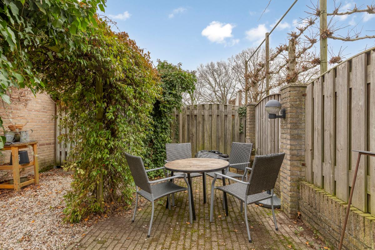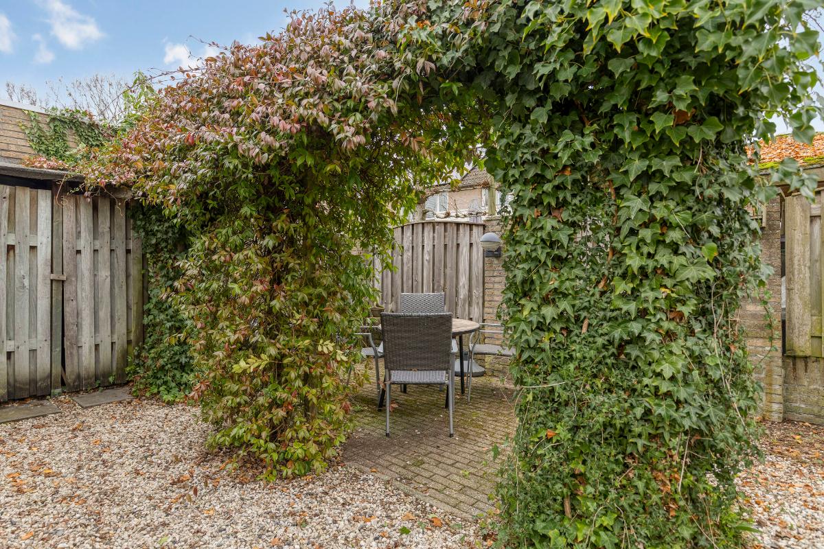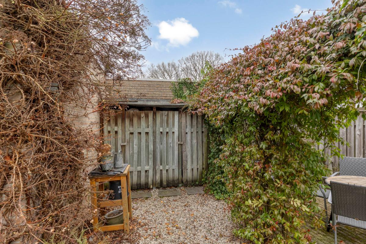 TUIN: Aangelegde grotendeels bestrate onderhoudsvriendelijke achtertuin met diverse borders en plantenbakken gesitueerd op het noordoosten. Overdekt terras (overkapping) en poort naar achterom. Kleine houten berging aan de zijkant van de tuin.