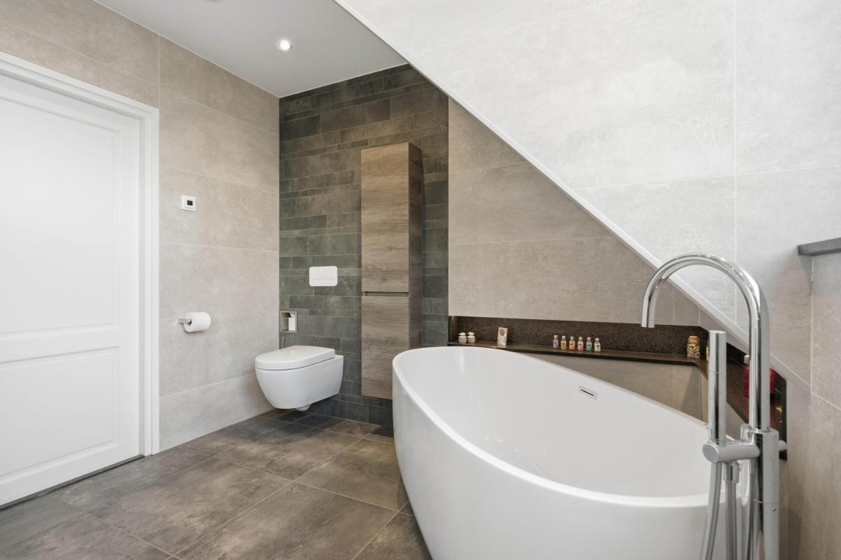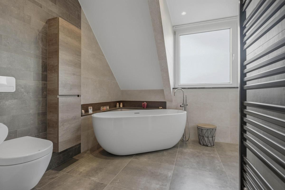 Royale overloop, vier ruime slaapkamers, luxe badkamer (2018) met: vrijstaand ligbad, inloopdouche, hangend closet, wastafelmeubel, vloerverwarming. Zeer moderne en hoogwaardige afwerking.