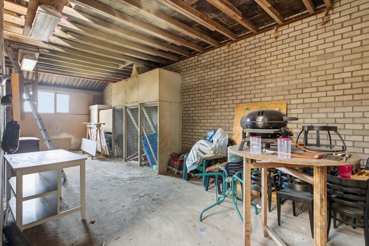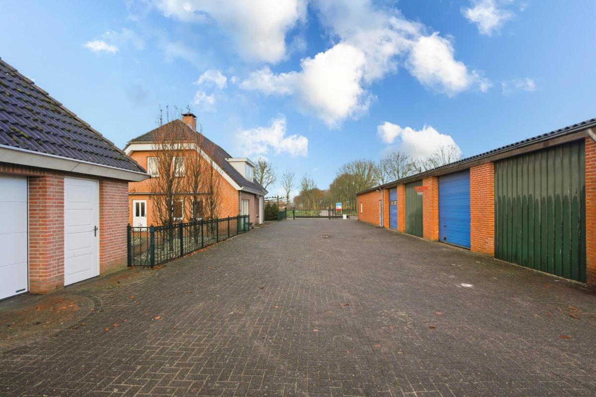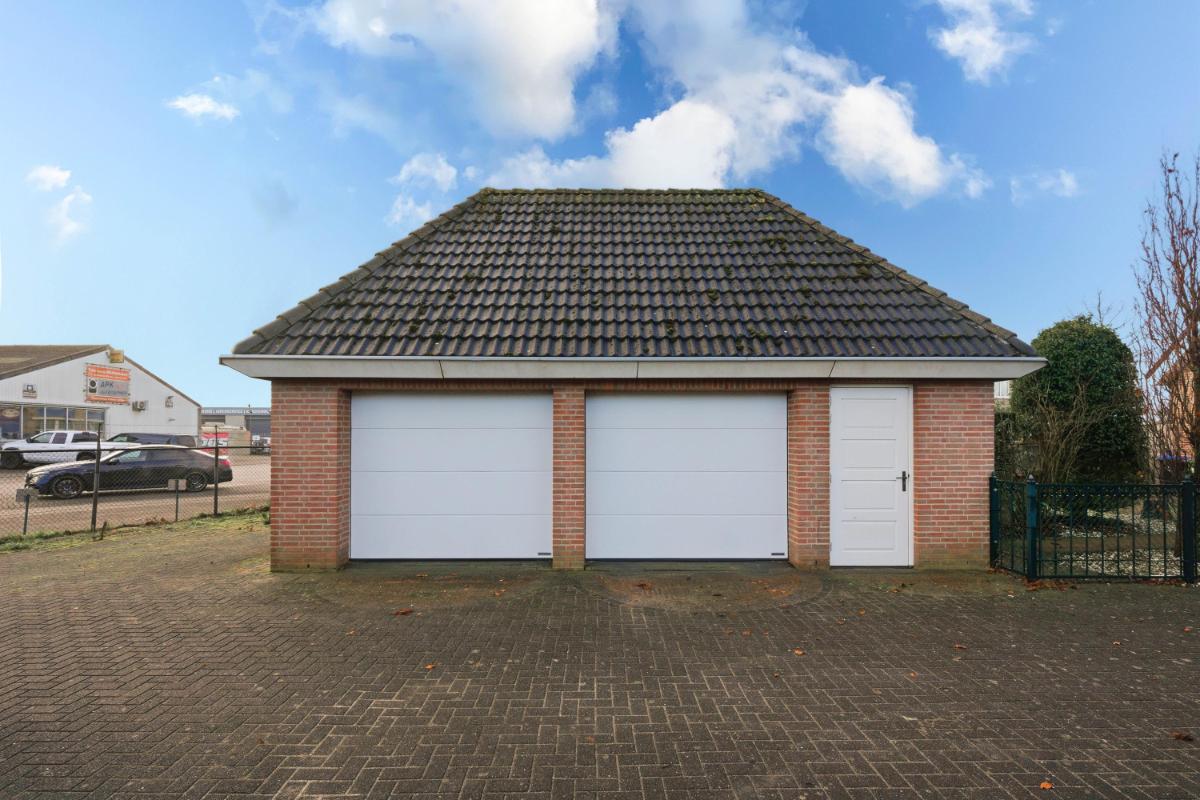 De vrijstaande dubbele garage is gebouwd in 2000 en beschikt over een zolderverdieping, bereikbaar via een vaste trap. Ideaal voor opslag, hobbyruimte of aanvullende werkruimte.