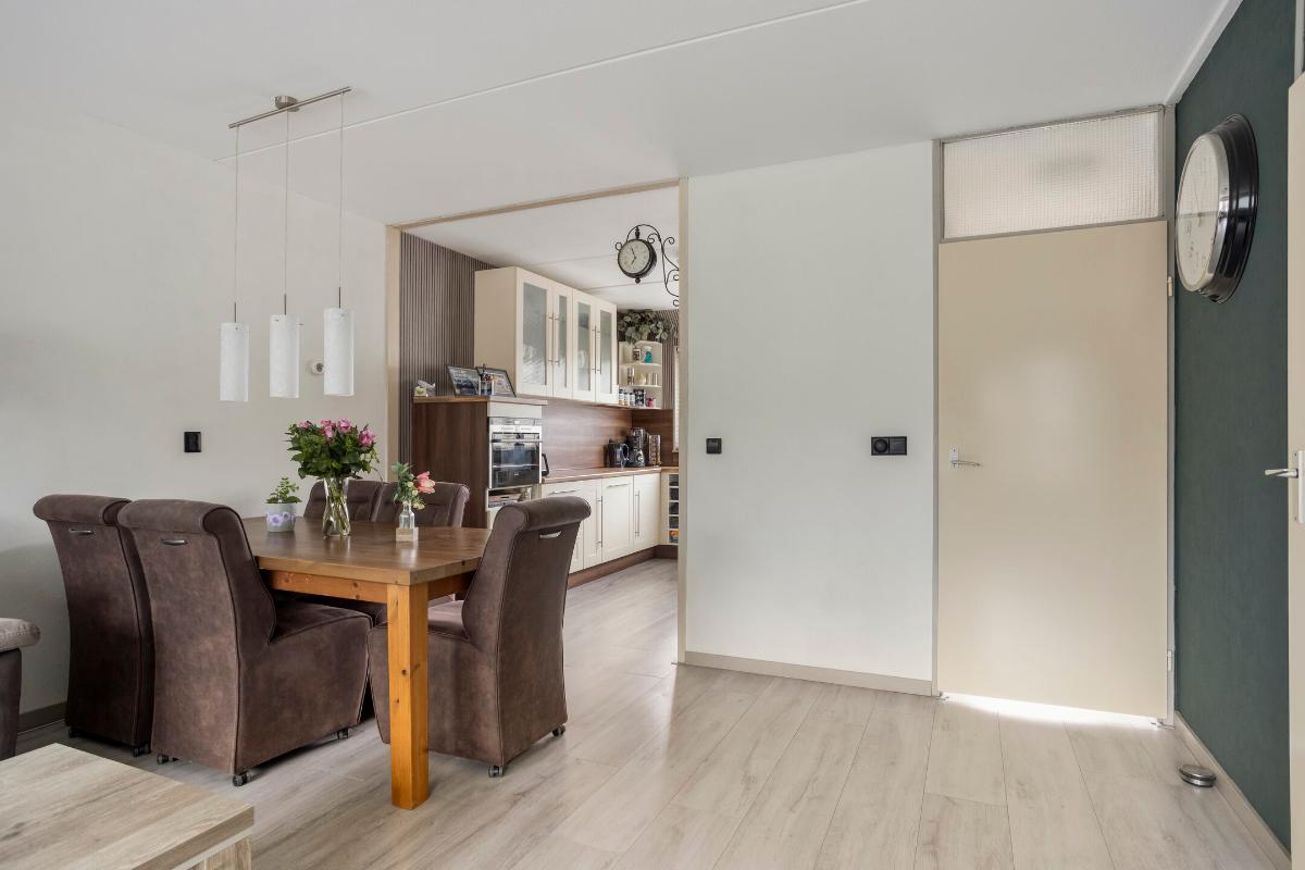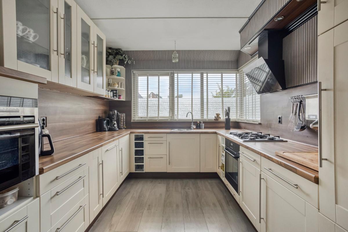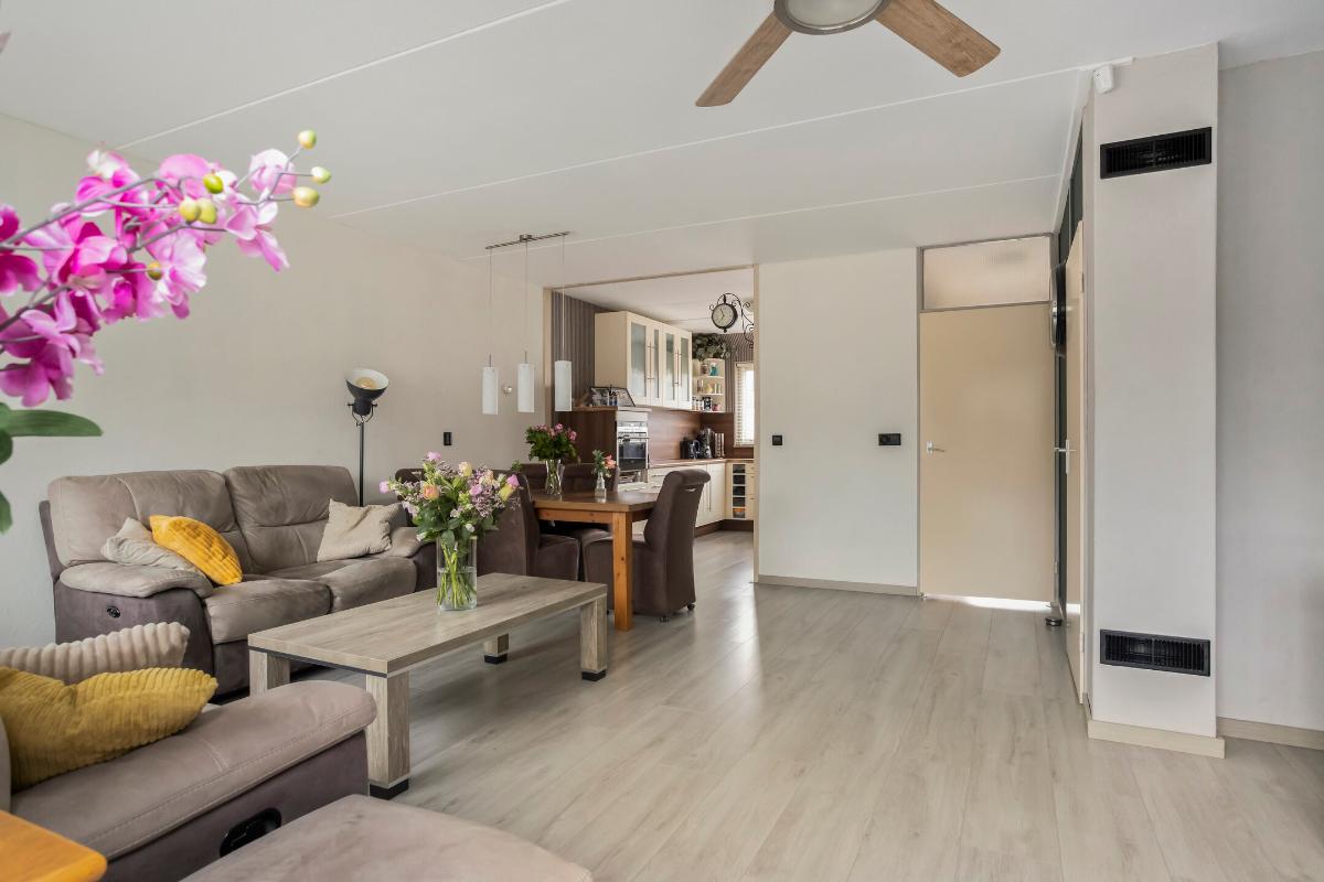 Bij binnenkomst valt direct de woonkamer op, die door de open keuken aan de voorzijde en de hoogwaardige serre van circa 18 m² een warme en royale leefruimte vormt. Dankzij de serre is er een fijne overgang naar de tuin, waardoor binnen en buiten mooi in elkaar overlopen. De keuken is voorzien van diverse inbouwapparatuur, wat koken hier tot een plezierige bezigheid maakt.