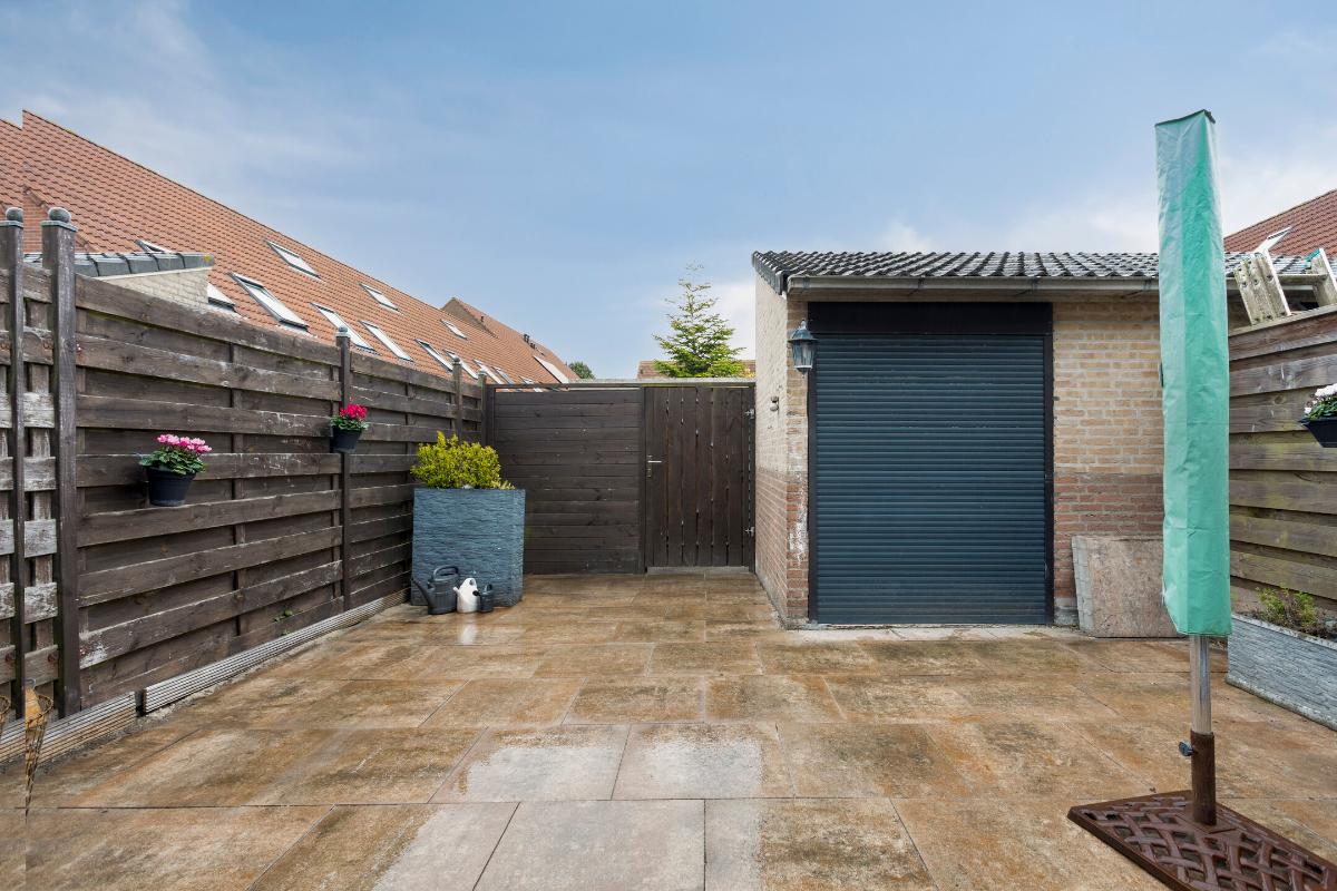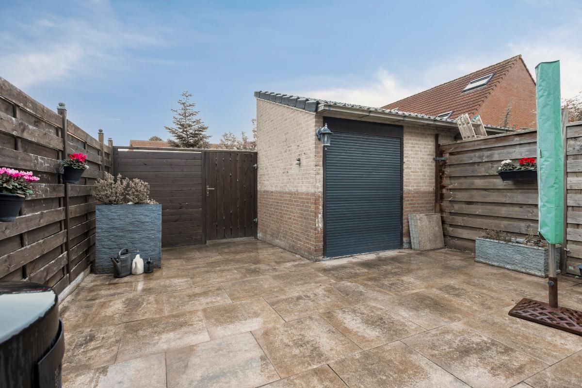 In de achtertuin staat een vrijstaande stenen schuur v.v. elektra en rolluik.