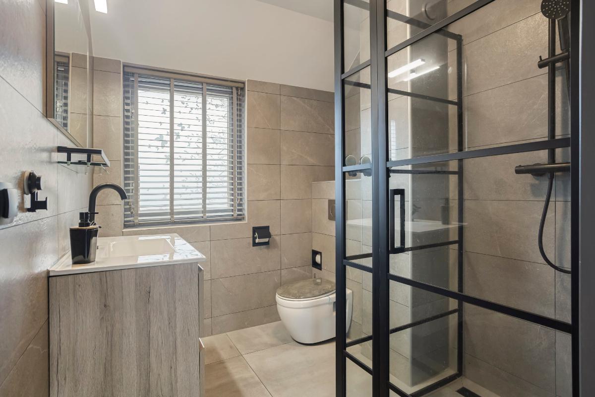 Eerste verdieping: overloop, drie slaapkamers en een badkamer (2022) v.v. toilet, douchehoek en wastafel met meubel.