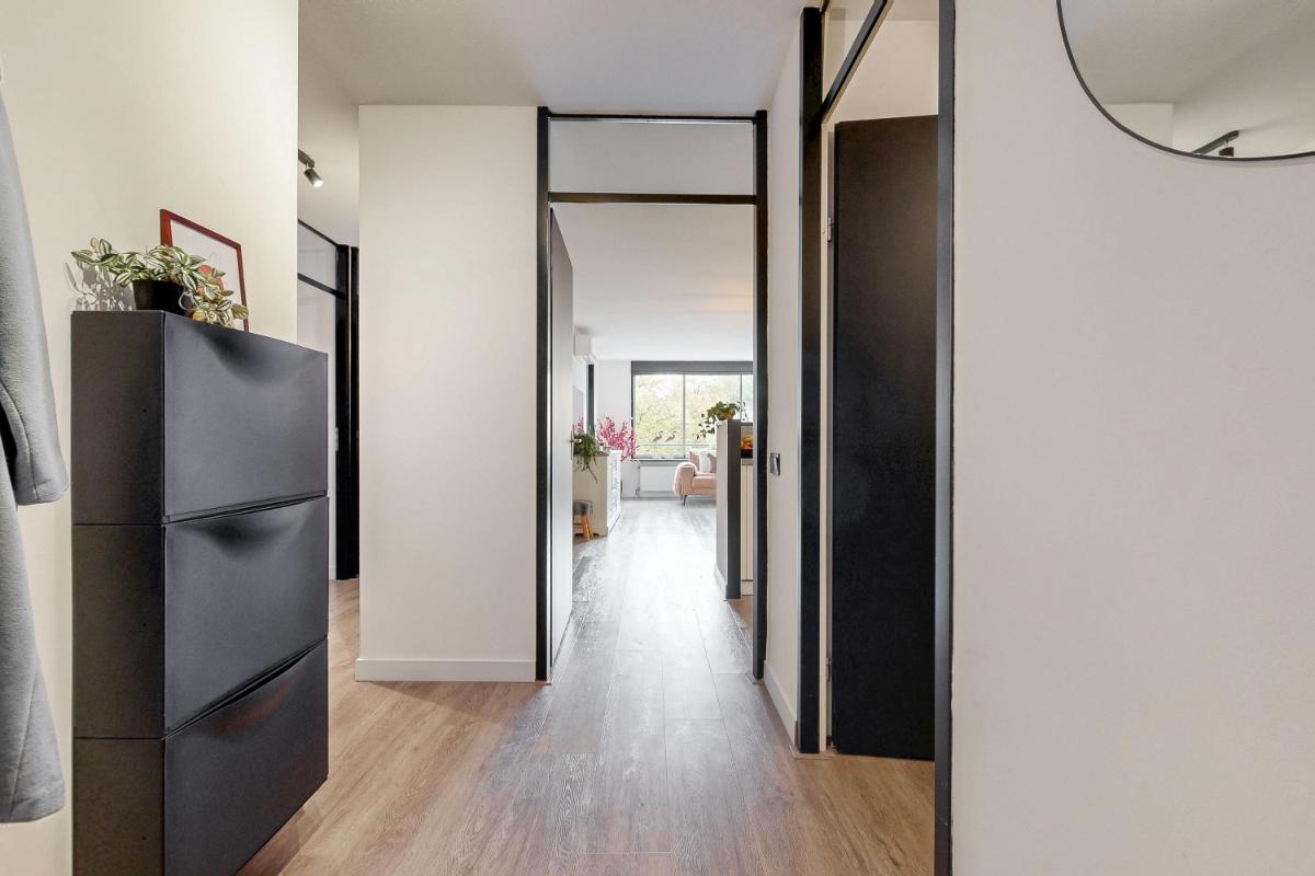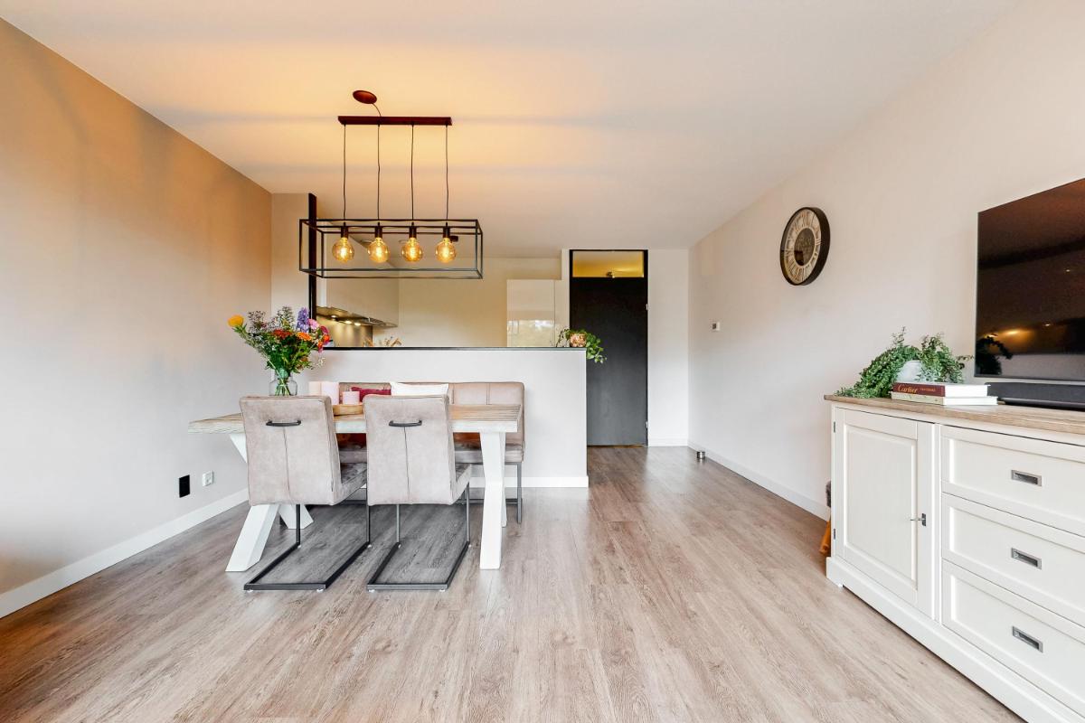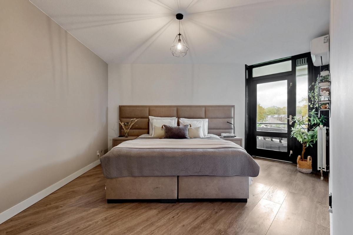 De woonkamer is heerlijk licht dankzij de grote ramen en kijkt uit over een vrij en groen uitzicht. De ruimte is ideaal voor een gezellige zithoek en een eettafel, met directe toegang tot het zonnige balkon op het zuidwesten. De moderne keuken, vernieuwd in 2018, is uitgevoerd in een praktische opstelling en uitgerust met inbouwapparatuur, waaronder een inductiekookplaat, afzuigkap, oven, vaatwasser en koel-vriescombinatie. De hoofdslaapkamer is royaal en licht, met voldoende ruimte voor een groot bed en geeft tevens toegang tot het balkon. Dankzij de airconditioning (2023) is het hier (en in de woonkamer) altijd aangenaam vertoeven. De tweede slaapkamer, die momenteel wordt gebruikt als kastenkamer, biedt de mogelijkheid om deze naar eigen wens in te richten. De badkamer, eveneens vernieuwd in 2018, is modern ingericht met een inloopdouche, wastafelmeubel en ligbad, afgewerkt met strakke tegels die zorgen voor een luxe uitstraling. Het balkon op het zuidwesten is een heerlijke plek om te ontspannen en te genieten van de middag- en avondzon, met een vrij uitzicht dat een gevoel van ruimte creëert.