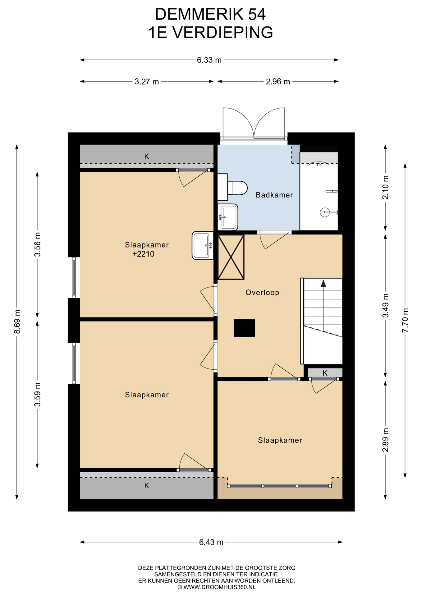 Op de eerste verdieping bevinden zich drie royale slaapkamers. Alle kamers zijn voorzien van handige inbouwkasten en één van de slaapkamers beschikt over een dakkapel. Op deze verdieping bevindt zich tevens de badkamer. De badkamer is voorzien van een toilet, wastafel en een bad-douchecombinatie.