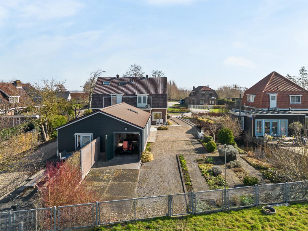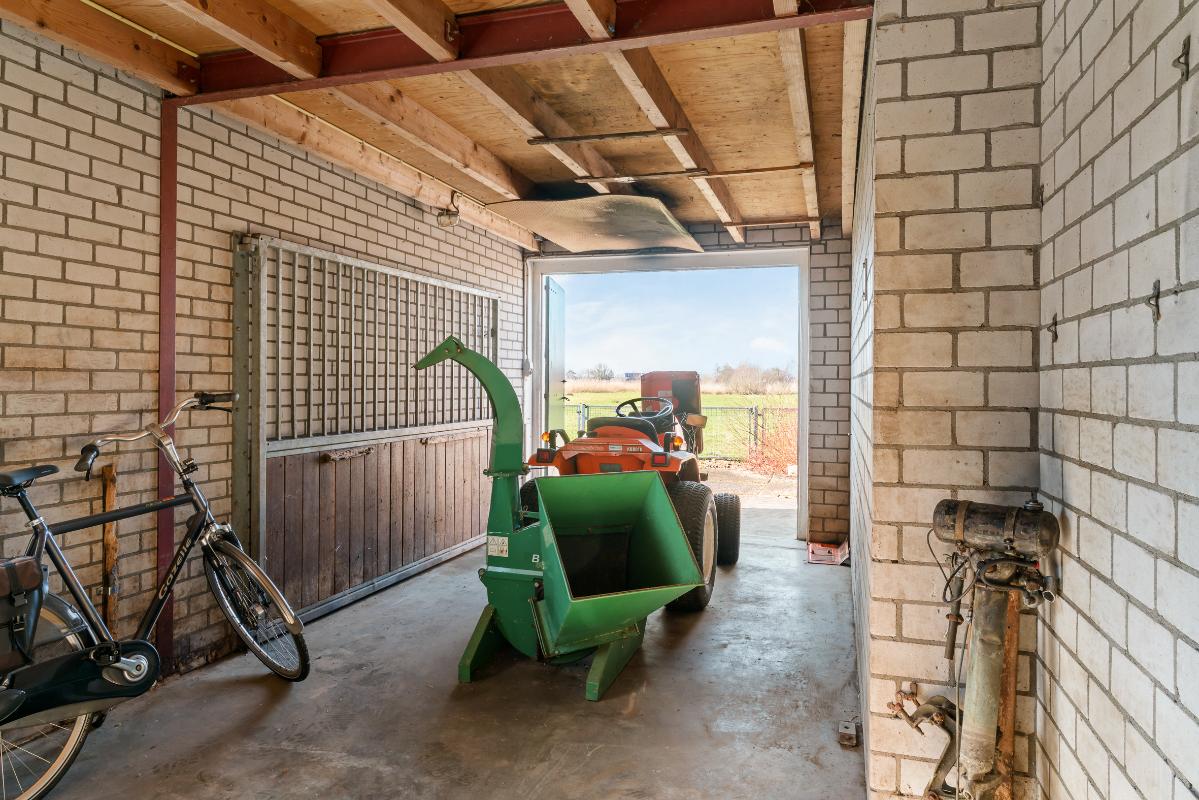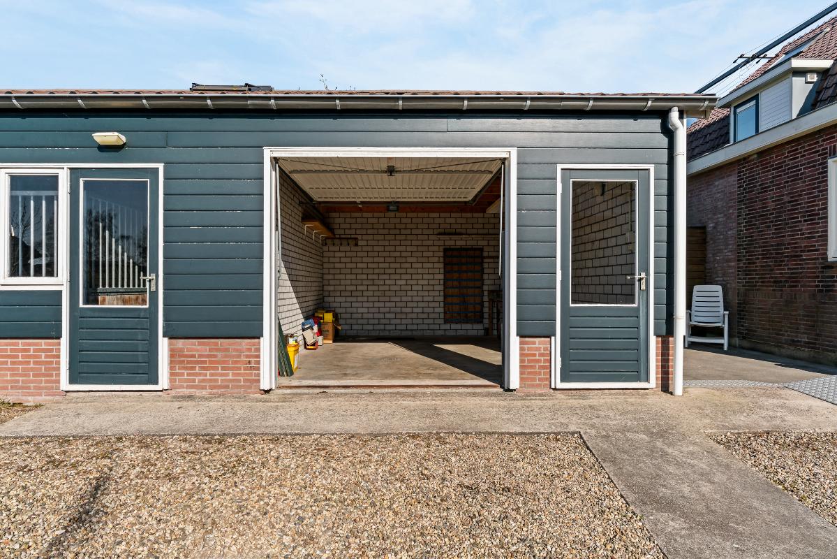 Achter de woning staat een grote schuur die is opgedeeld in twee garages. Deze zijn in 1996 gebouwd, onderheid en voorzien van betonnen vloeren en Werzalit gevelbekleding. Eén garage beschikt over wateraansluiting, elektra en een vliering. De andere garage beschikt alleen over elektra. Uitermate geschikt voor hobby, opslag of werken aan huis. Daarnaast staat ten noorden van het perceel nog een eenvoudige houten schuur van circa 21 m².