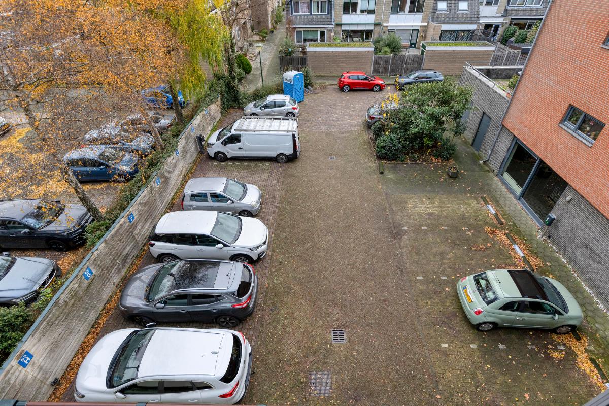 Indeling: Begane grond: Afgesloten entree aan achterzijde van het complex waar ook het parkeerterrein is met een eigen parkeerplaats. De centrale hal is middels de videofoon te betreden en leidt naar naar de lift, het trappenhuis en de eigen berging.